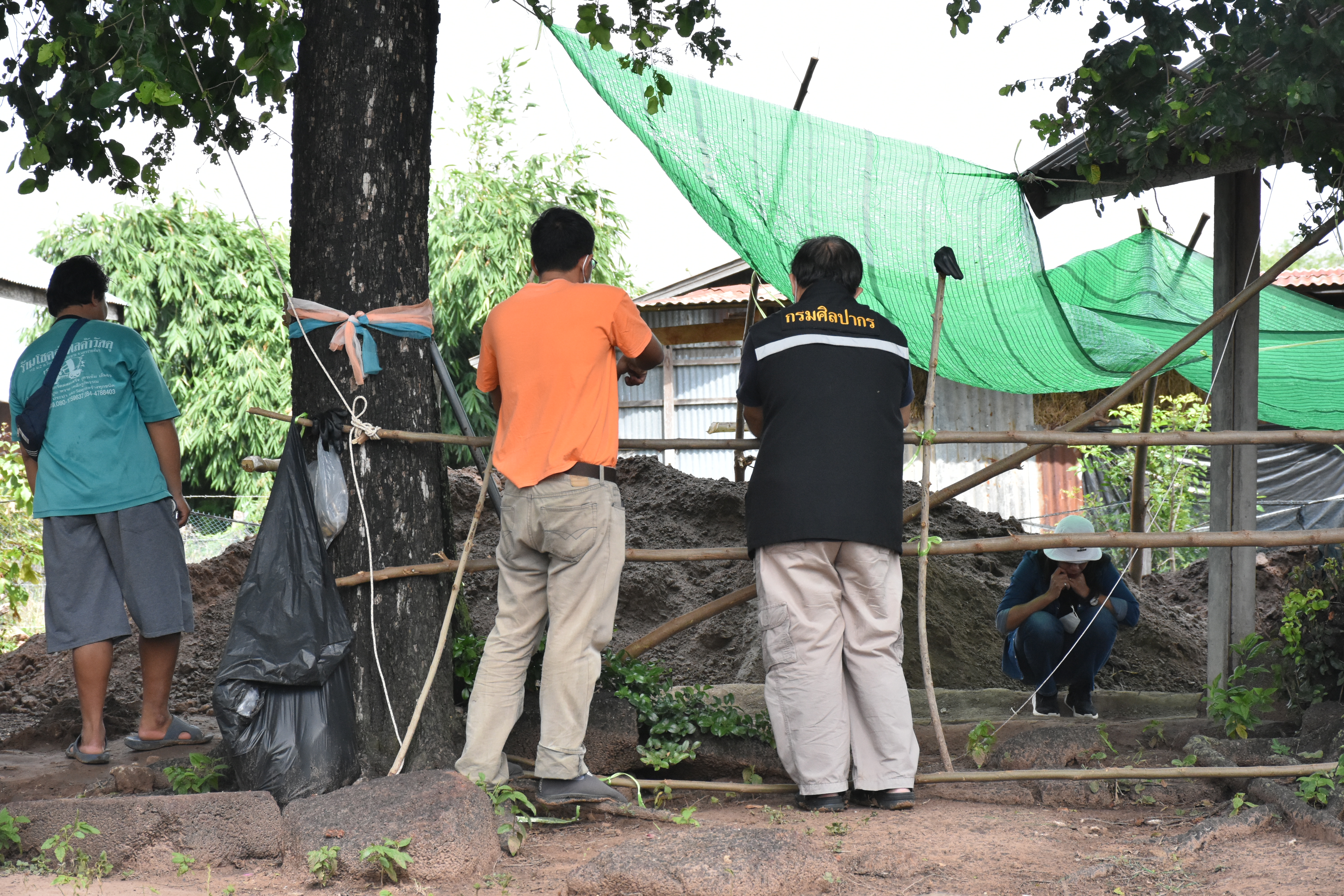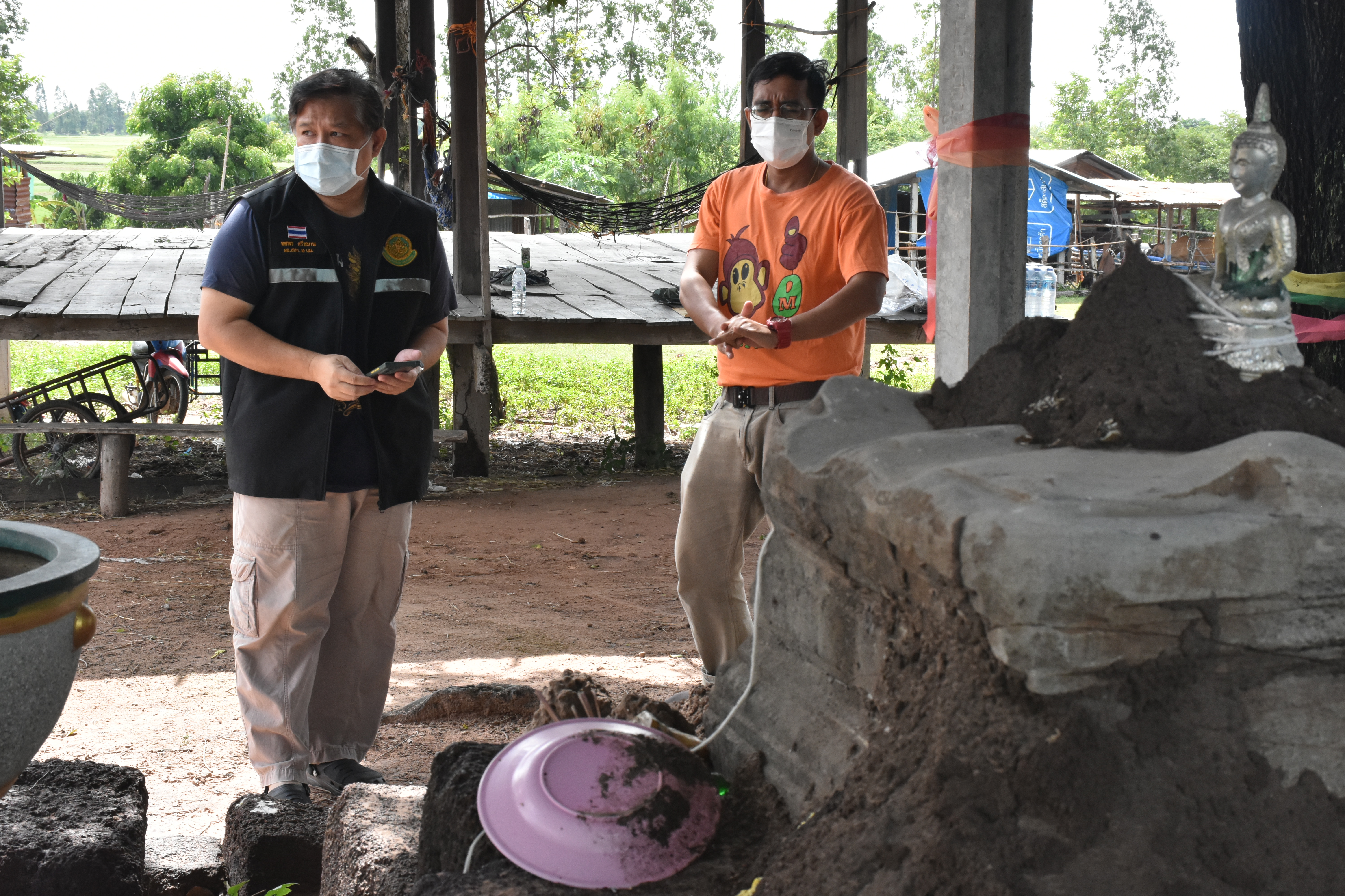 นายทศพร ศรีสมาน ผู้อำนวยการสำนักศิลปากรที่ ๑๐ นครราชสีมา ลงพื้นที่ตรวจเยี่ยมการดำเนินงานขุดค้นทางโบราณคดีบ้านเมืองดู่ ตำบลโนนเพ็ด อำเภอประทาย จังหวัดนครราชสีมา