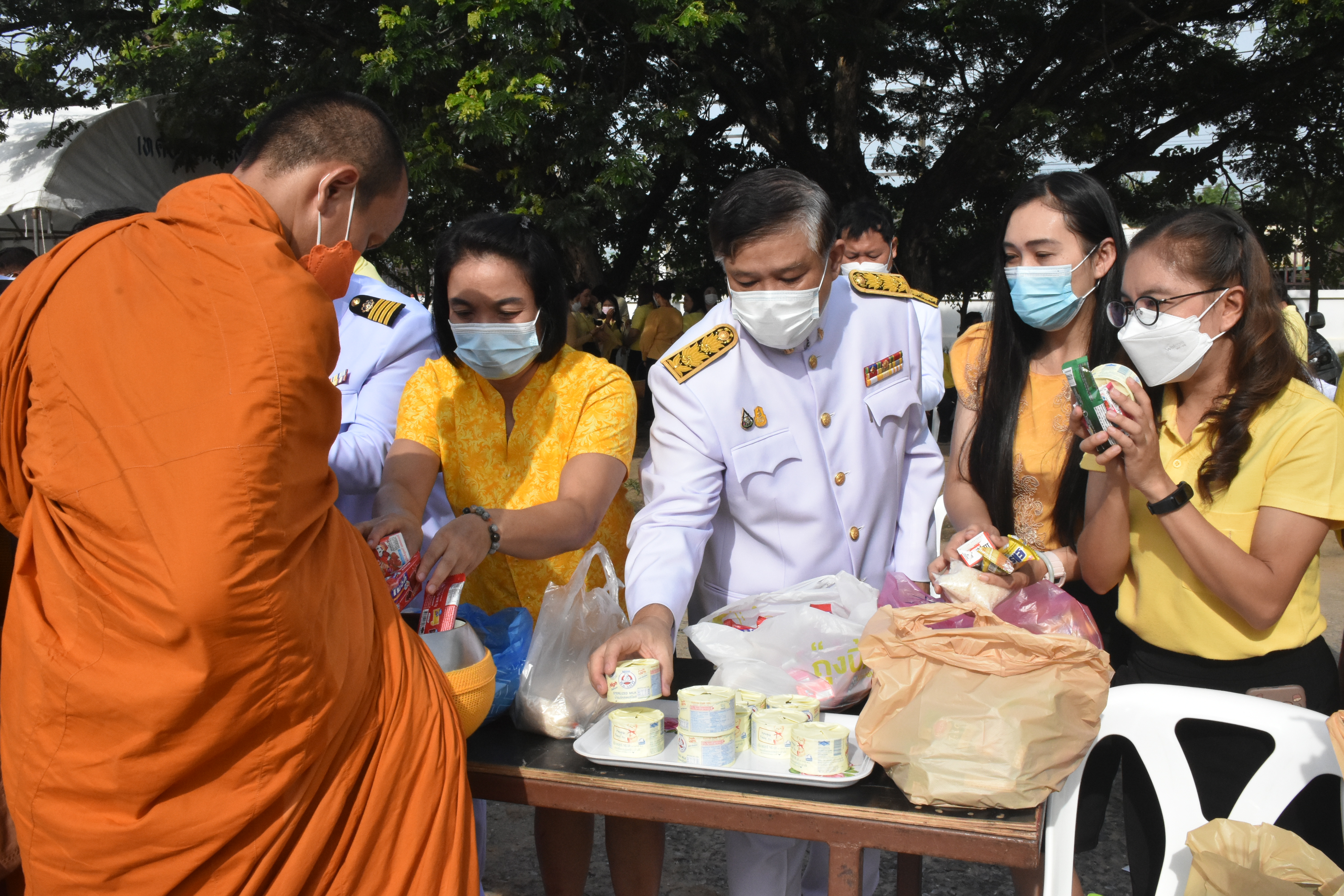 พิธีทำบุญตักบาตร เนื่องในโอกาสวันเฉลิมพระชนมพรรษา พระบาทสมเด็จพระเจ้าอยู่หัว ๒๘ กรกฎาคม ๒๕๖๕