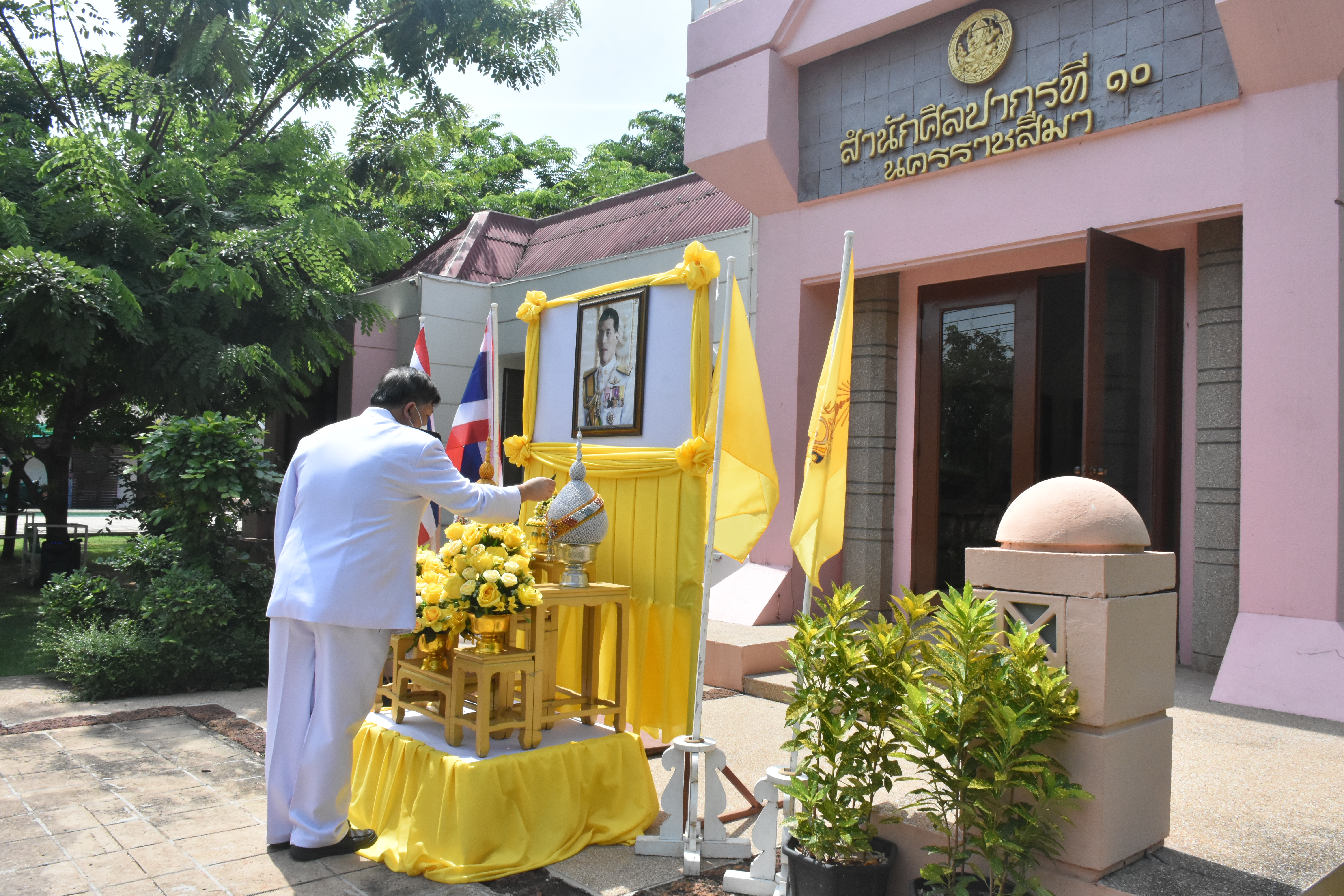 วันพฤหัสบดีที่ ๒๘ กรกฎาคม ๒๕๖๕ นายทศพร ศรีสมาน ผู้อำนวยการสำนักศิลปากรที่ ๑๐ นครราชสีมา พร้อมด้วยหัวหน้าหน่วยงาน และเจ้าหน้าที่ในสังกัด ร่วมพิธีถวายสัตย์ปฏิญาณเพื่อเป็นข้าราชการที่ดีและพลังของแผ่นดินประจำปี ๒๕๖๕ เนื่องในโอกาสวันเฉลิมพระชนมพรรษา พระบาทสมเด็จพระเจ้าอยู่หัว ๒๘ กรกฎาคม ๒๕๖๕ ณ สำนักศิลปากรที่ ๑๐ นครราชสีมา