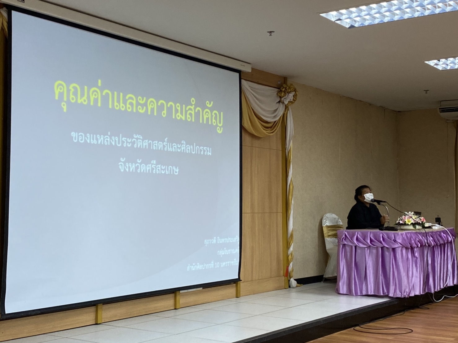 สถาบันวิจัยและพัฒนา มหาวิทยาลัยราชภัฏศรีสะเกษ จัดการประชุมเชิงปฎิบัติการร่วมกับเครือข่ายแหล่งประวัติศาสตร์และศิลปกรรมในพื้นที่จังหวัดศรีสะเกษ ในการนี้สำนักศิลปากรที่ ๑๐ นครราชสีมา โดยนายกิตติพงษ์ สนเล็ก ผู้อำนวยการกลุ่มโบราณคดี เป็นวิทยากรบรรยายในหัวข้อเรื่อง "แนวทางการอนุรักษ์และขอบเขตการพัฒนาแหล่งท่องเที่ยวในแหล่งประวัติศาสตร์และศิลปกรรมสำหรับหน่วยงานท้องถิ่น" และนางสาวสุภาวดี อินทรประเสริฐ เป็นวิทยากรบรรยายในหัวข้อเรื่อง "คุณค่าและความสำคัญของแหล่งประวัติศาสตร์และศิลปกรรมจังหวัดศรีสะเกษ" ณ โรงแรมศรีพฤธาลัยราชภัฏสัมมนาคาร มหาวิทยาลัยราชภัฏศรีสะเกษ