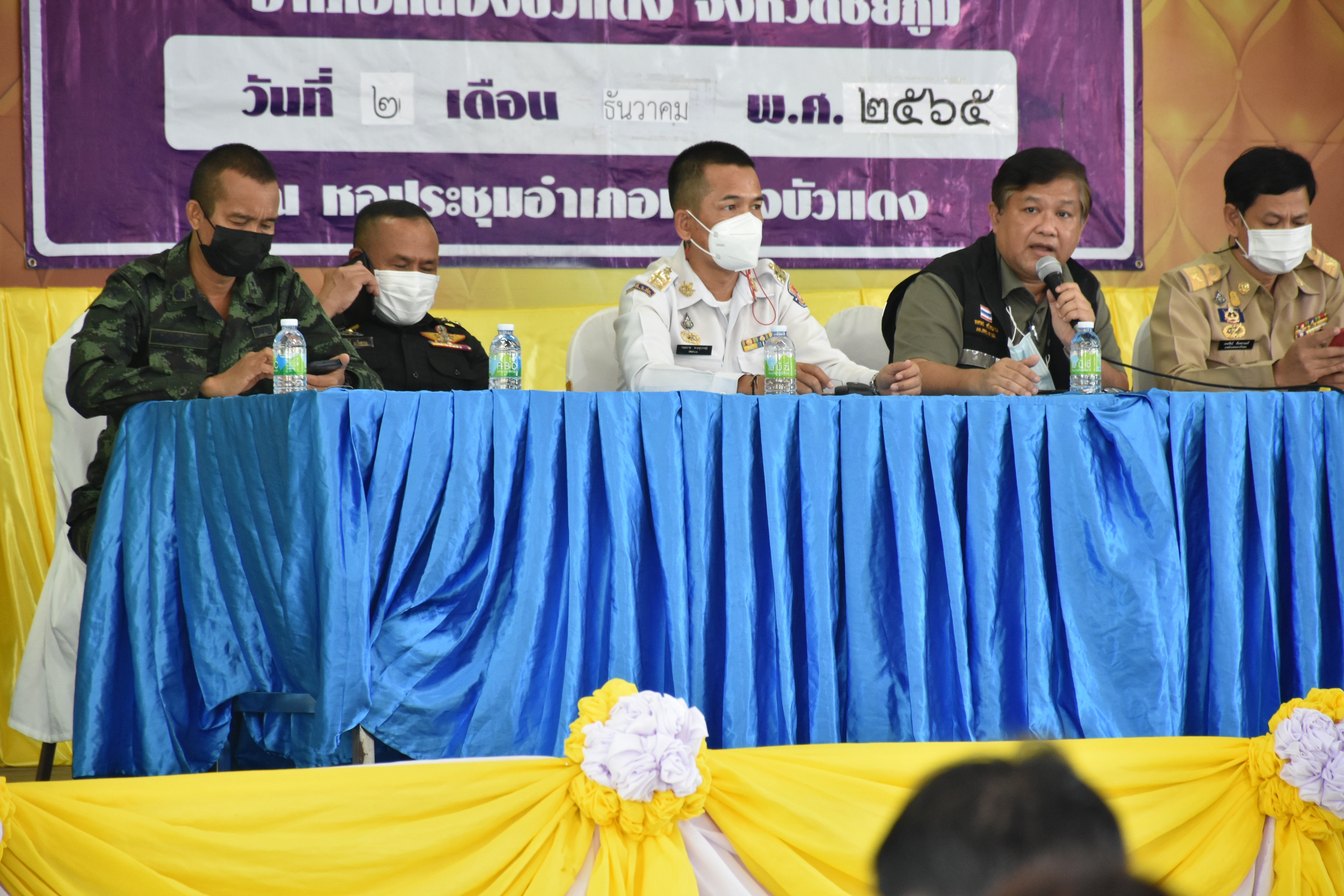 นายทศพร ศรีสมาน ผู้อำนวยการสำนักศิลปากรที่ ๑๐ นครราชสีมา พร้อมด้วยนายกิตติพงษ์ สนเล็ก ผู้อำนวยการกลุ่มโบราณคดี และนายวรรณพงษ์ ปาละกะวงษ์ ณ อยุธยา นักโบราณคดีปฏิบัติการ (ผู้รับผิดชอบโครงการ) ลงพื้นที่ชี้แจงการดำเนินงานทางโบราณคดีในโครงการศึกษาวิจัยชุมชนโบราณและมนุษย์ยุคก่อนประวัติศาสตร์ สมัยเหล็ก บริเวณต้นลำชี ในเขตพื้นที่ตำบลวังชมภู อำเภอหนองบัวแดง จังหวัดชัยภูมิ ในวันศุกร์ที่ ๒ ธันวาคม ๒๕๖๕ ณ ที่ว่าการอำเภอหนองบัวแดง จังหวัดชัยภูมิ จากนั้นเข้าพบนายกองค์การบริหารส่วนตำบลวังชมภู และลงพื้นที่บริเวณการดำเนินโครงการฯ