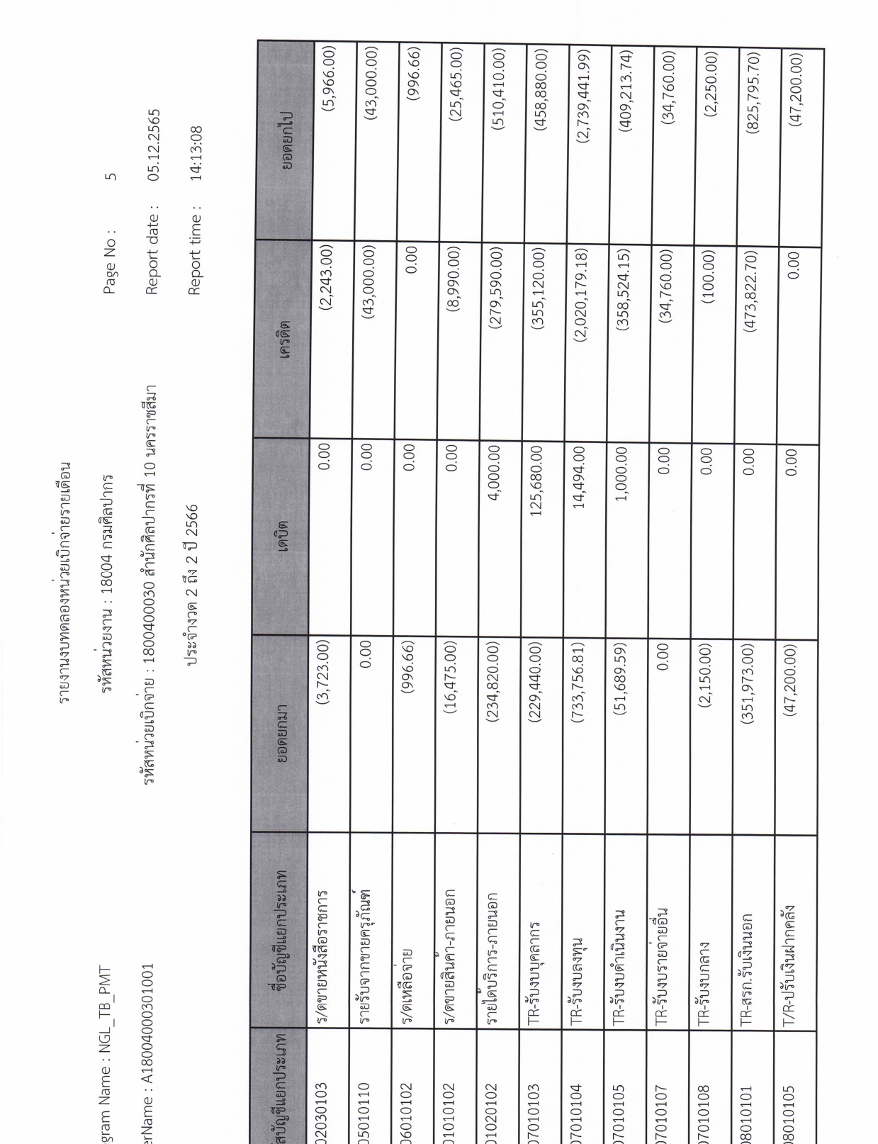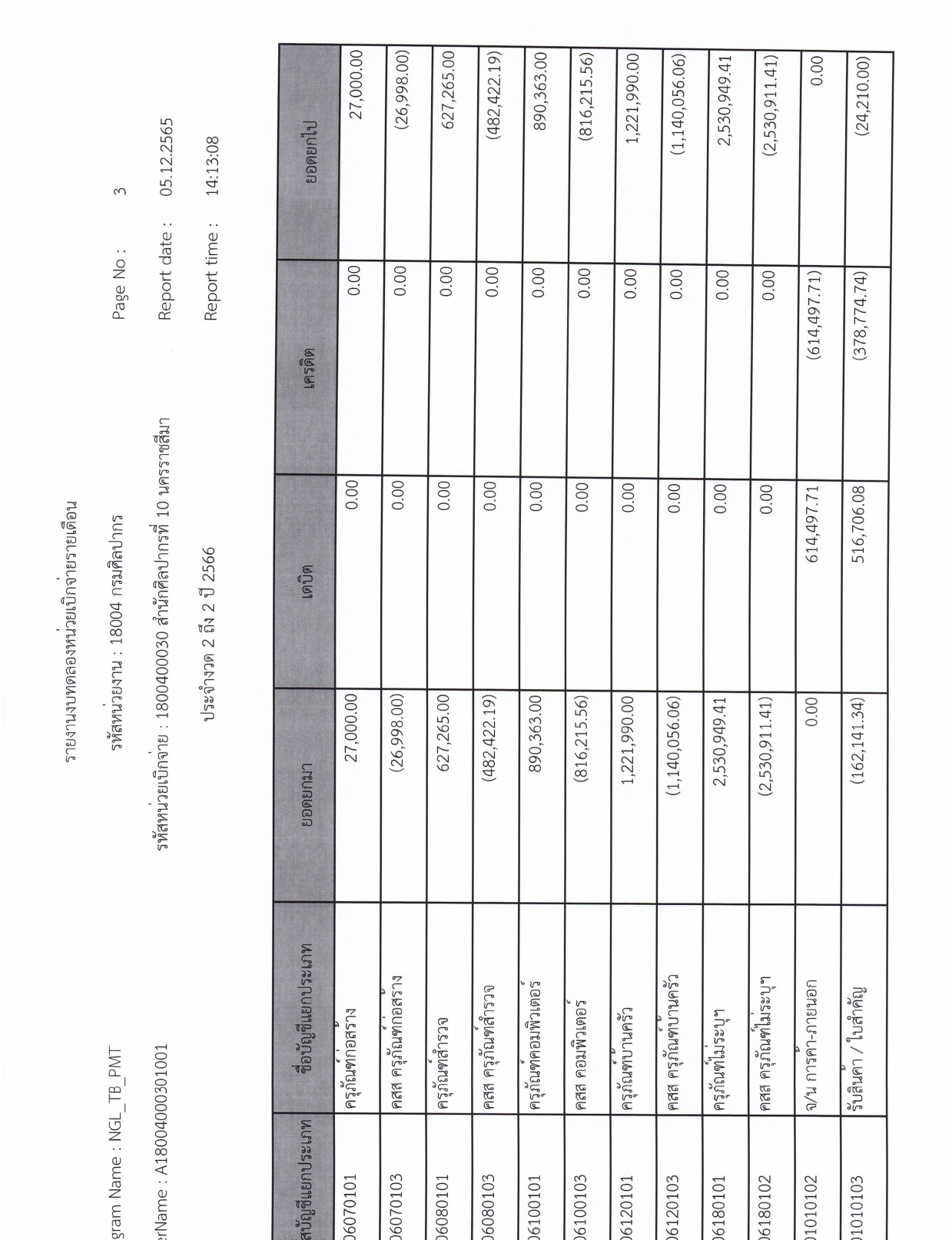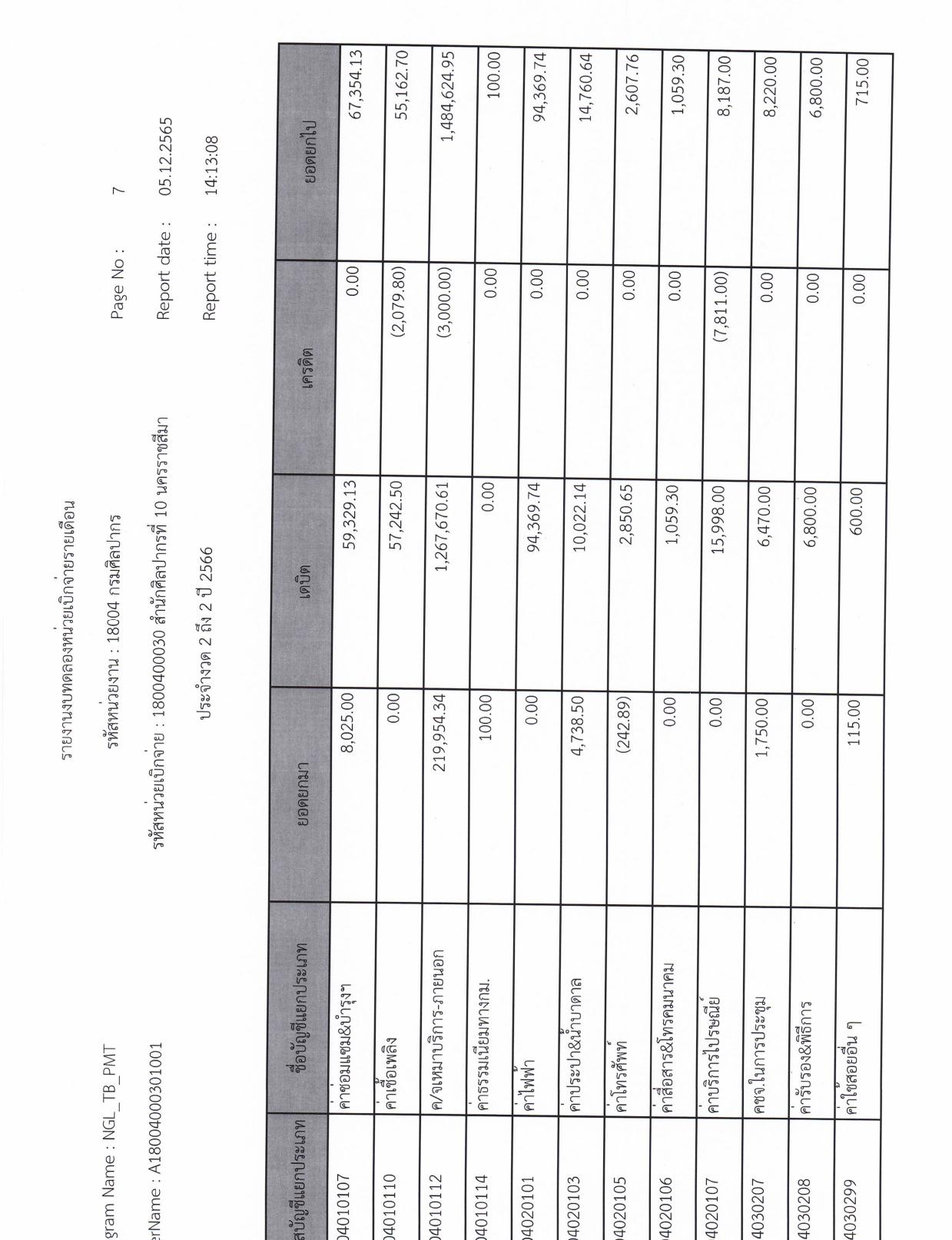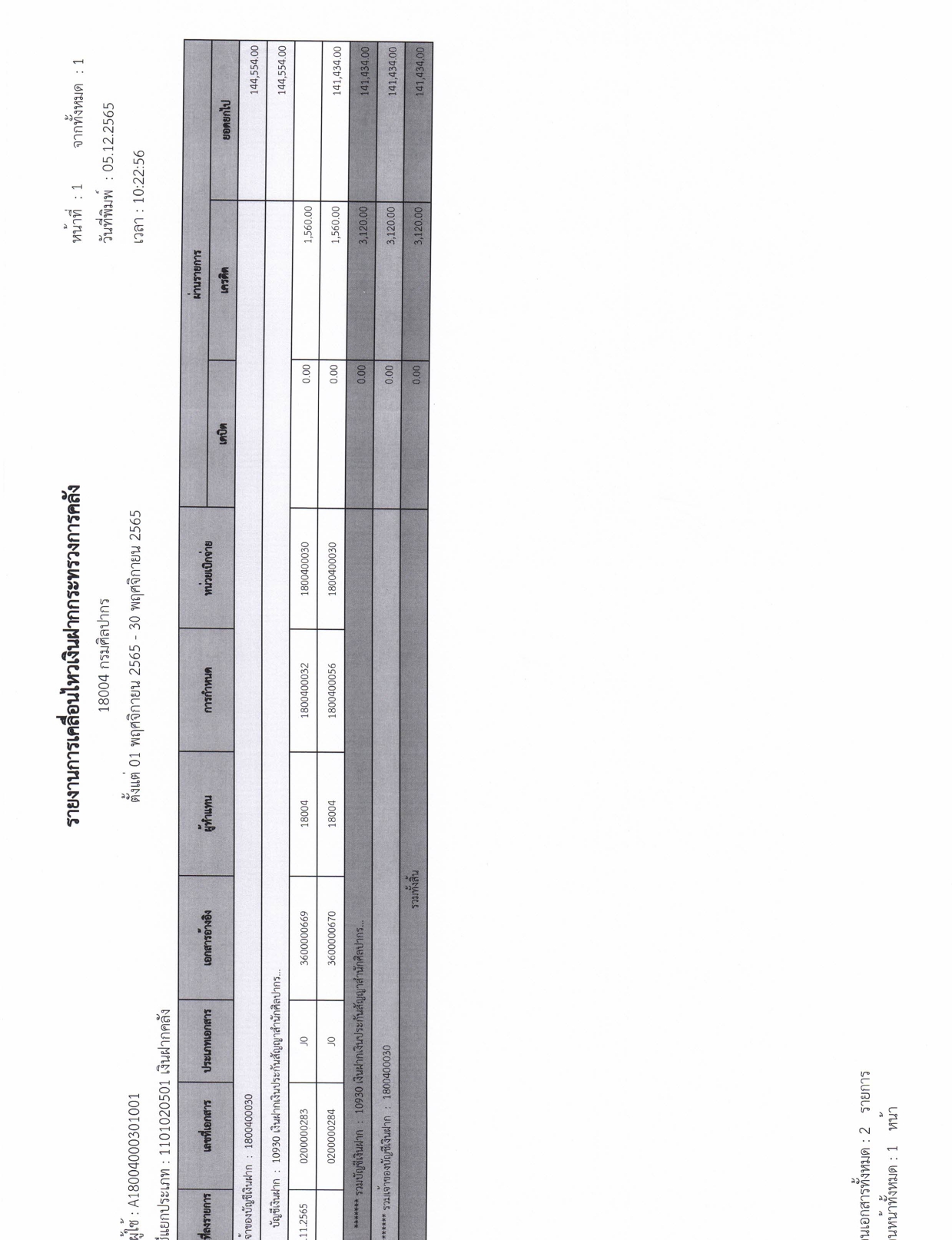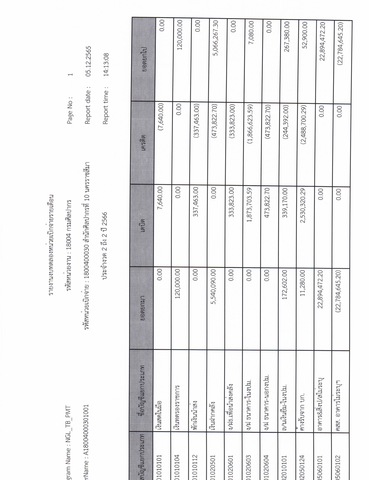 รายละเอียดงบทดลองประจำเดือน พฤศจิกายน ๒๕๖๕