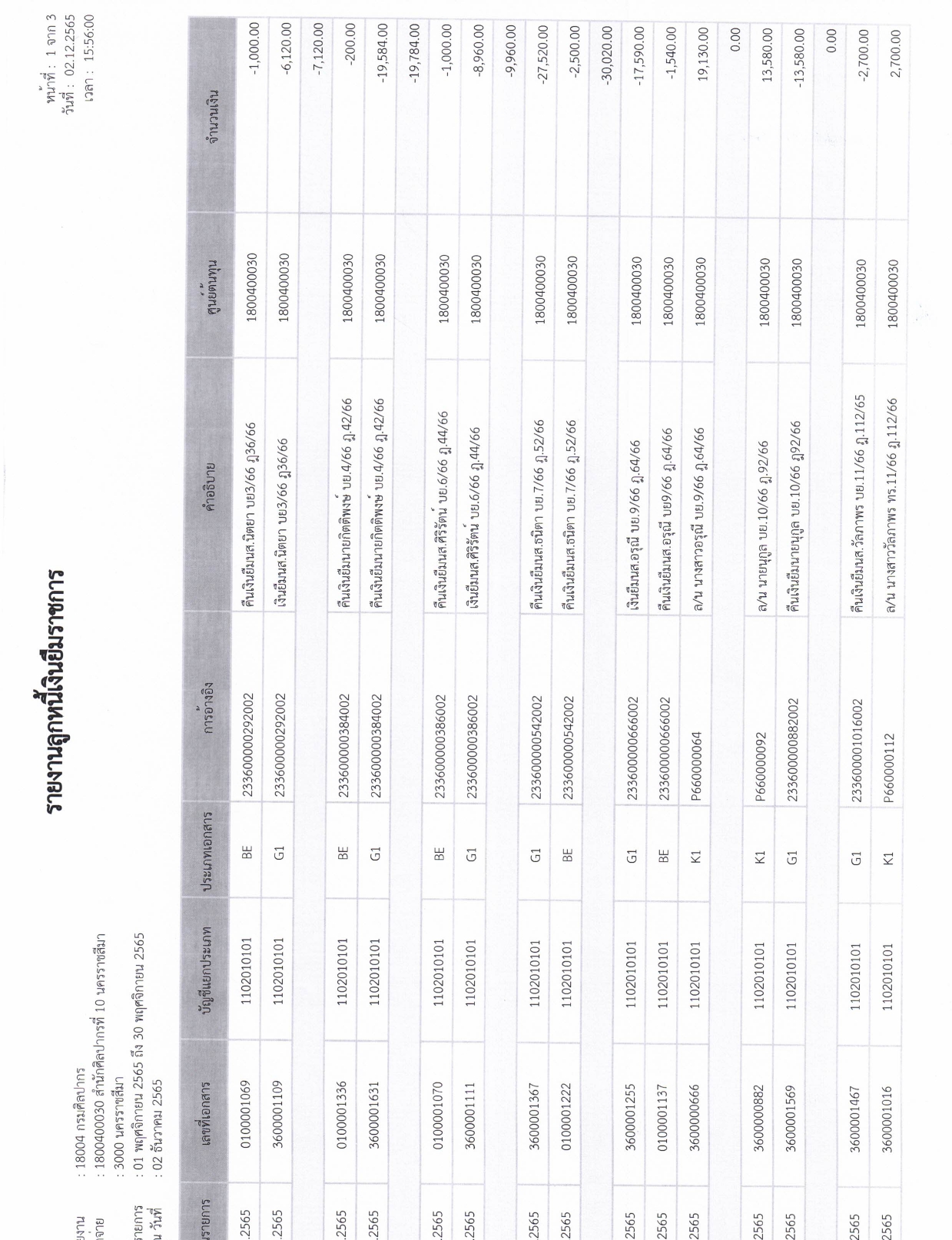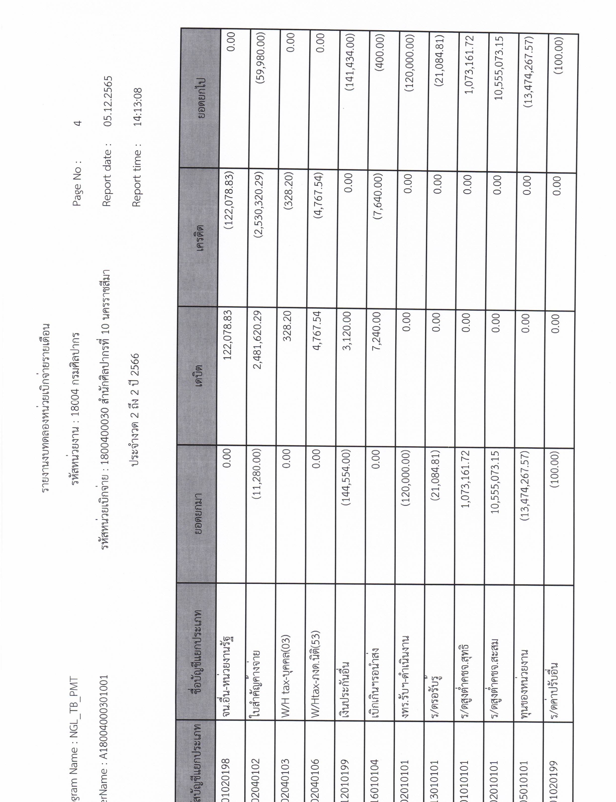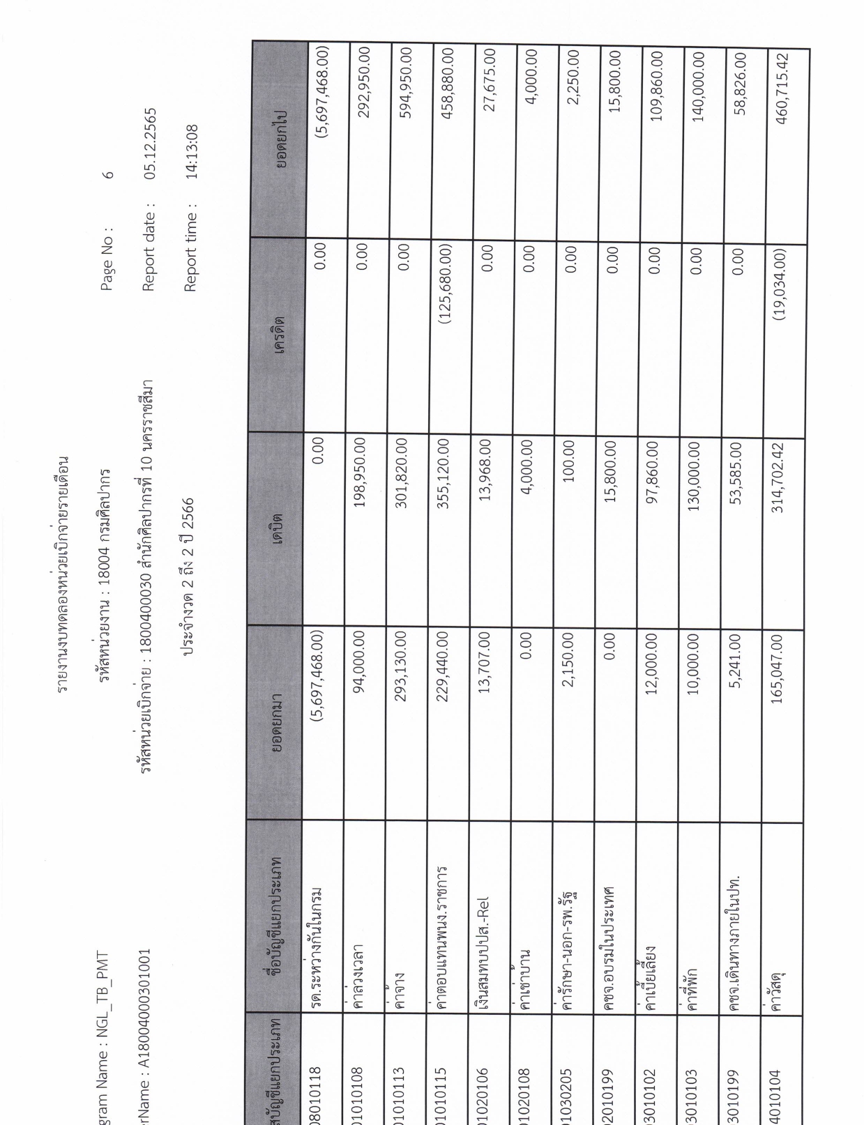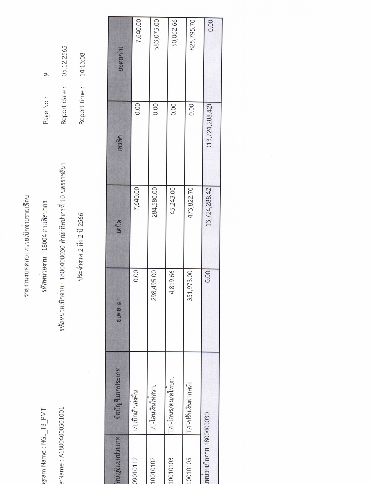รายละเอียดงบทดลองประจำเดือน พฤศจิกายน ๒๕๖๕