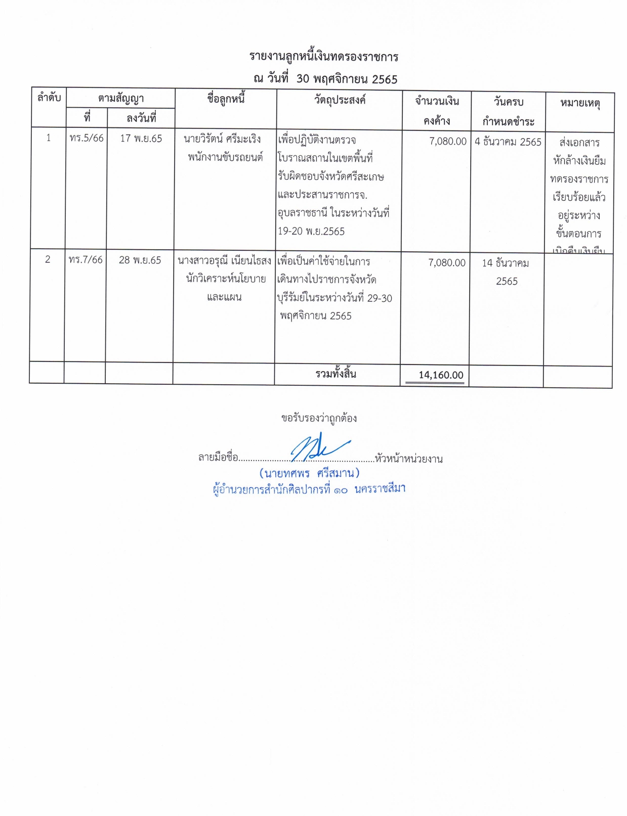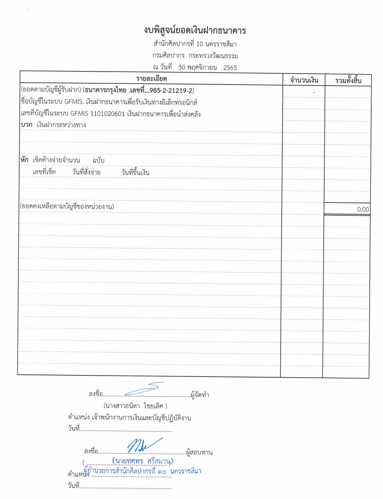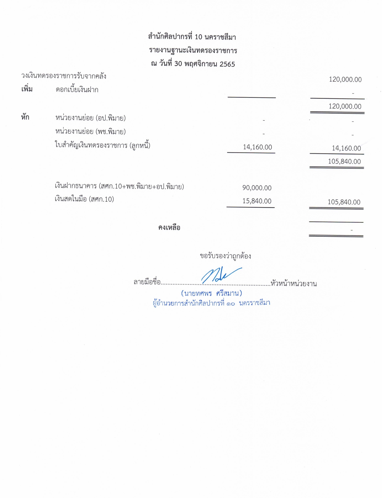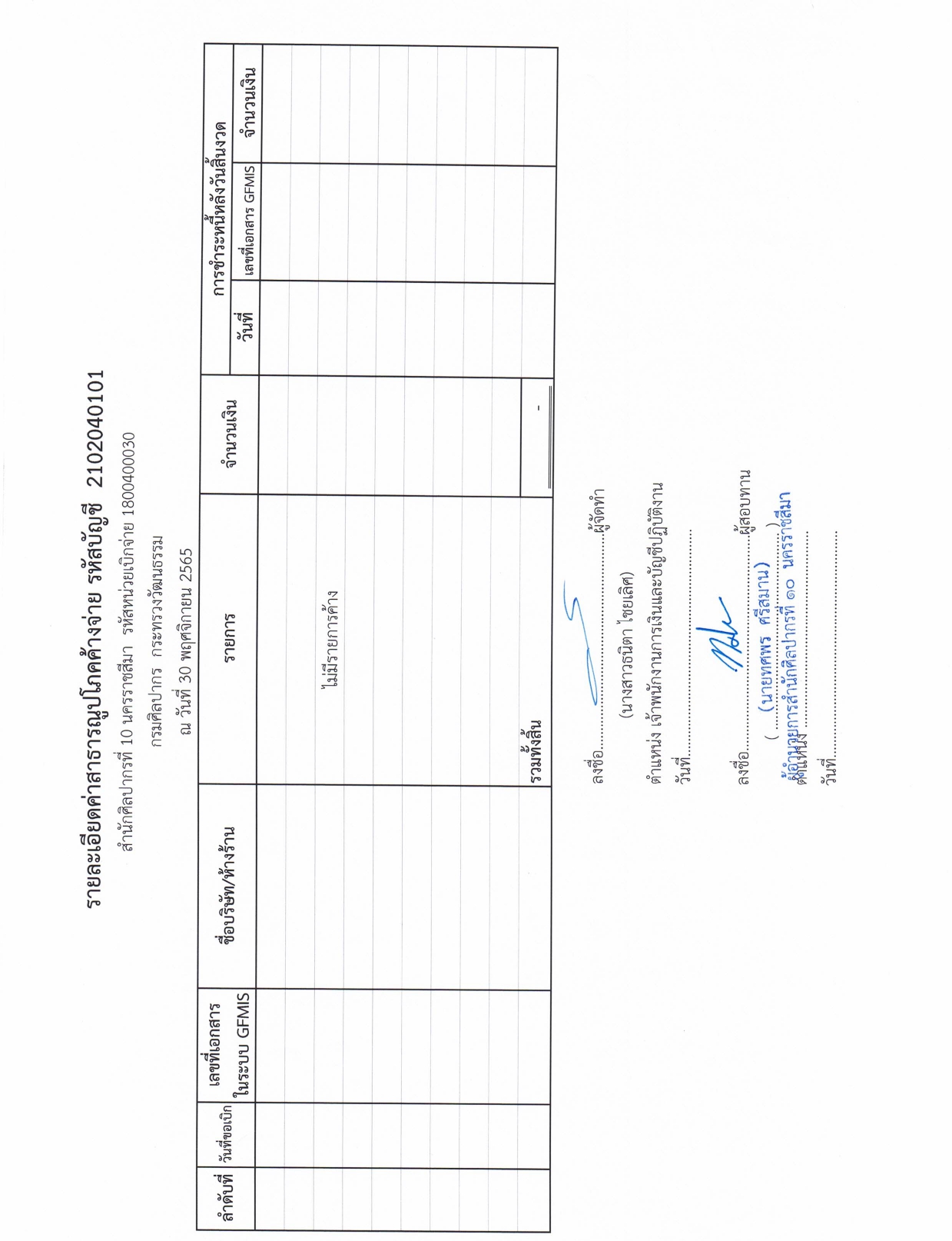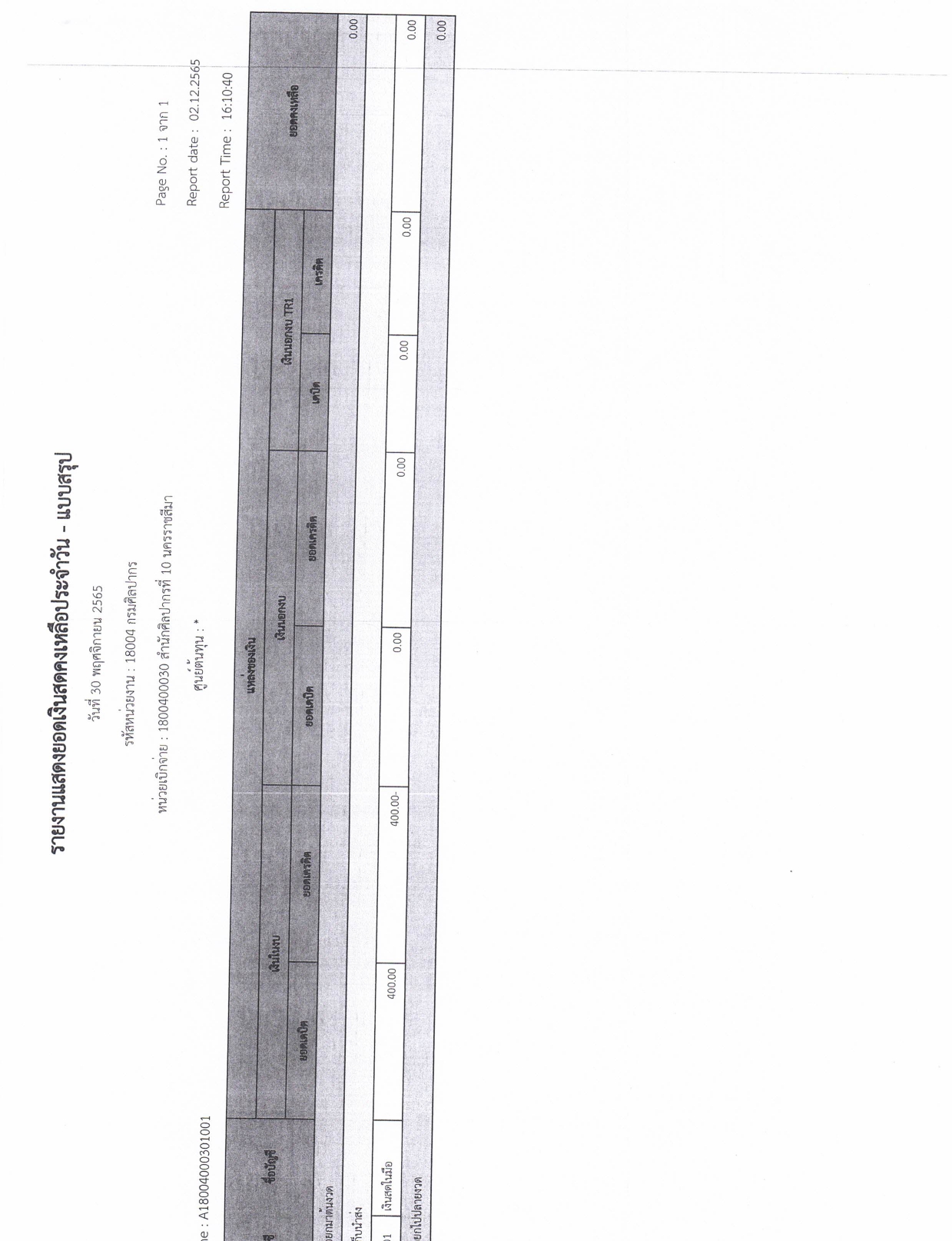 รายละเอียดงบทดลองประจำเดือน พฤศจิกายน ๒๕๖๕