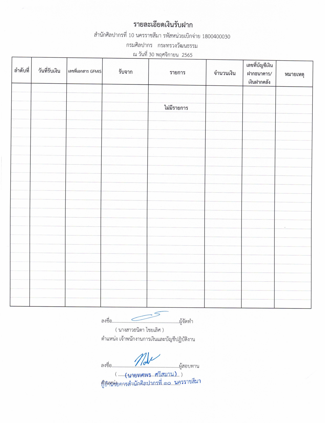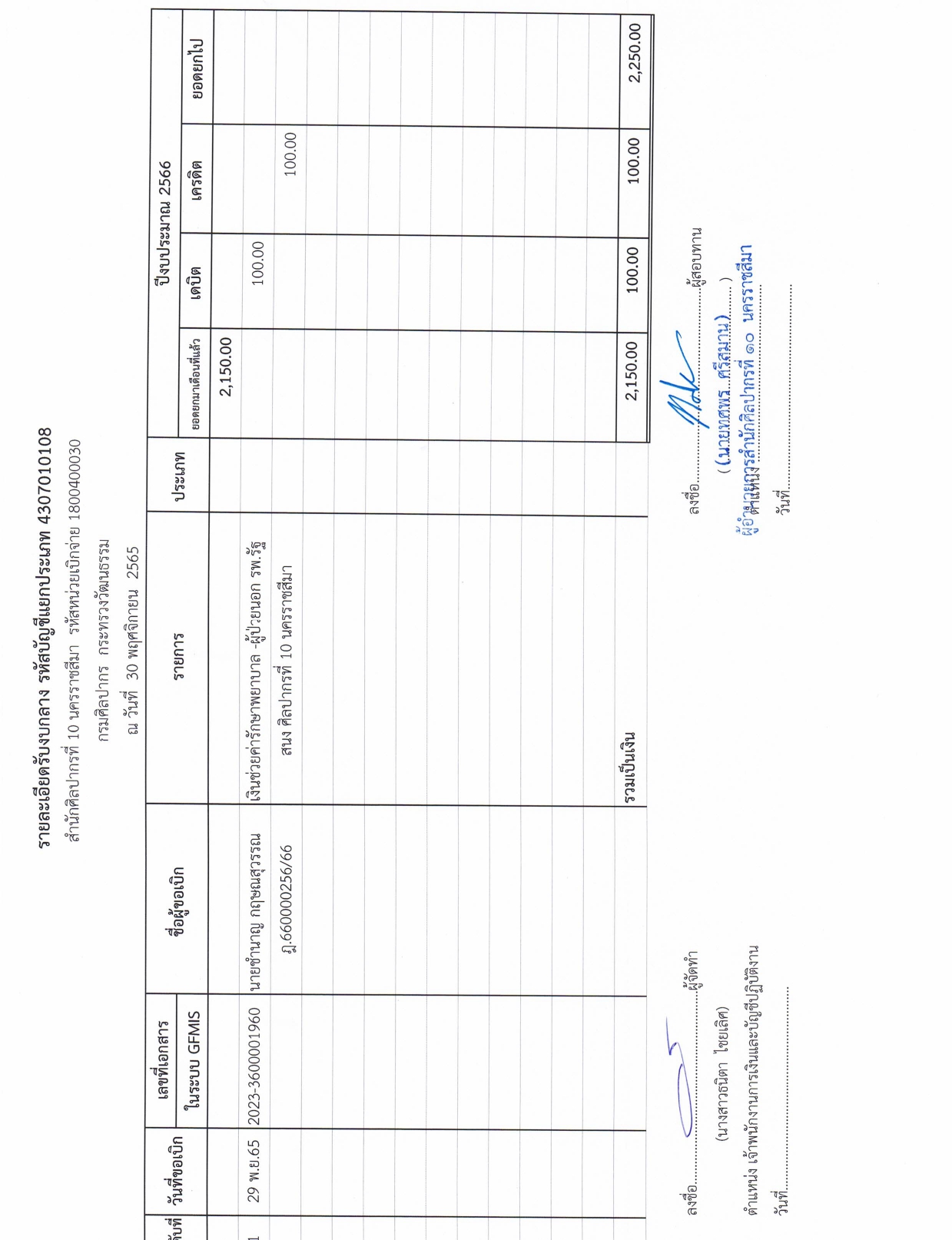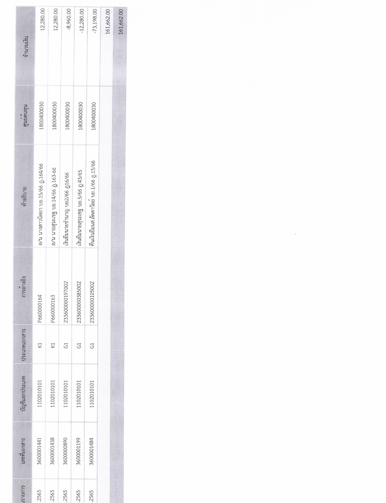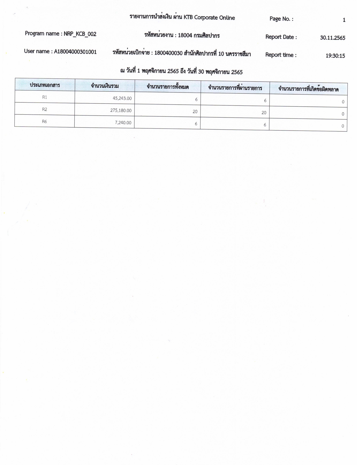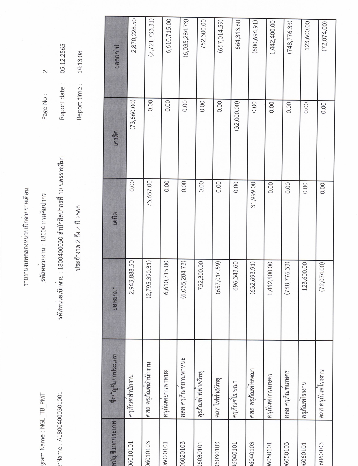 รายละเอียดงบทดลองประจำเดือน พฤศจิกายน ๒๕๖๕