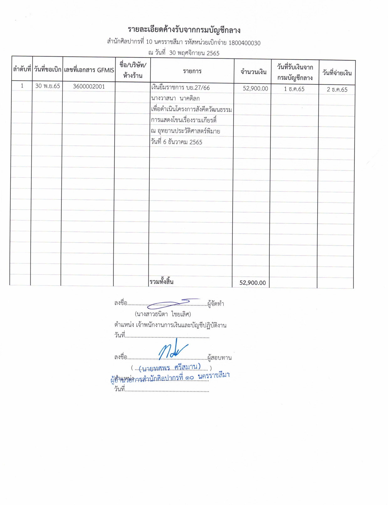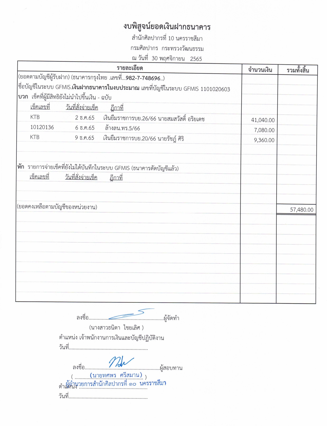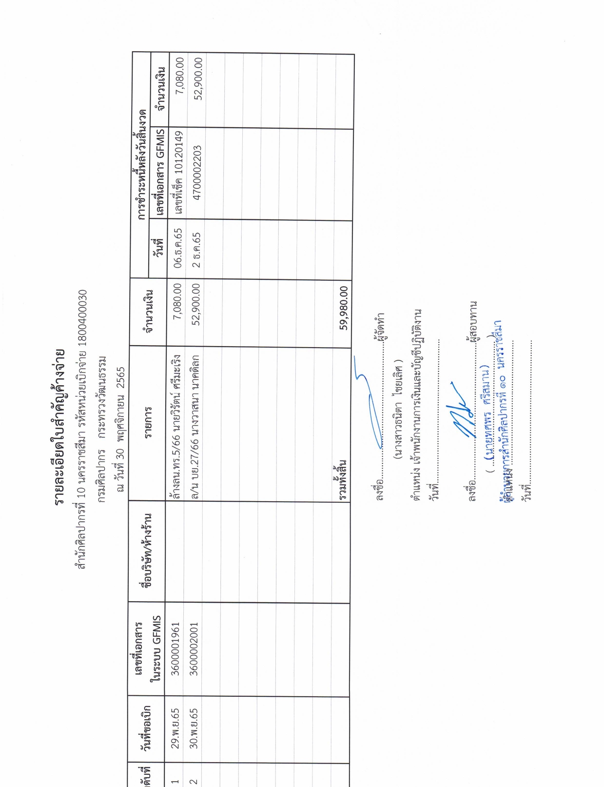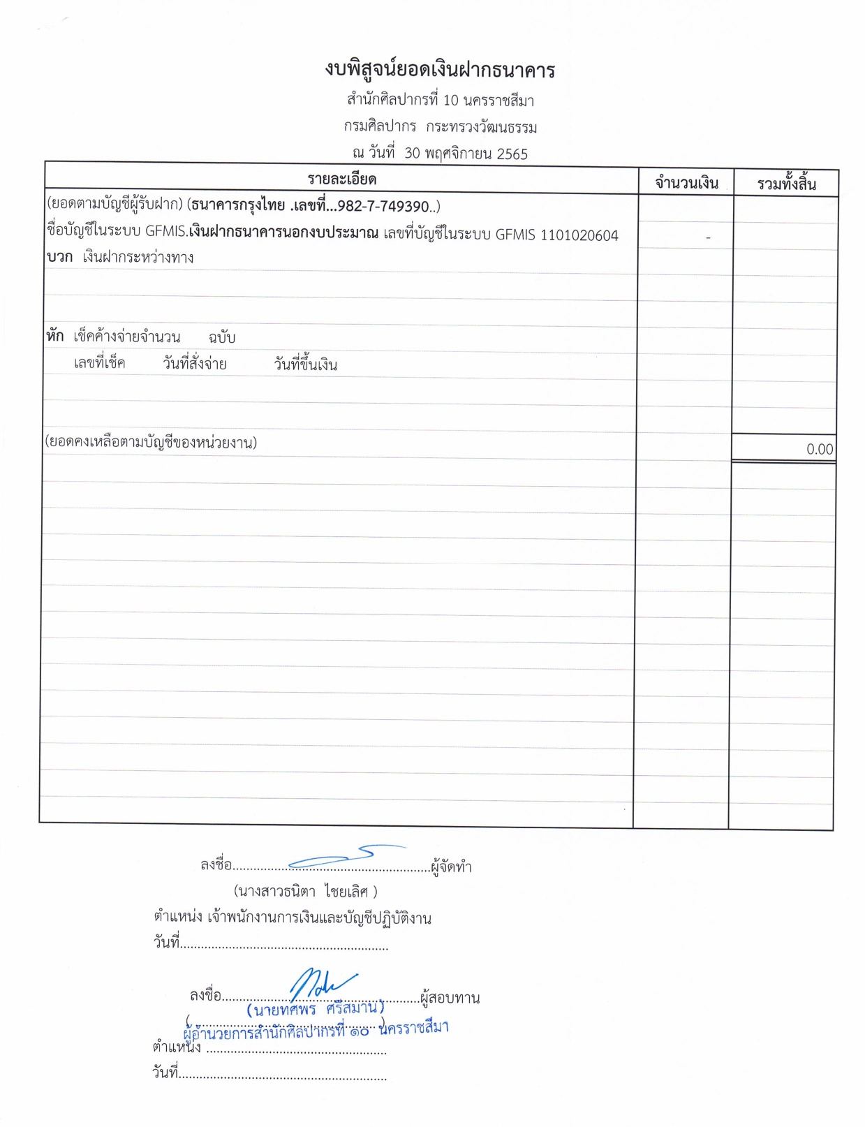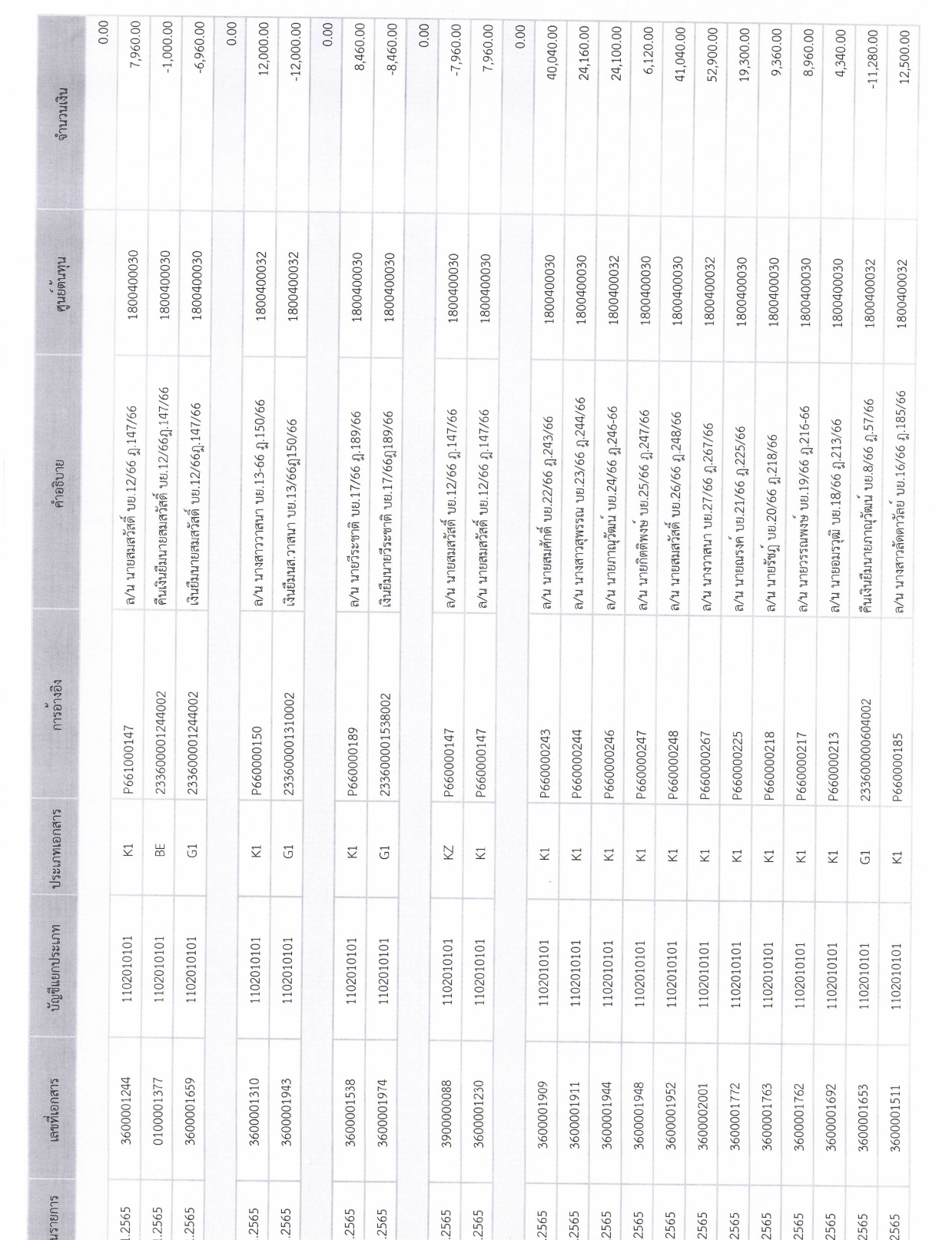 รายละเอียดงบทดลองประจำเดือน พฤศจิกายน ๒๕๖๕