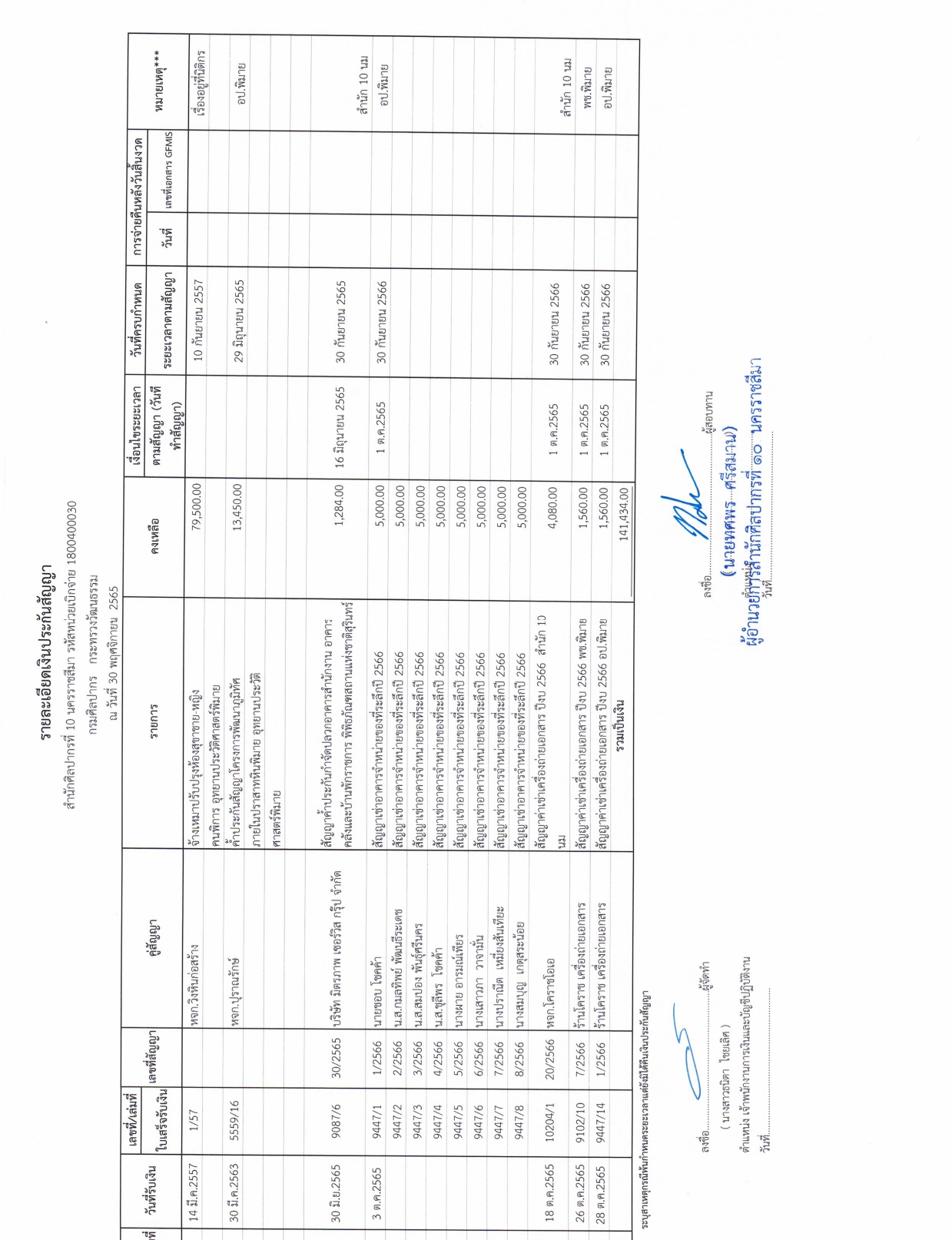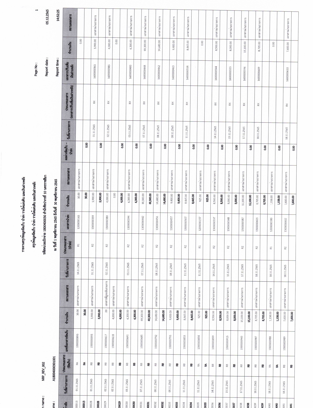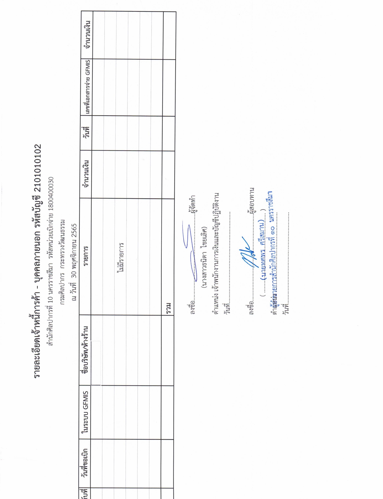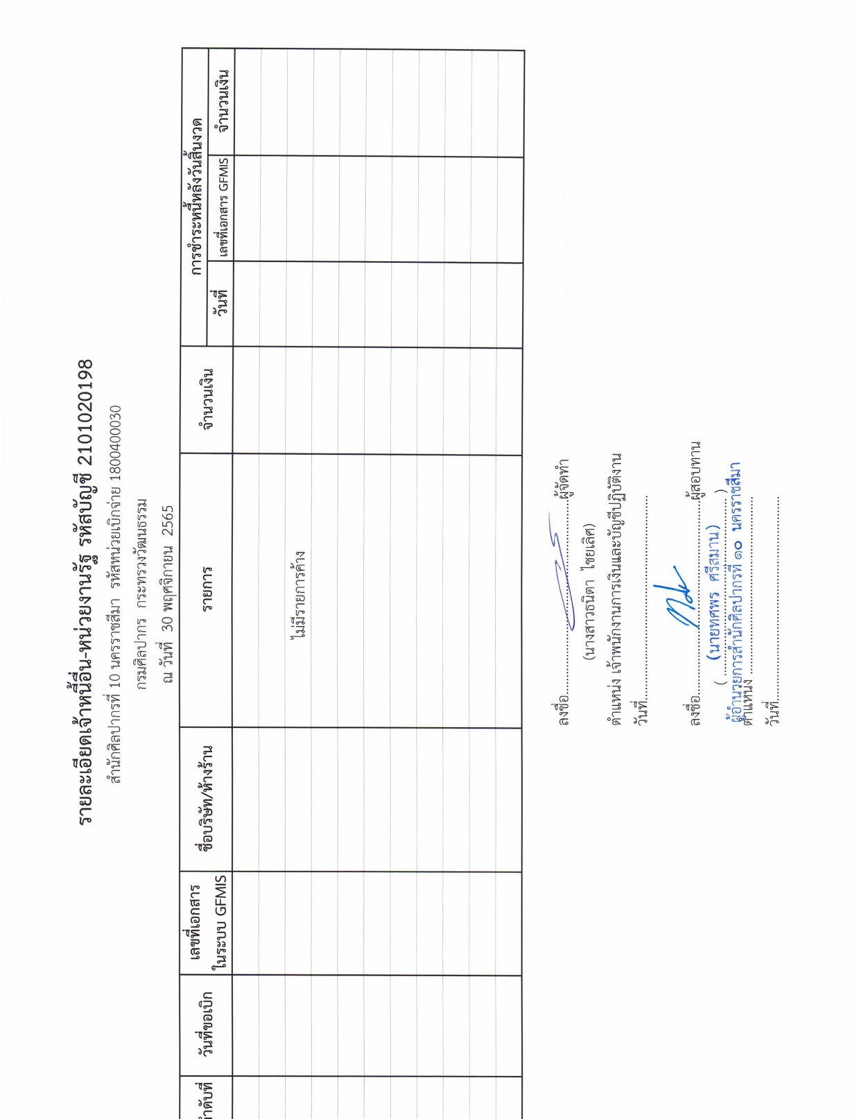 รายละเอียดงบทดลองประจำเดือน พฤศจิกายน ๒๕๖๕