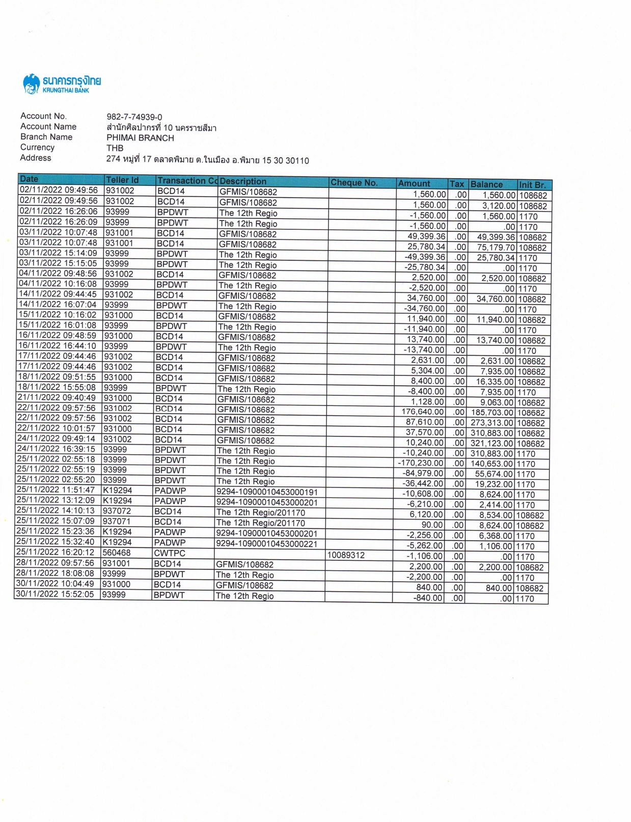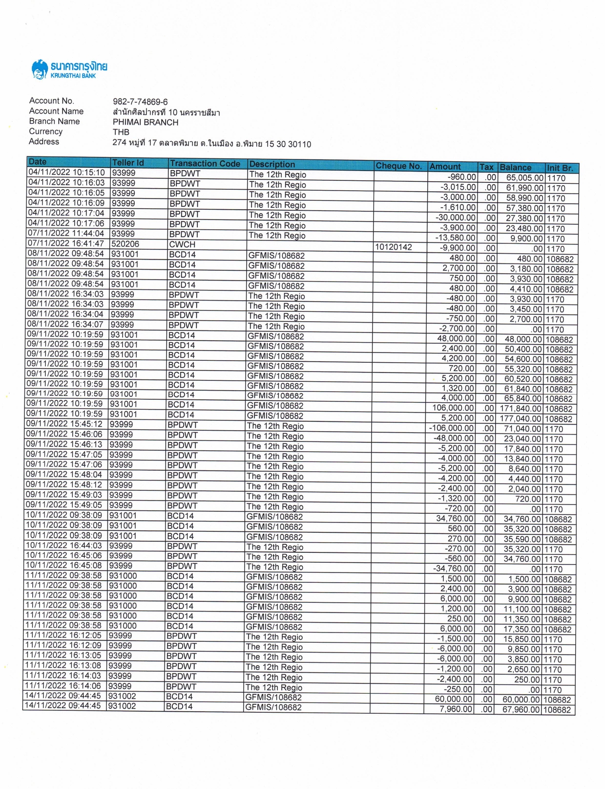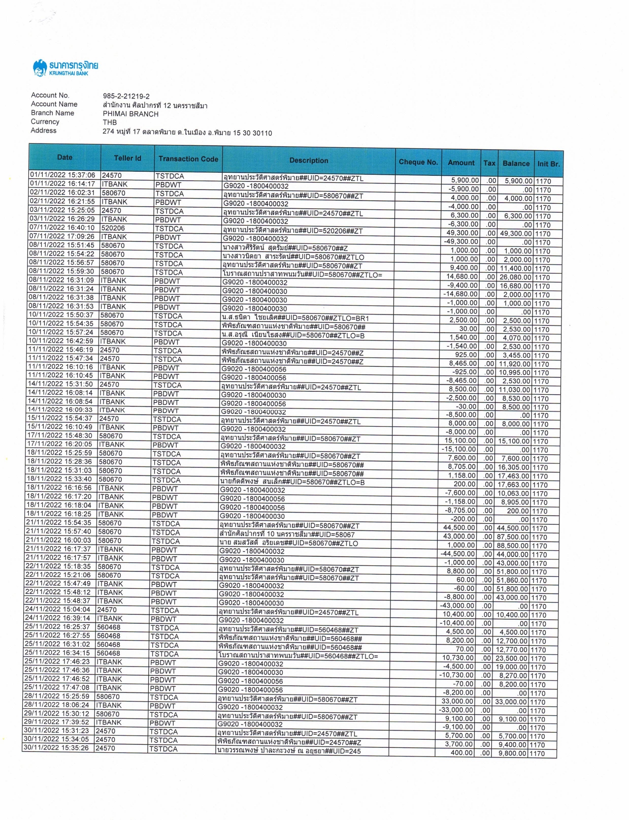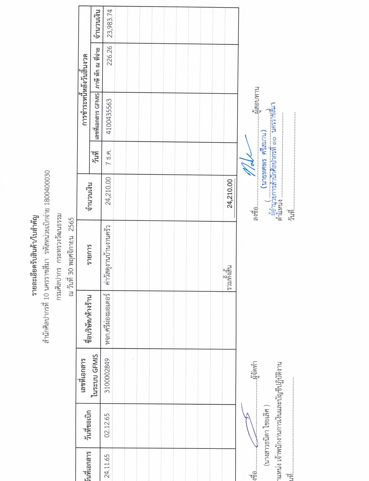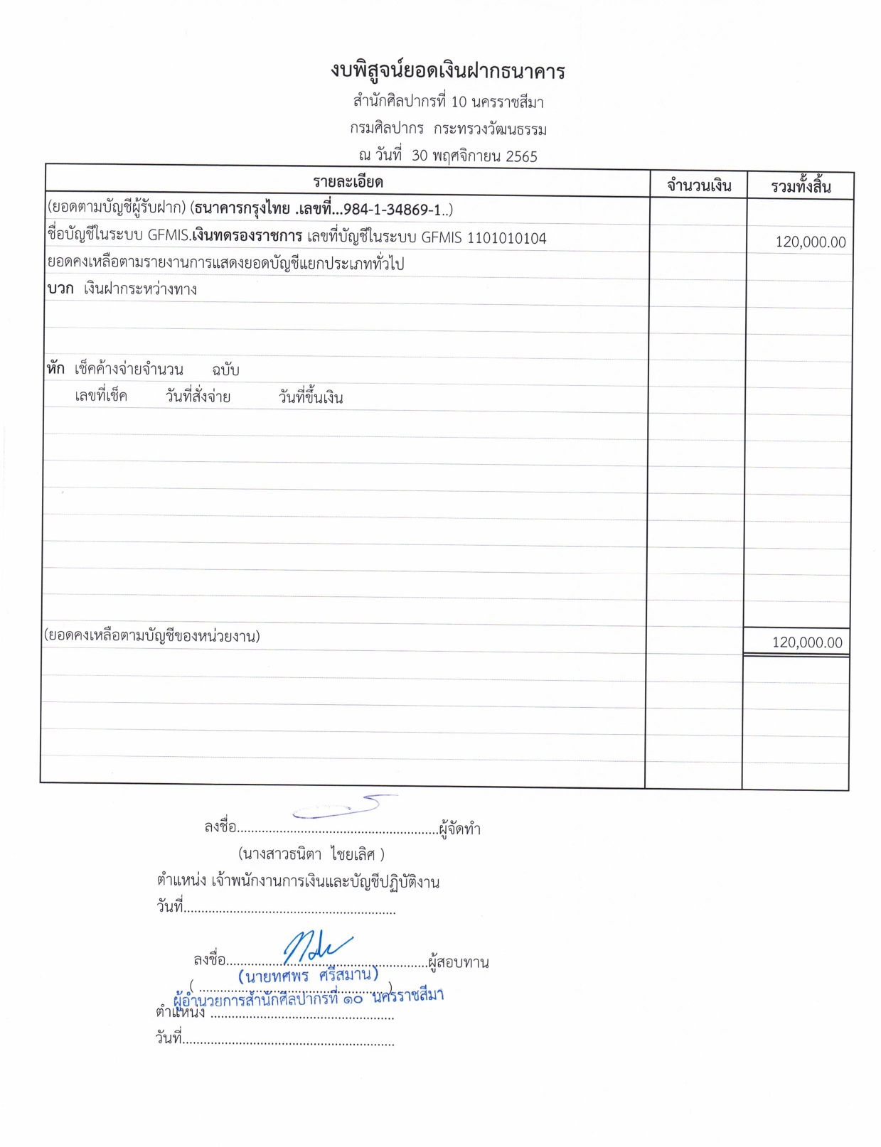 รายละเอียดงบทดลองประจำเดือน พฤศจิกายน ๒๕๖๕