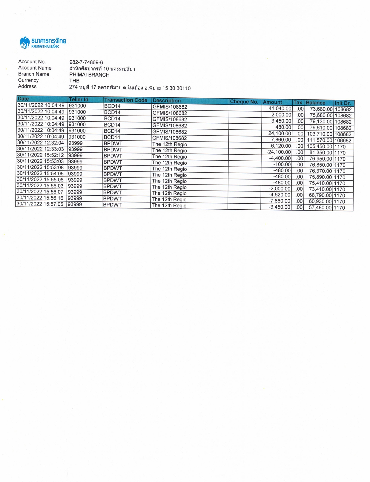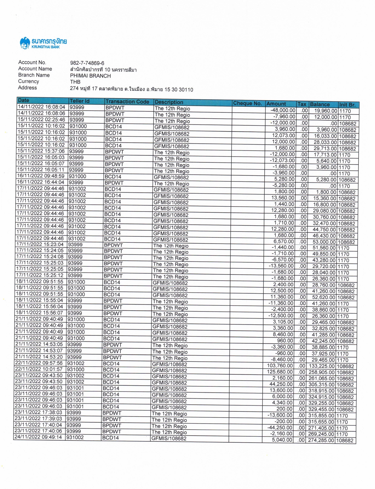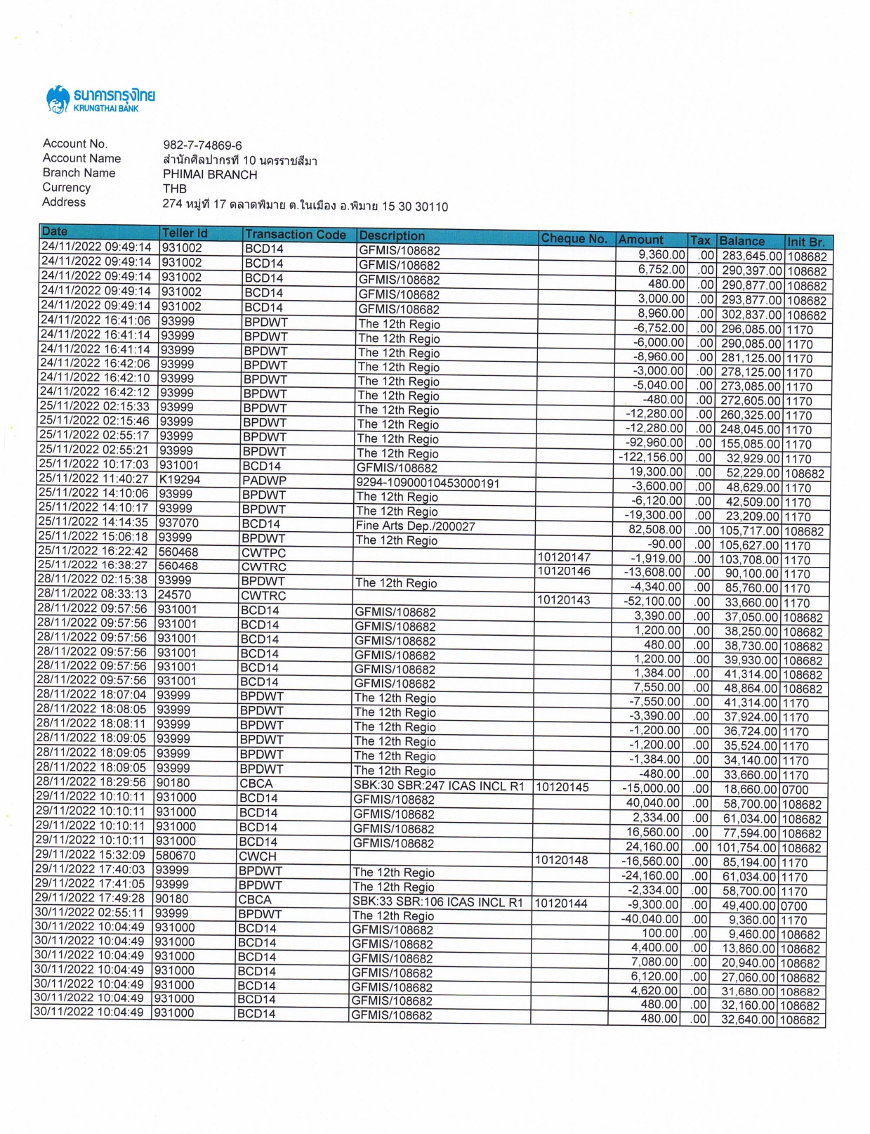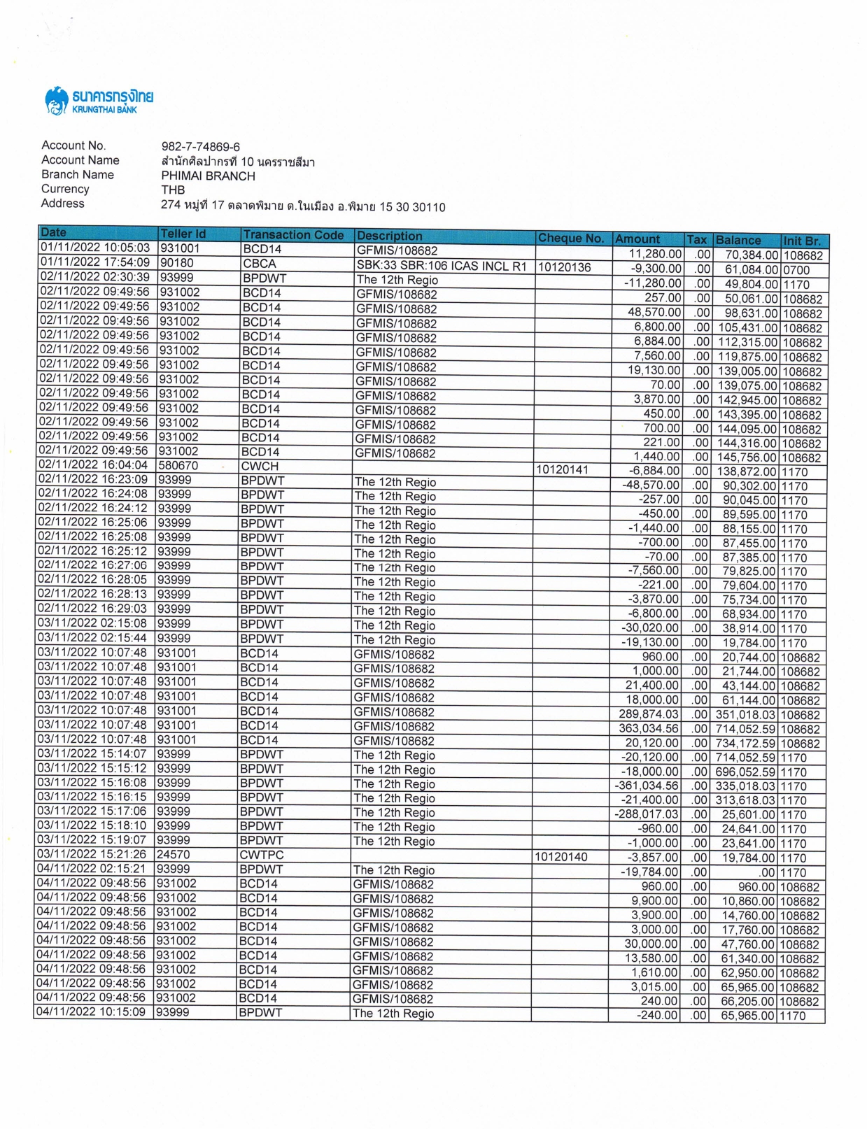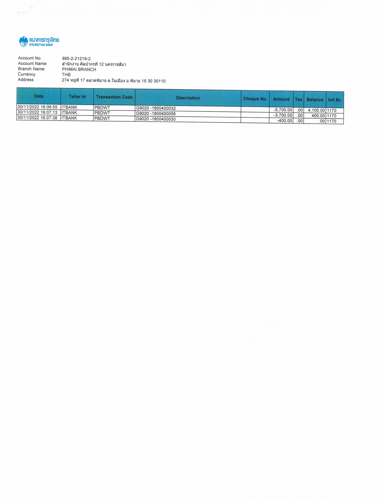 รายละเอียดงบทดลองประจำเดือน พฤศจิกายน ๒๕๖๕