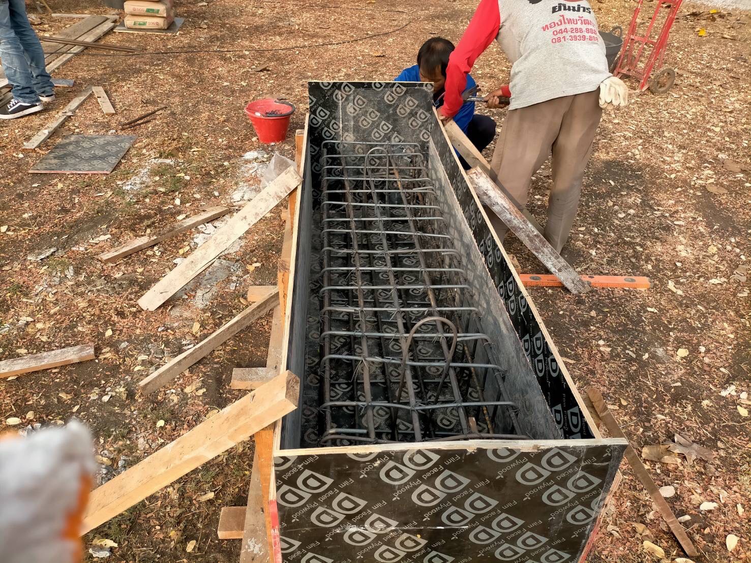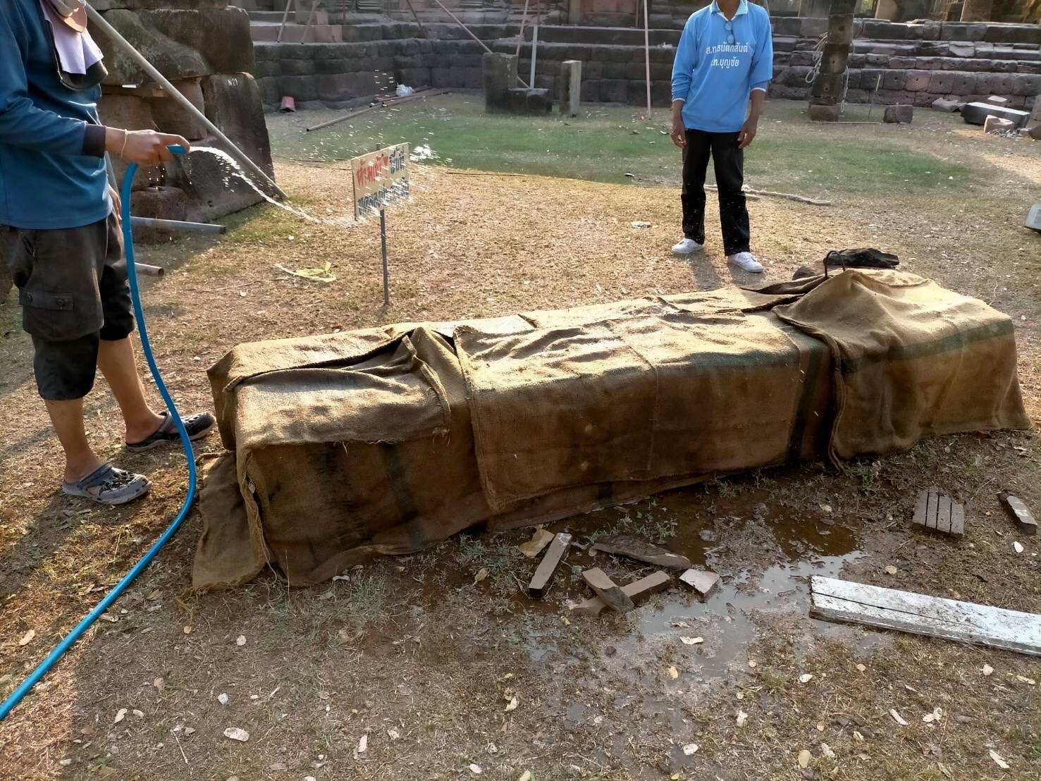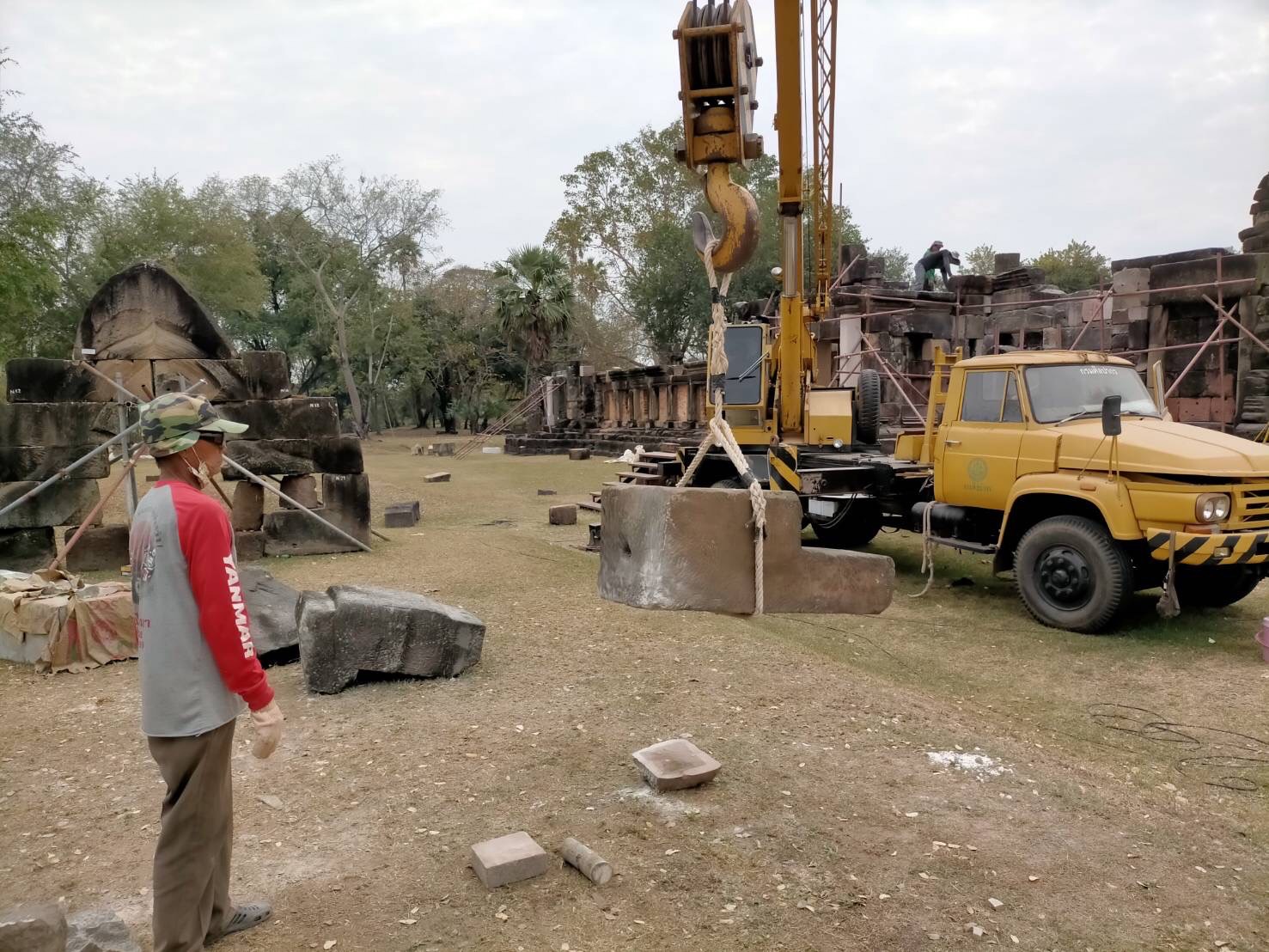 - หล่อคานคอนกรีตเพื่อรองรับชิ้นส่วนหน้าบันโคปุระด้านทิศตะวันออก