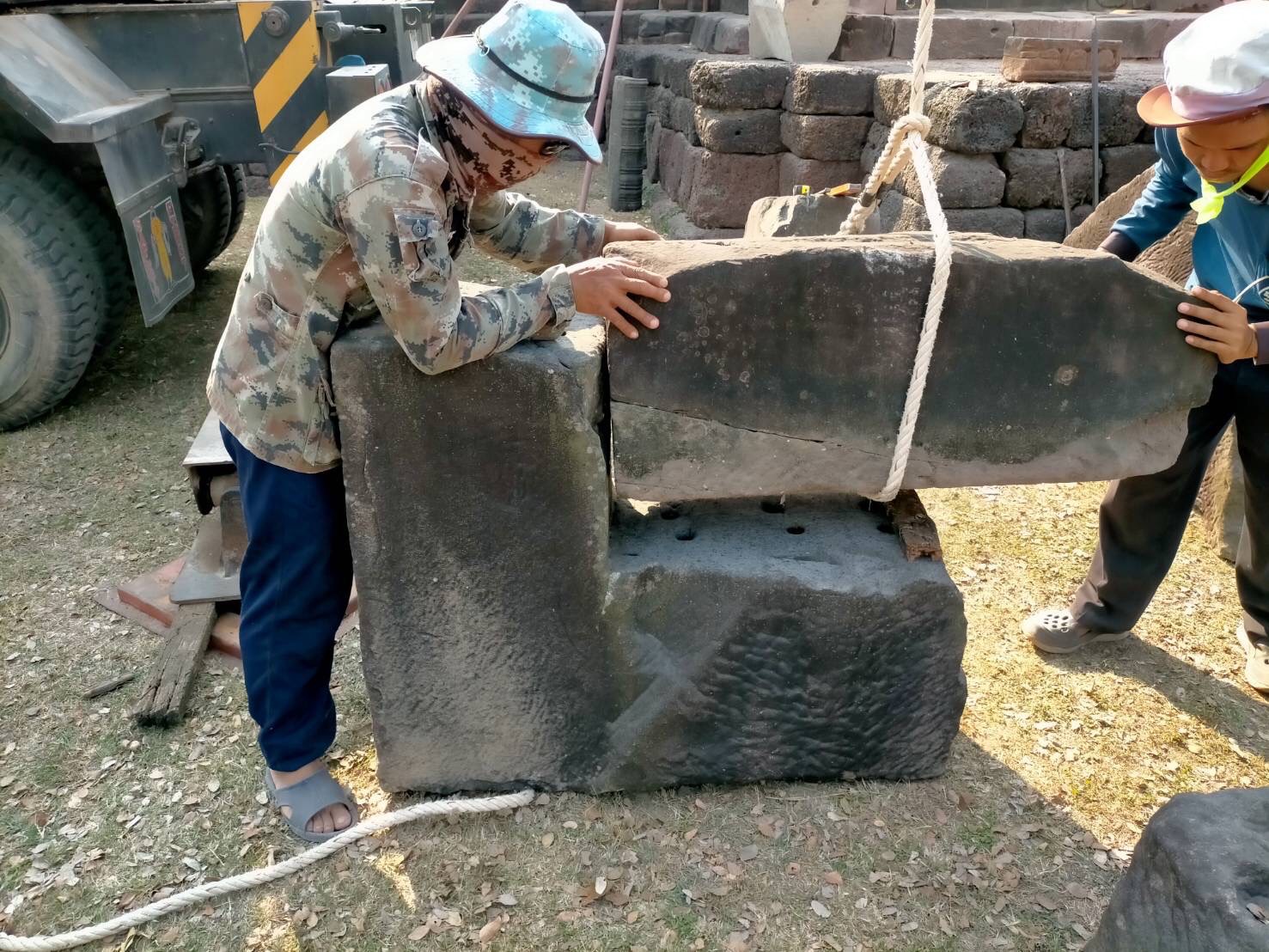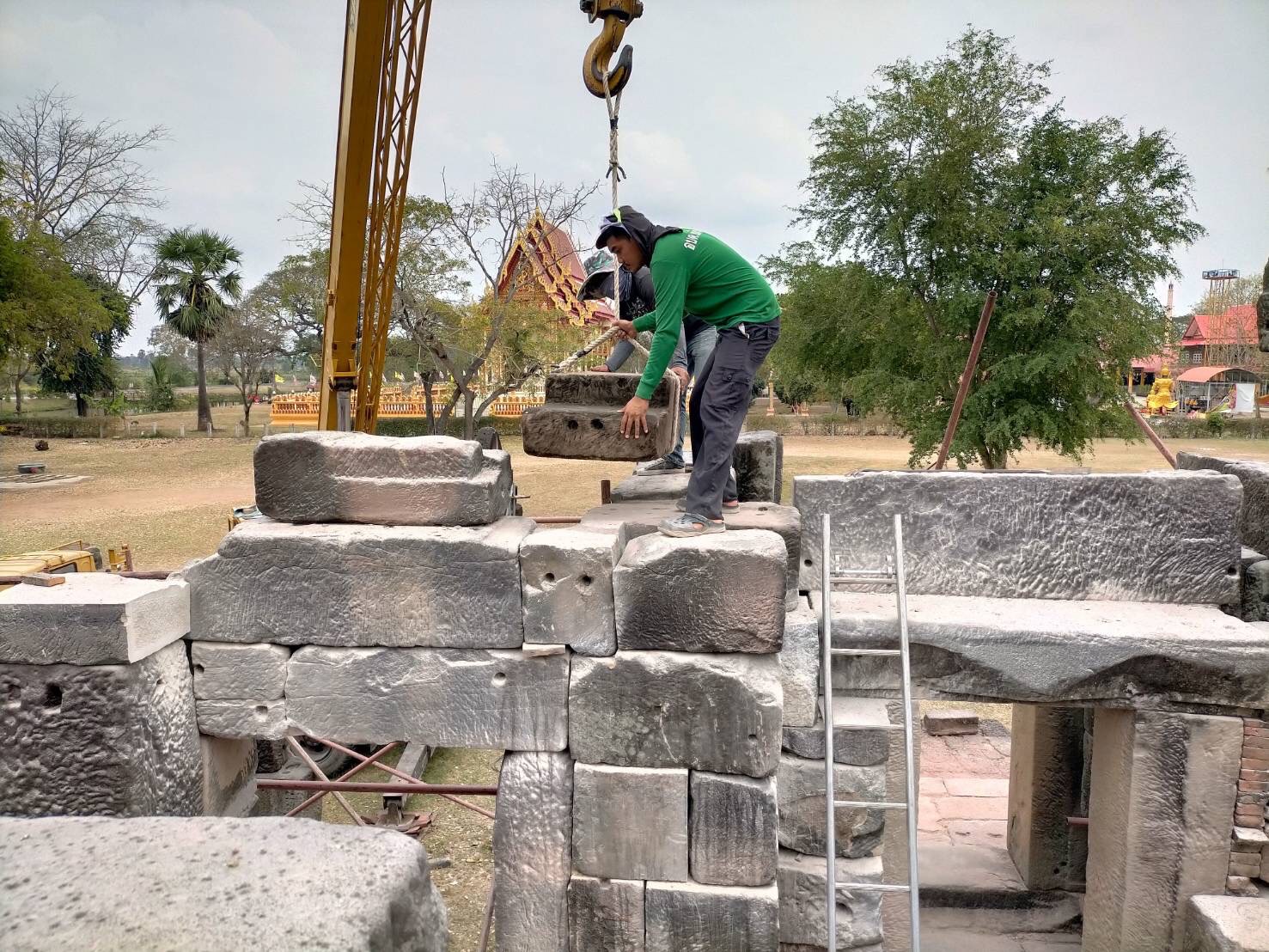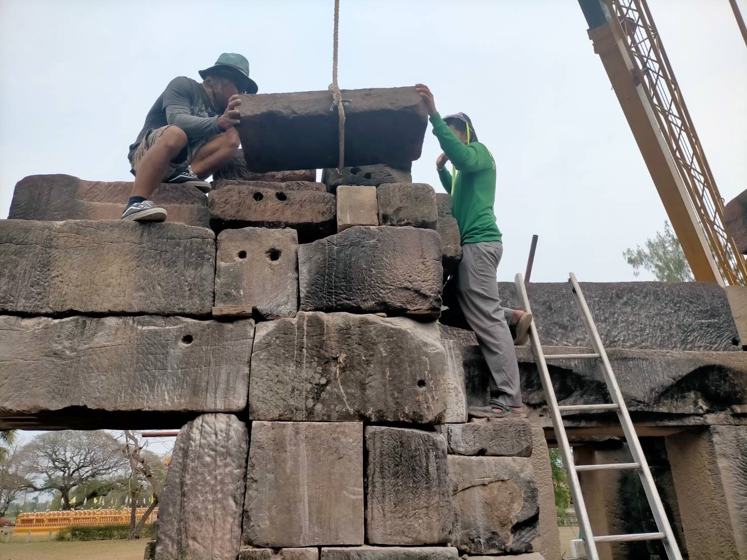 - หาหินที่เหลือจากการบูรณะและหินที่เหลือจากการทดลองประกอบมาแต่งเพื่อนำมาใช้งานทดแทนหินที่สูญหาย