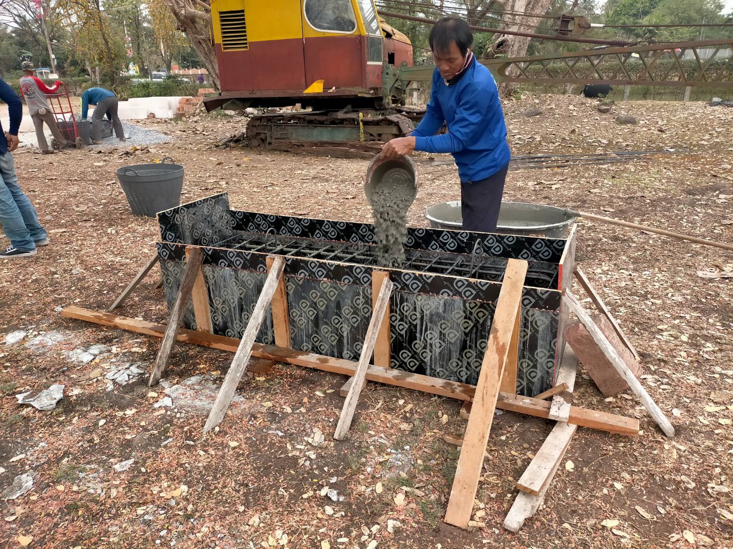 - หาหินเก่าที่ขนาดพอใช้ได้นำมาแต่งเพื่อเสริมความสมบูรณ์ของหน้าบัน รอการนำขึ้นนิดตั้ง