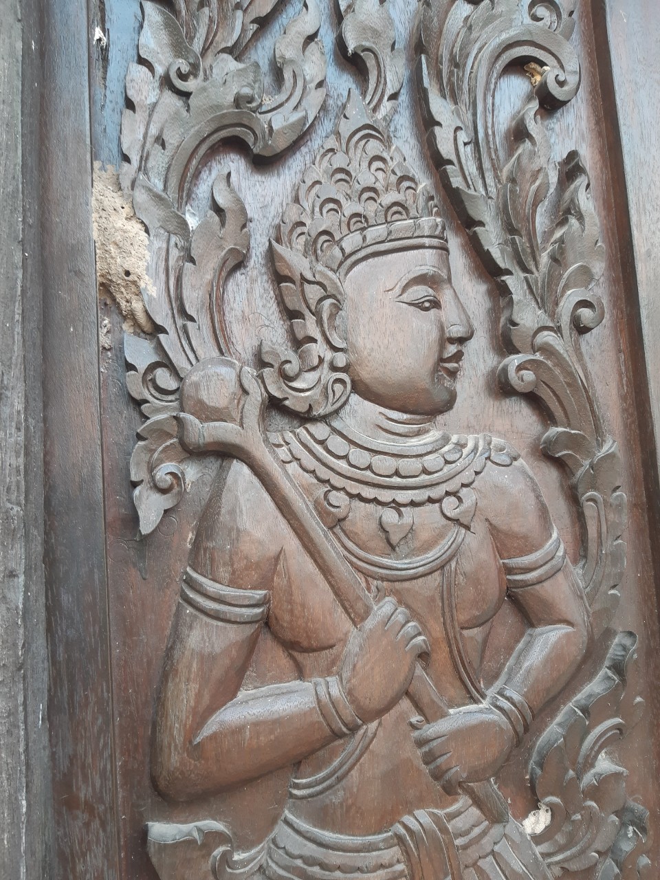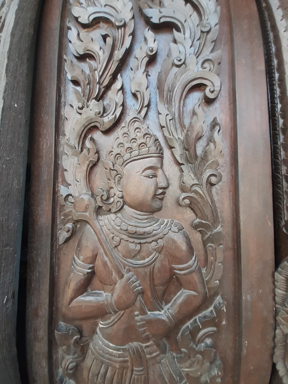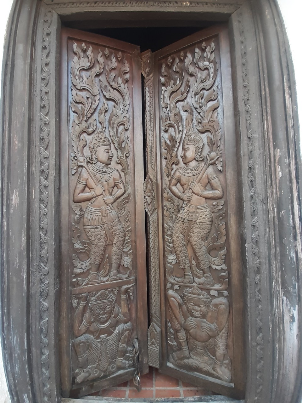 ดำเนินการทำความสะอาดบานประตูไม้แกะสลักอุโบสถเก่า วัดสุวรรณาวาส ตำบลโคกพระ อำเภอกันทรวิชัย จังหวัดมหาสารคาม