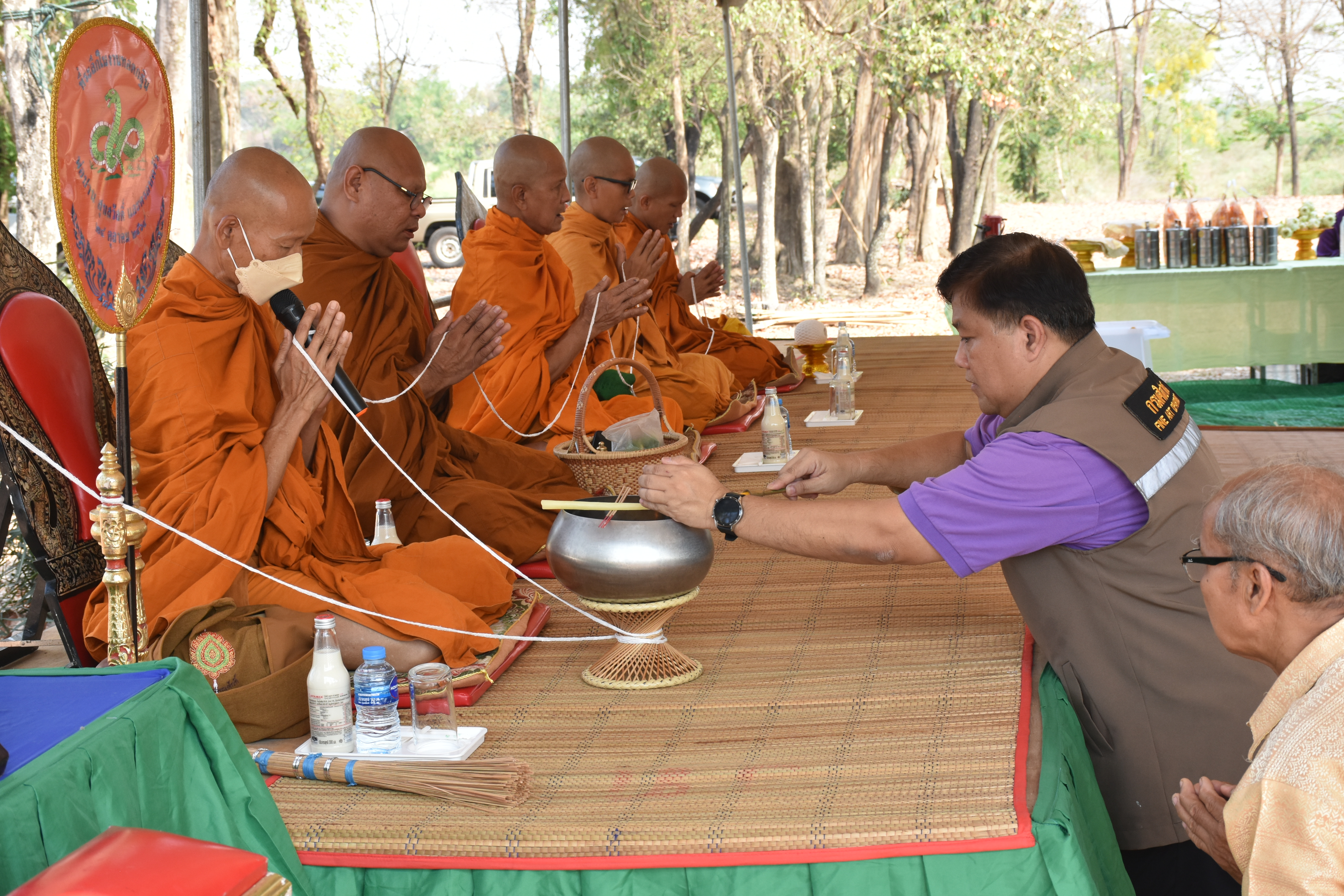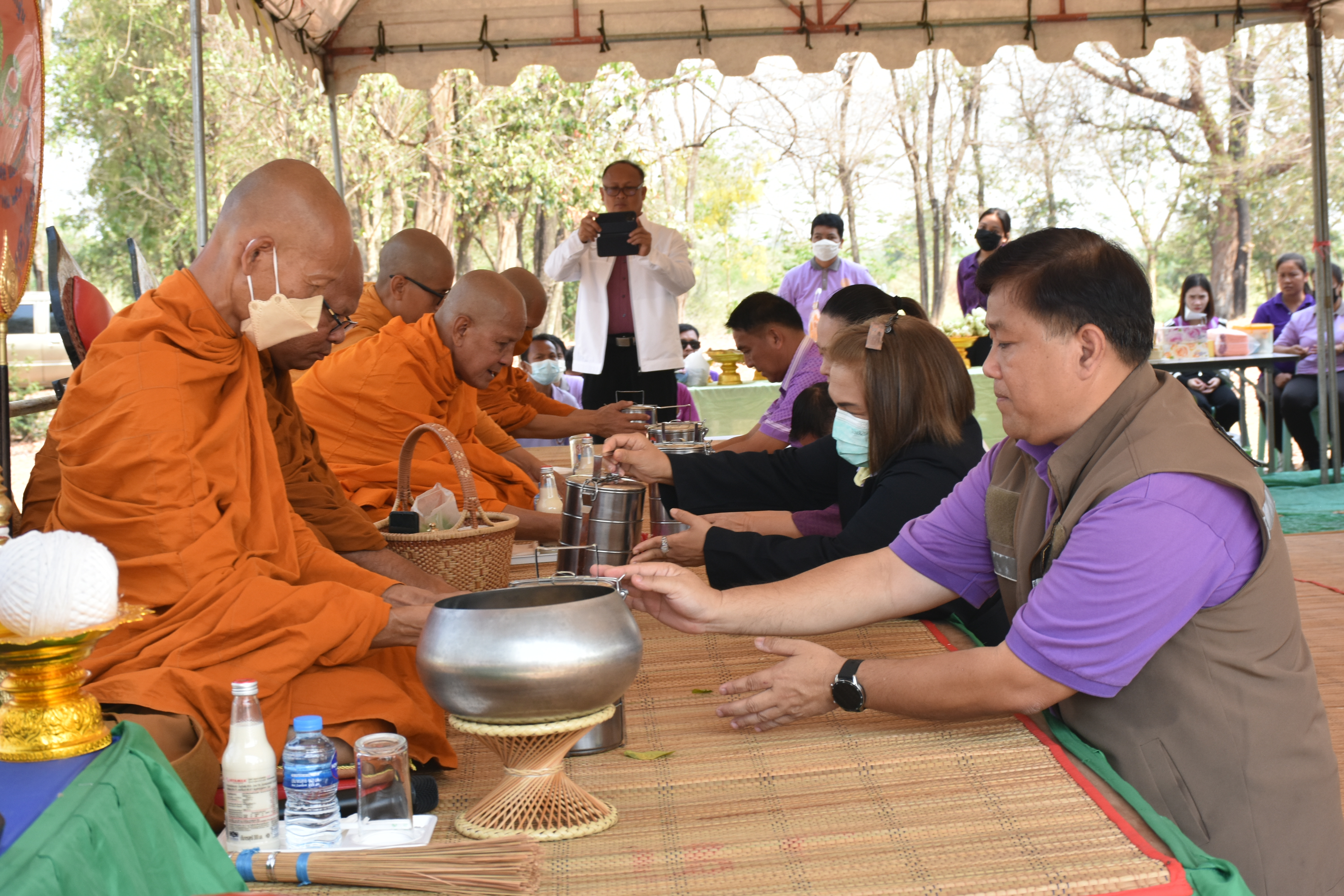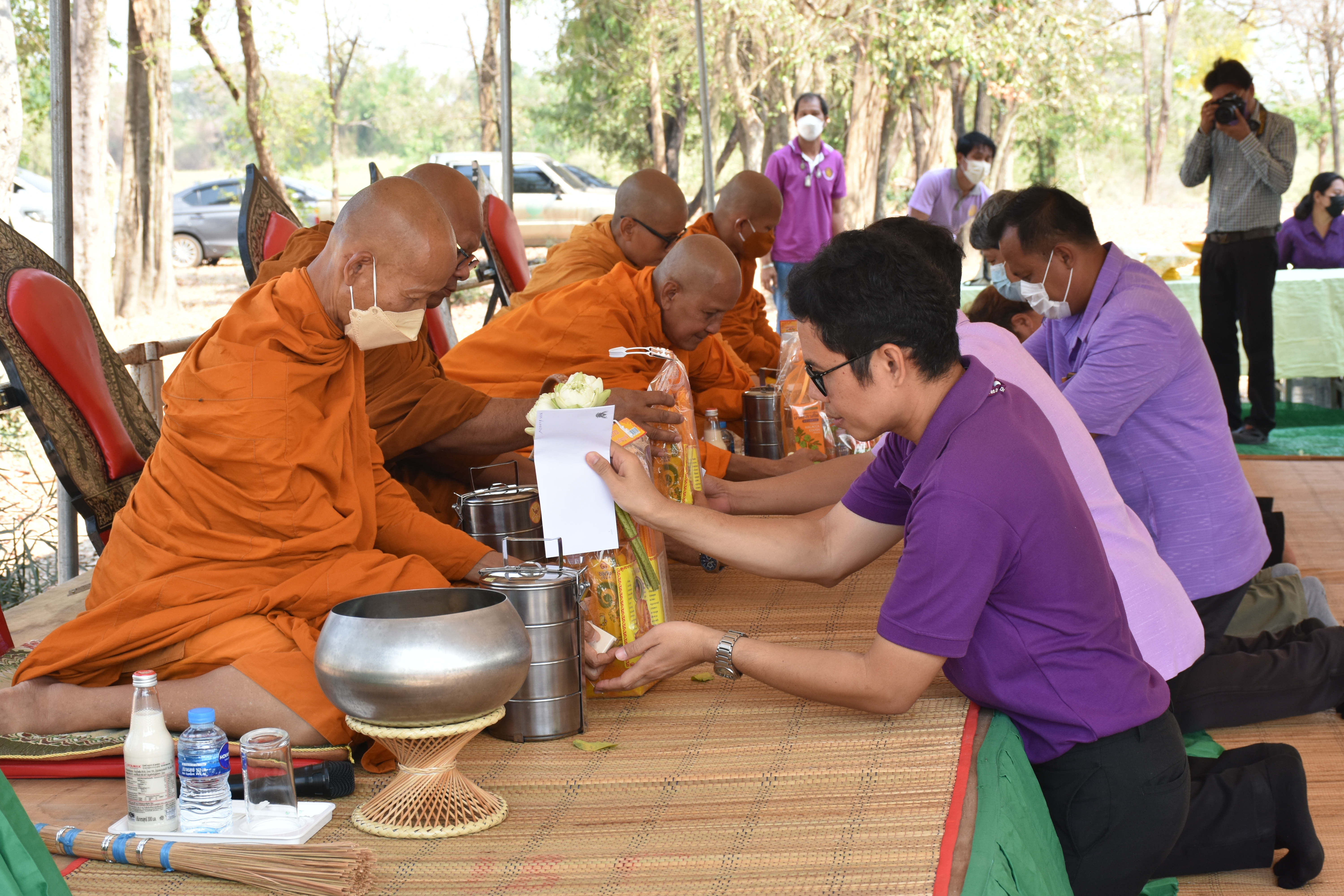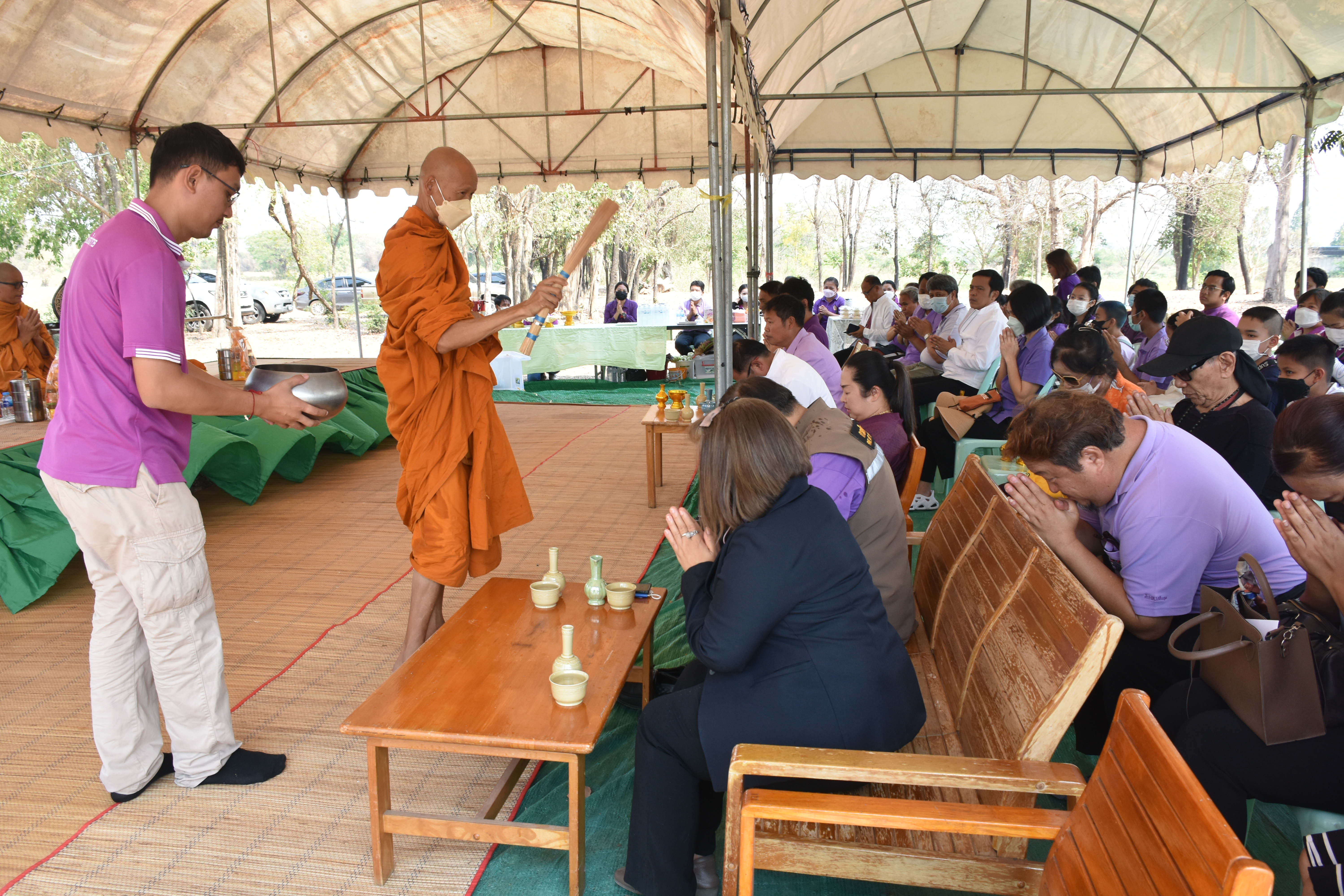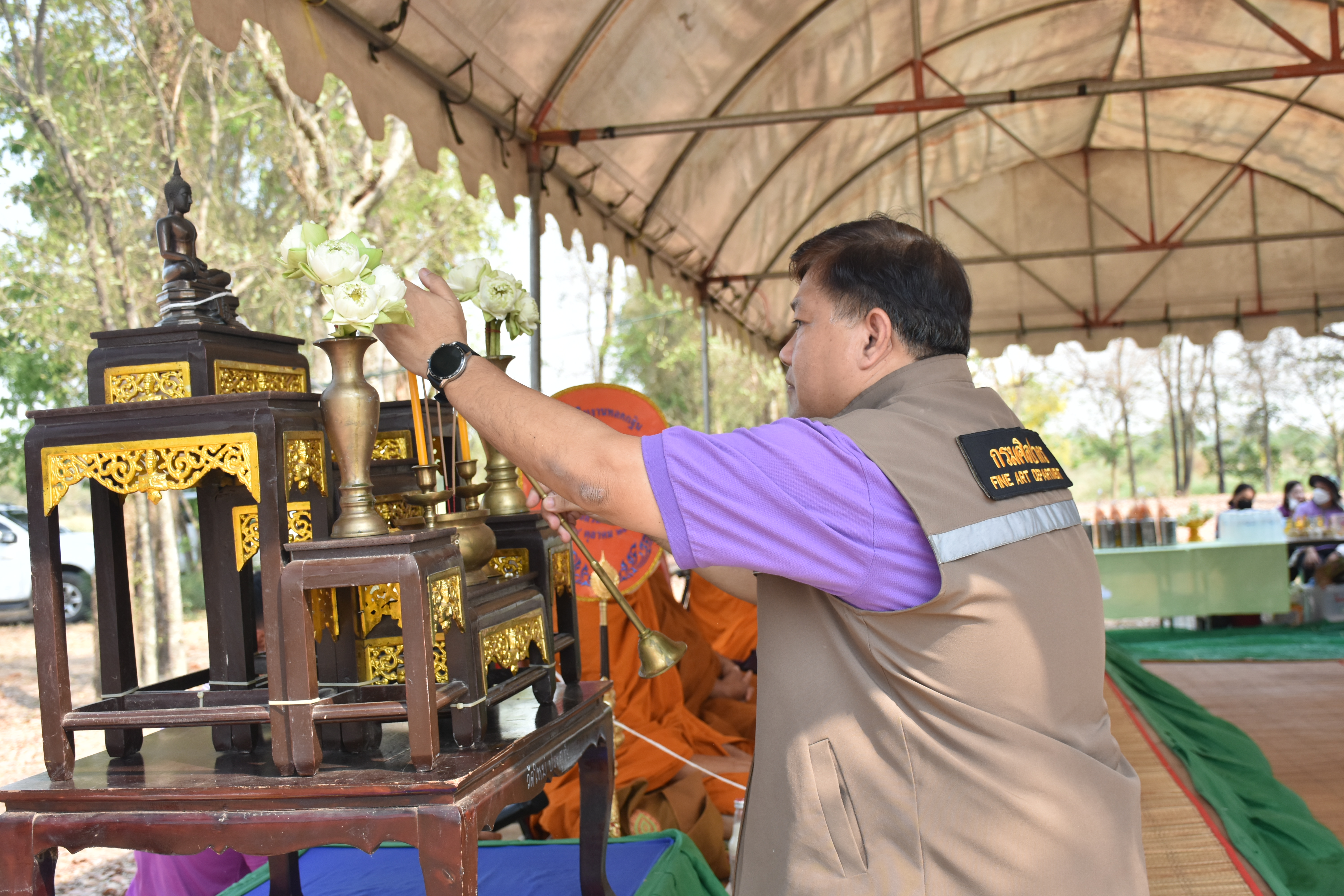 - พระสงฆ์ ๕ รูป เจริญพระพุทธมนต์ ประธานในพิธี แขกผู้มีเกียรติ และประชาชน ร่วมถวายภัตตาหารเพล (ปิ่นโต) และจตุปัจจัยแก่พระสงฆ์