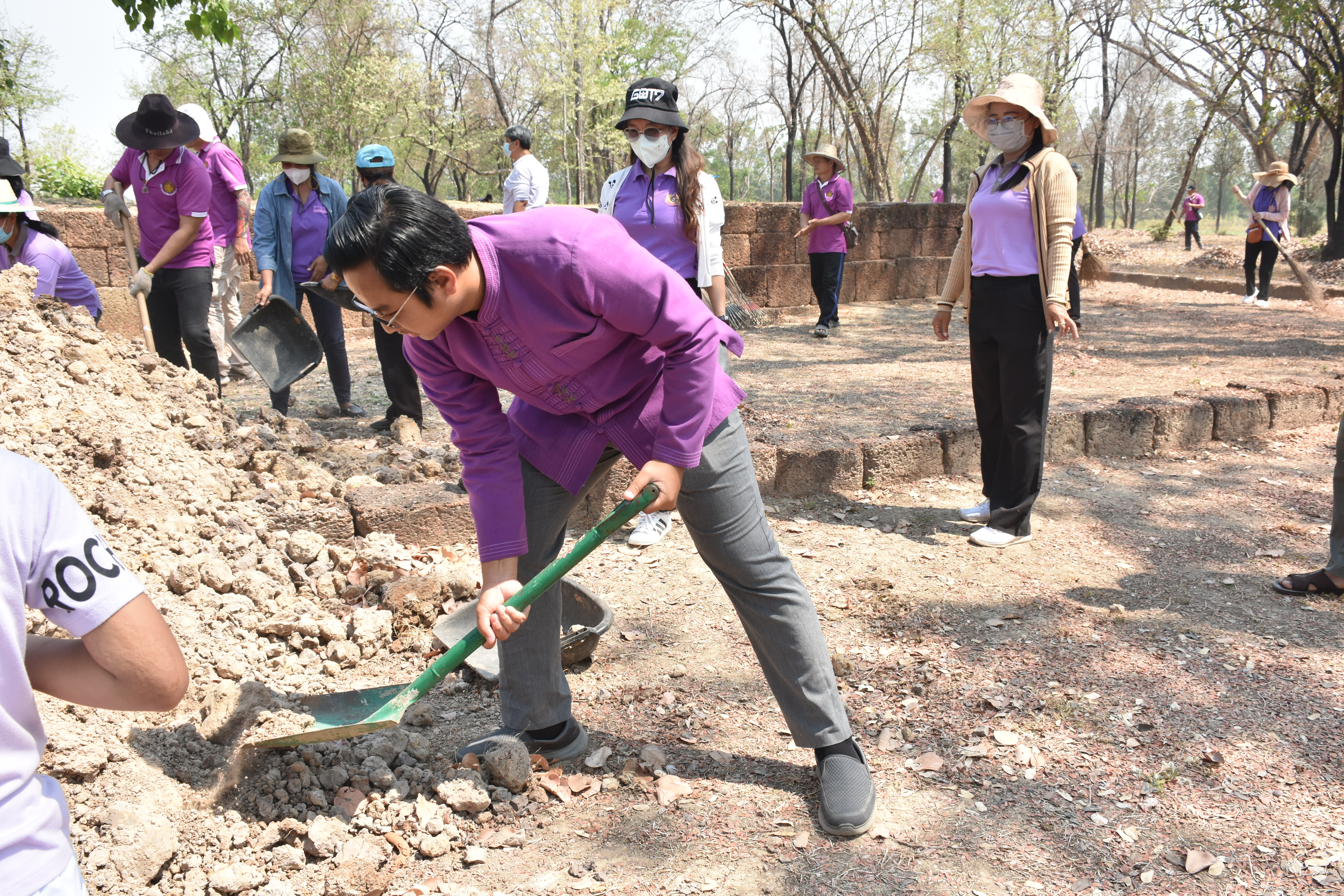 - ประธานในพิธี พร้อมด้วยคณะเจ้าหน้าที่หน่วยงานในสังกัด ร่วมกับประชาชน ภาครัฐและภาคเอกชน ร่วมกันขนดินเพื่อถมบริเวณที่ดินทรุดตัวบนปราสาทวัดโคก และพัฒนา ทำความสะอาดบริเวณโดยรอบโบราณสถาน