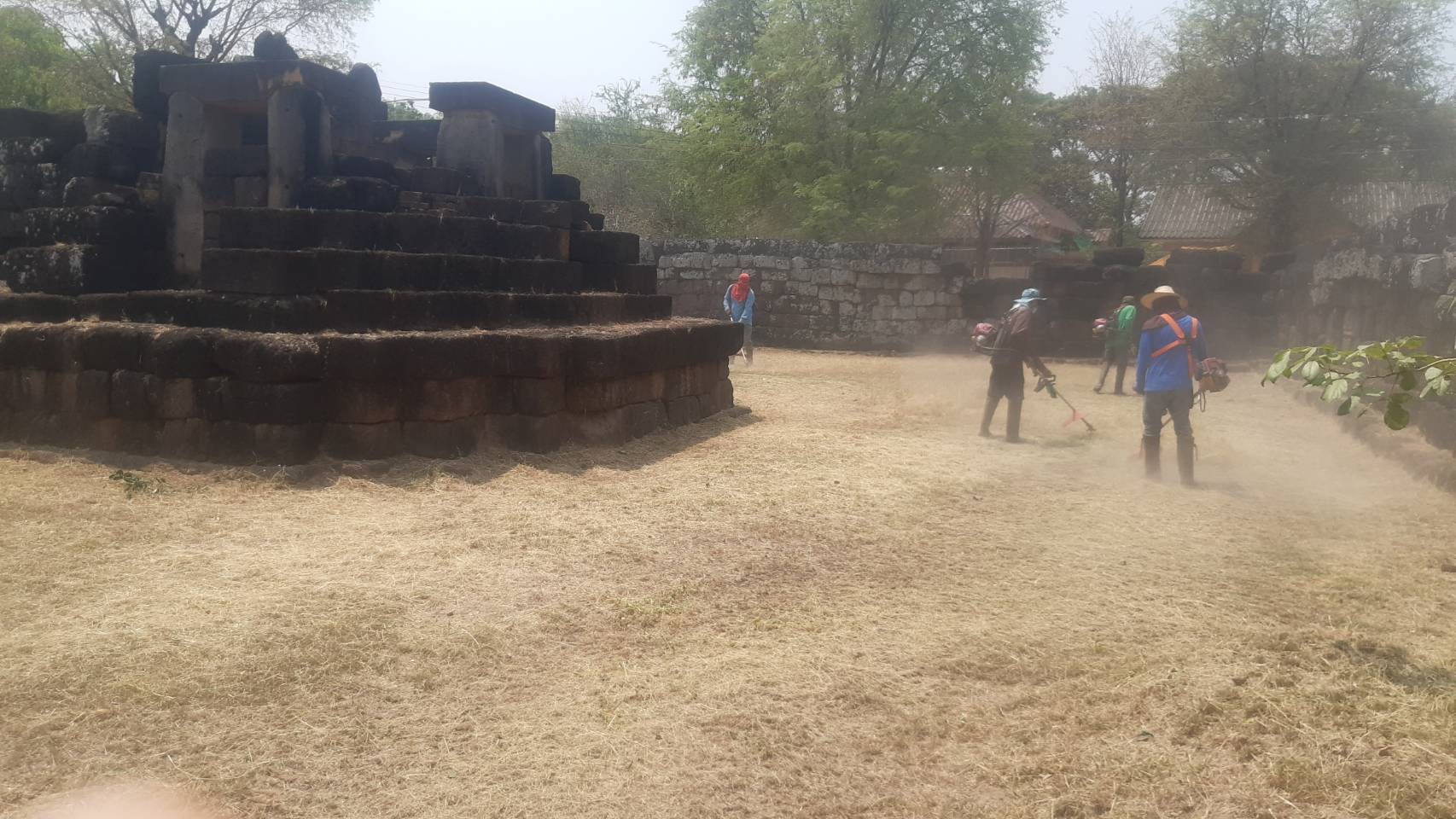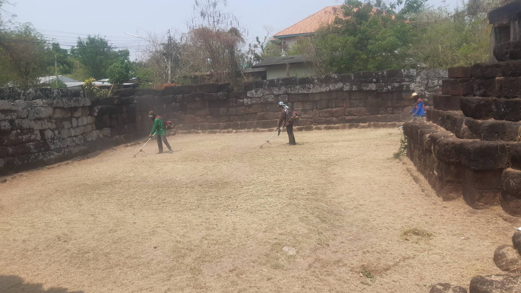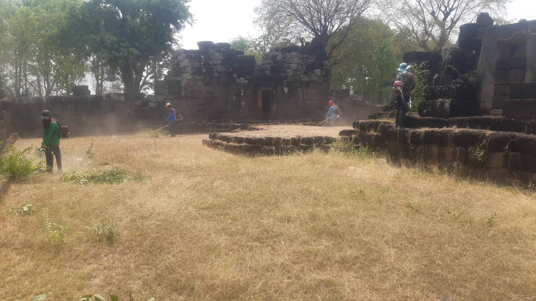 เจ้าหน้าที่สำนักศิลปากรที่ ๑๐ นครราชสีมา ลงพื้นที่ดำเนินการถากถางกำจัดวัชพืชปราสาทพลสงคราม ตำบลพลสงคราม อำเภอโนนสูง จังหวัดนครราชสีมา