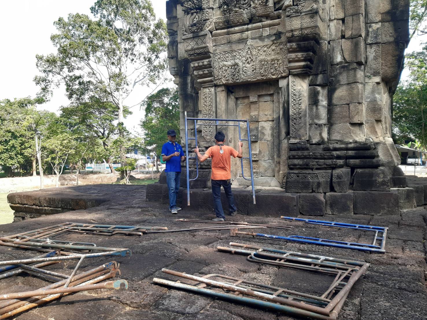 - ดำเนินการติดตั้งนั่งร้านด้านทิศเหนือและทิศใต้ ข้างละ ๔ ชั้น จำนวน ๒ ชุด