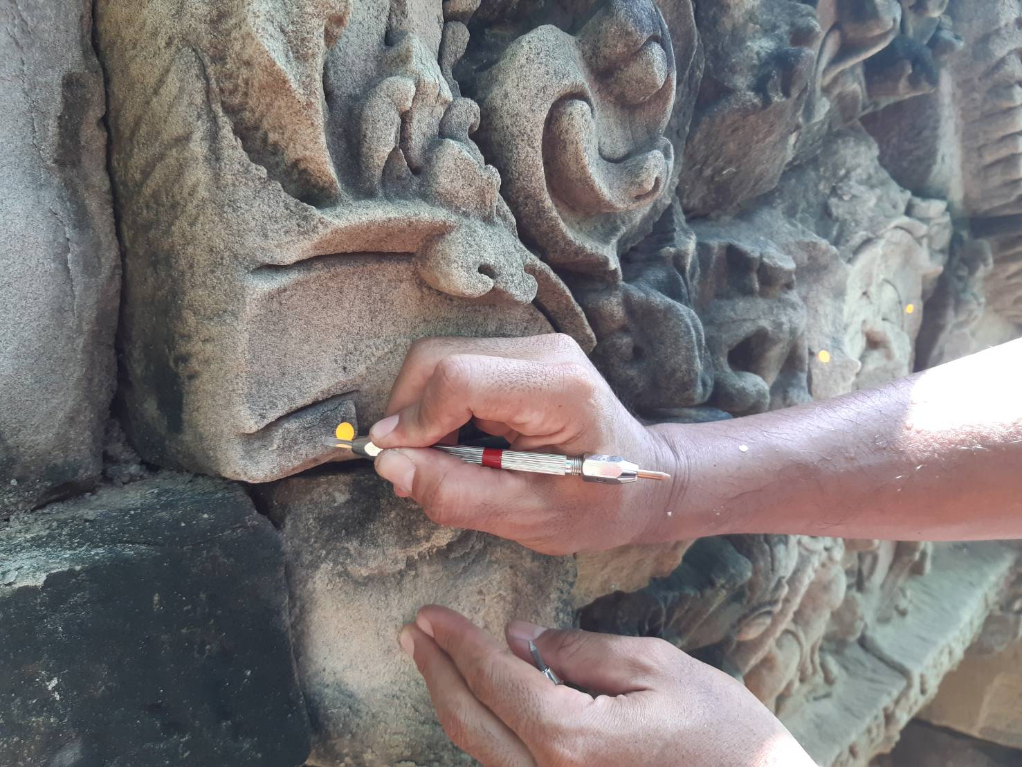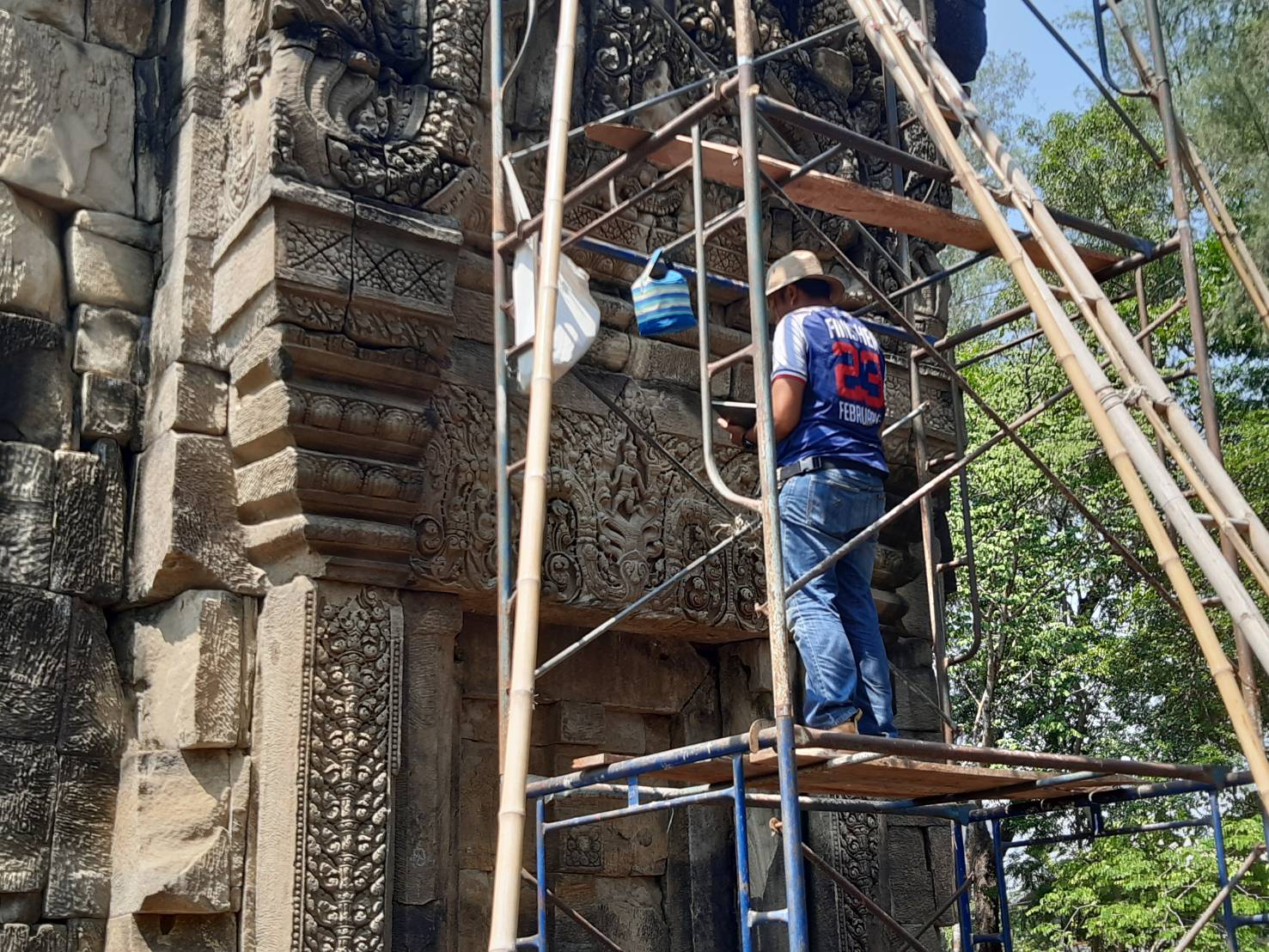 - ดำเนินการเก็บข้อมูลสภาพปัจจุบันความเสียหายทับหลังและหน้าบัน ด้านทิศใต้และทิศเหนือ