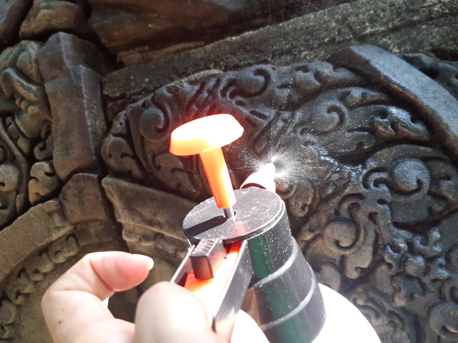 - ดำเนินการทดสอบเทน้ำ เพื่อสังเกตทิศทางการไหลระบายและการซึมของน้ำด้านบนปราสาท