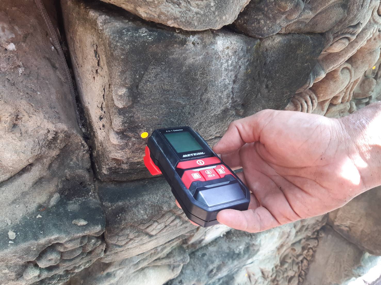 - ดำเนินการตรวจวัดความชื้นในเนื้อหิน จำนวน ๓๐ จุด หน้าบันทับหลังด้านทิศใต้