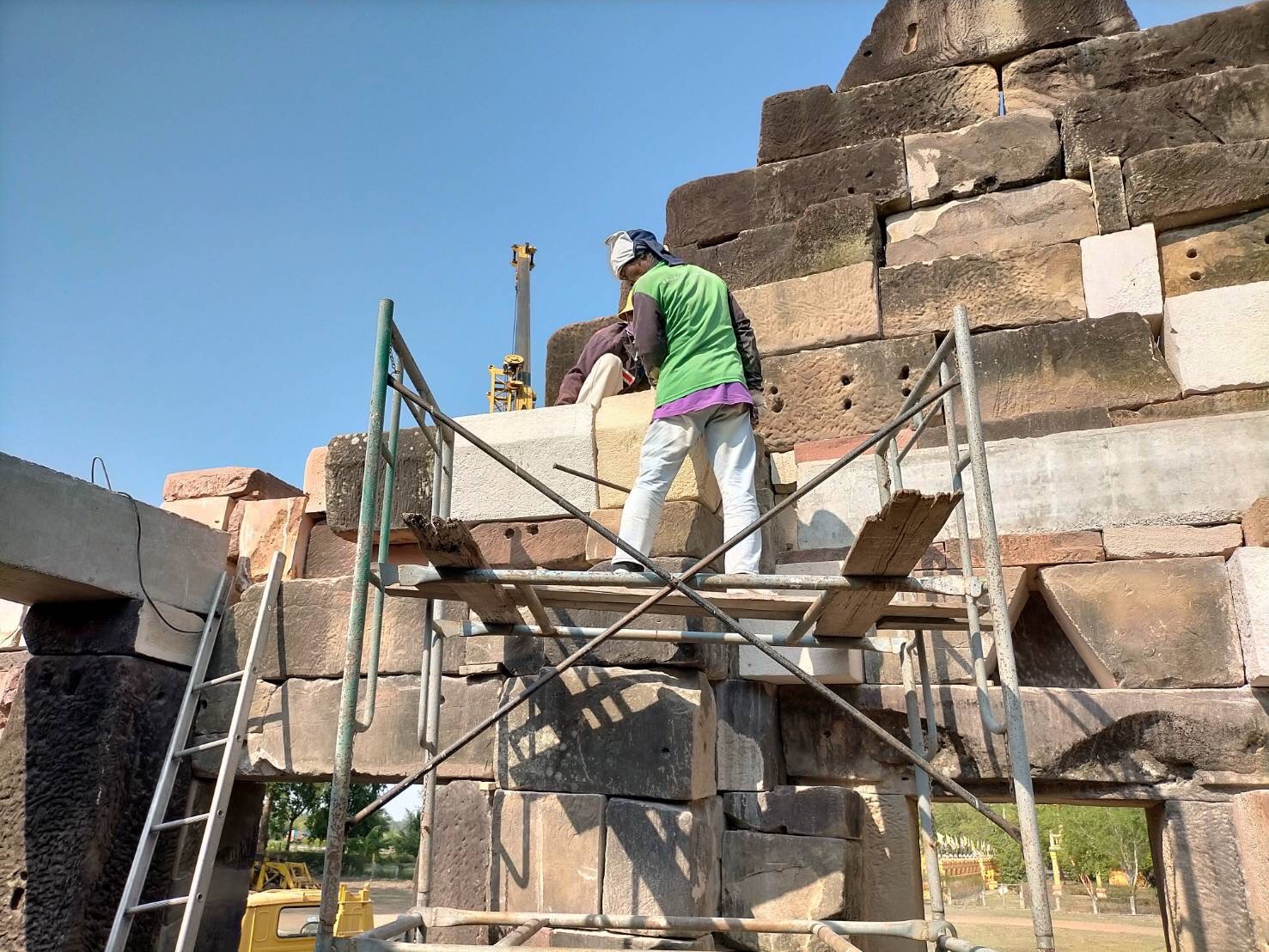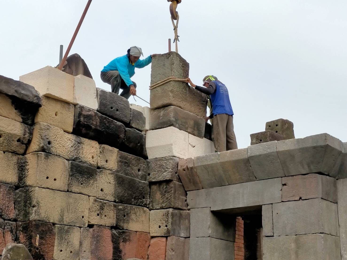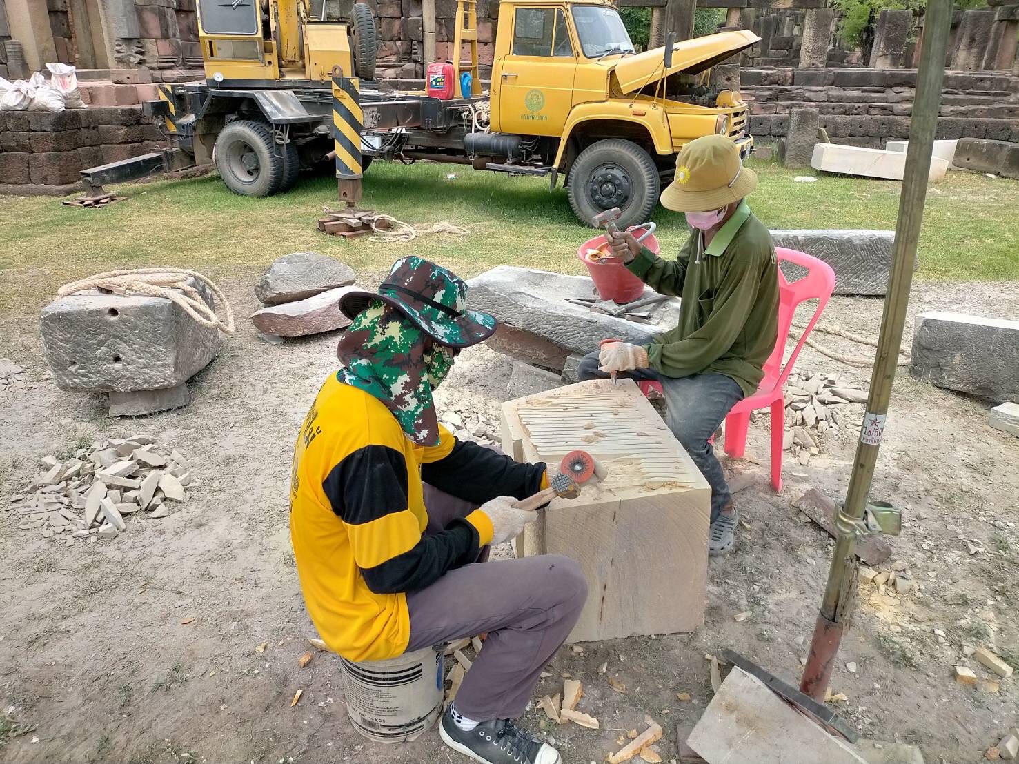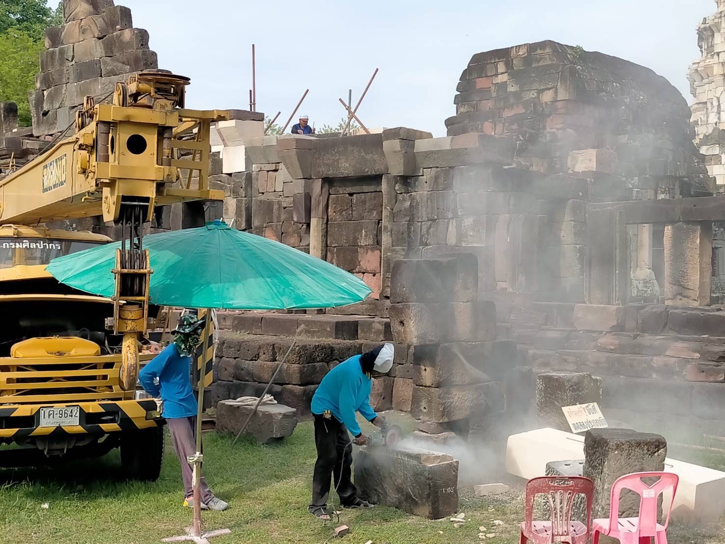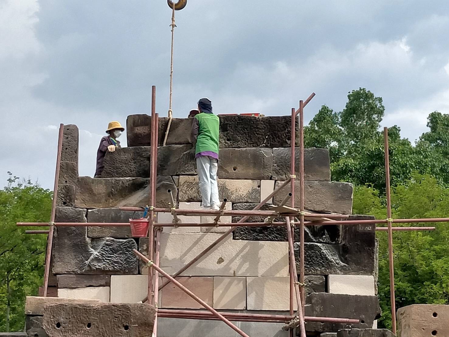 - หาหินที่เหลือจากการบูรณะและหินที่เหลือจากการทดลองประกอบมาแต่งเพื่อนำมาใช้งานทดแทนหินที่สูญหาย