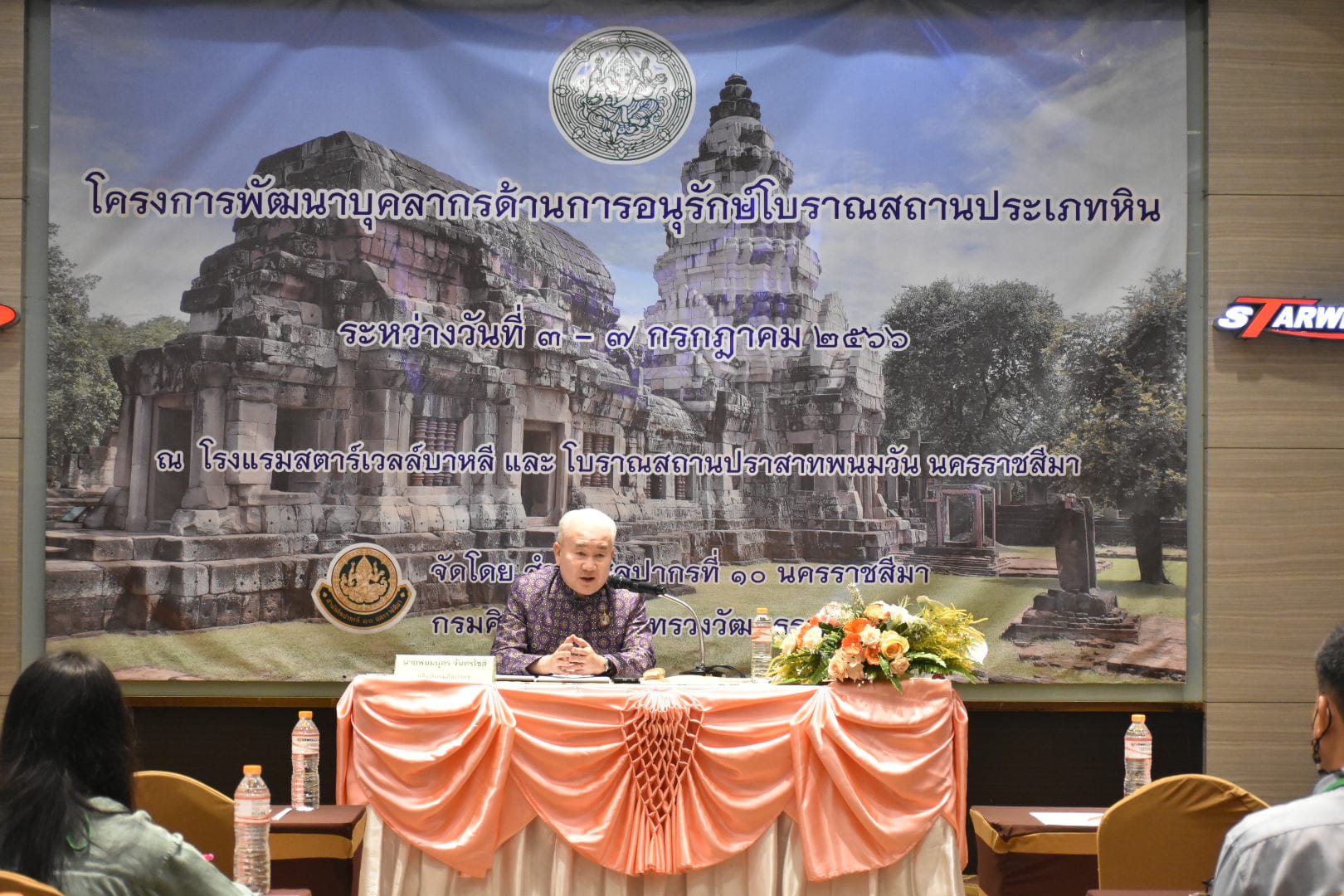 วันจันทร์ที่ ๓ กรกฎาคม ๒๕๖๖ เวลา ๐๙.๐๐ น. นายพนมบุตร จันทรโชติ อธิบดีกรมศิลปากร เป็นประธานในพิธีเปิดโครงการพัฒนาบุคลากรด้านการอนุรักษ์โบราณสถานประเภทหิน และบรรยายพิเศษเรื่อง “กรมศิลปากรเกี่ยวกับนโยบายการอนุรักษ์โบราณสถาน”