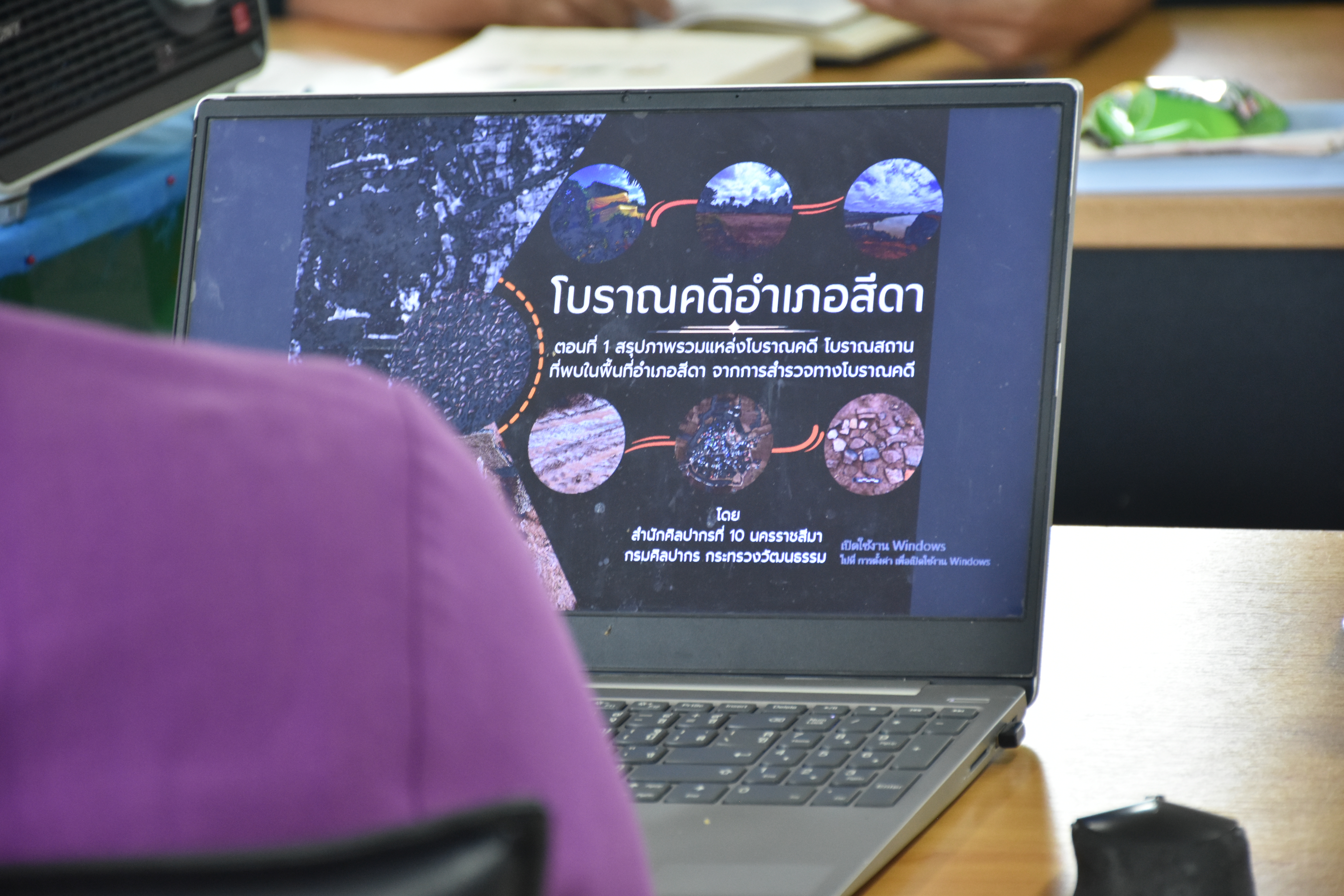 ประชุมร่วมกับนางกนิฎฐี สุนทรเกศ นายอำเภอสีดา ผู้บริหารท้องถิ่น และผู้นำชุมชน เพื่อนำเสนอข้อมูลเกี่ยวกับแหล่งโบราณคดี และความเข้าใจในการใช้พื้นที่โบราณสถาน เพื่อนำไปใช้เป็นแนวทางสำหรับการพัฒนาพื้นที่ในเขตอำเภอสีดา