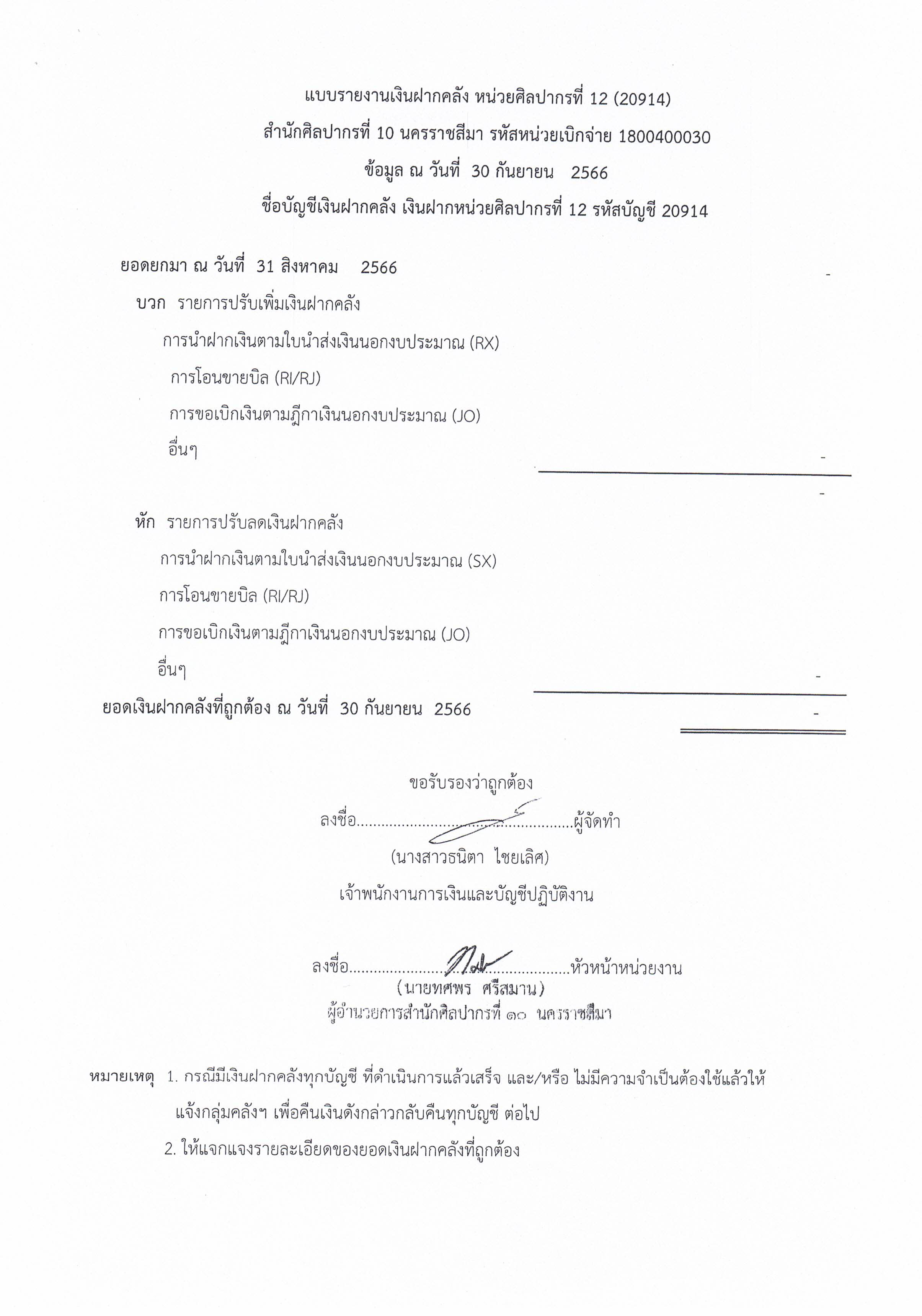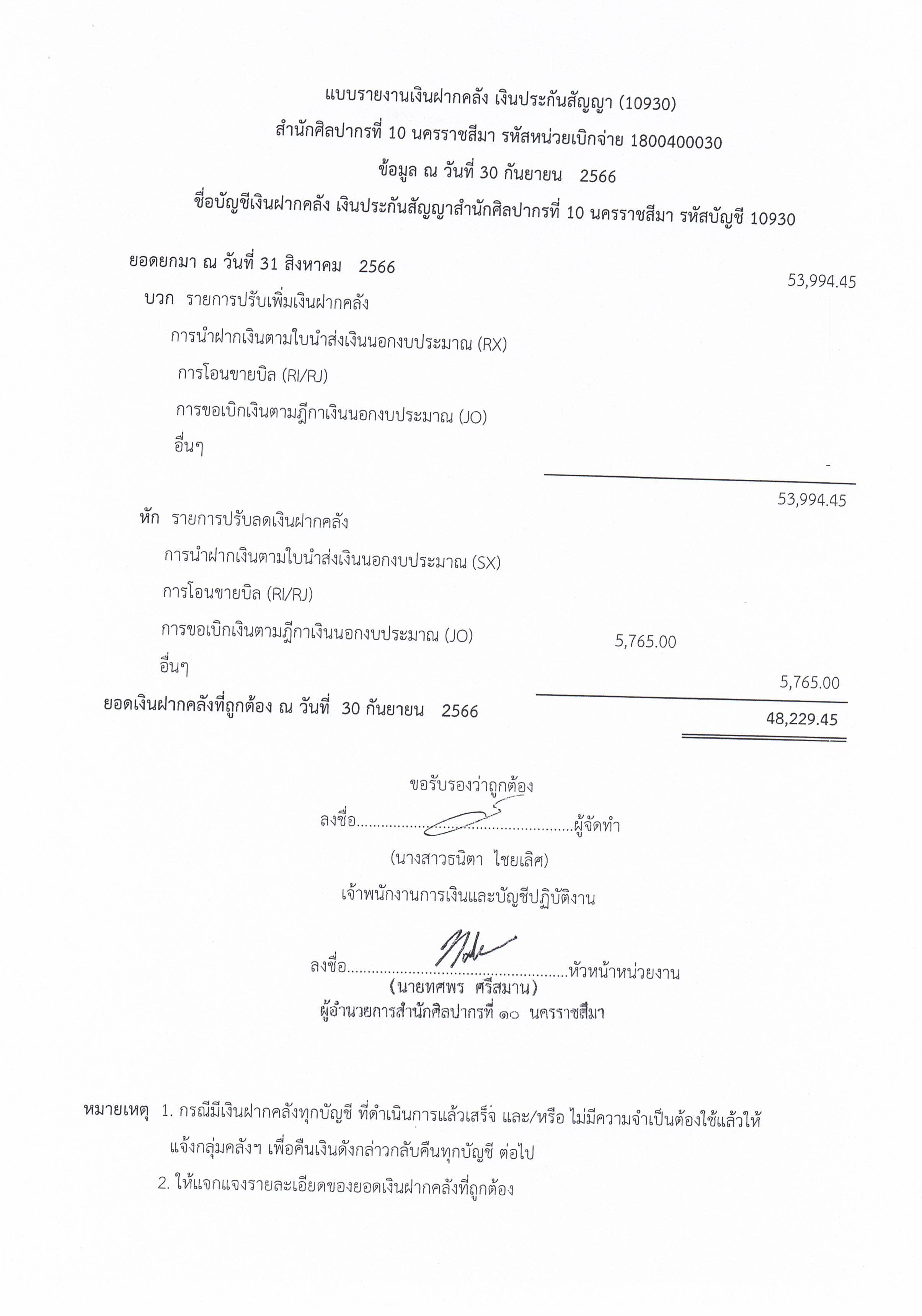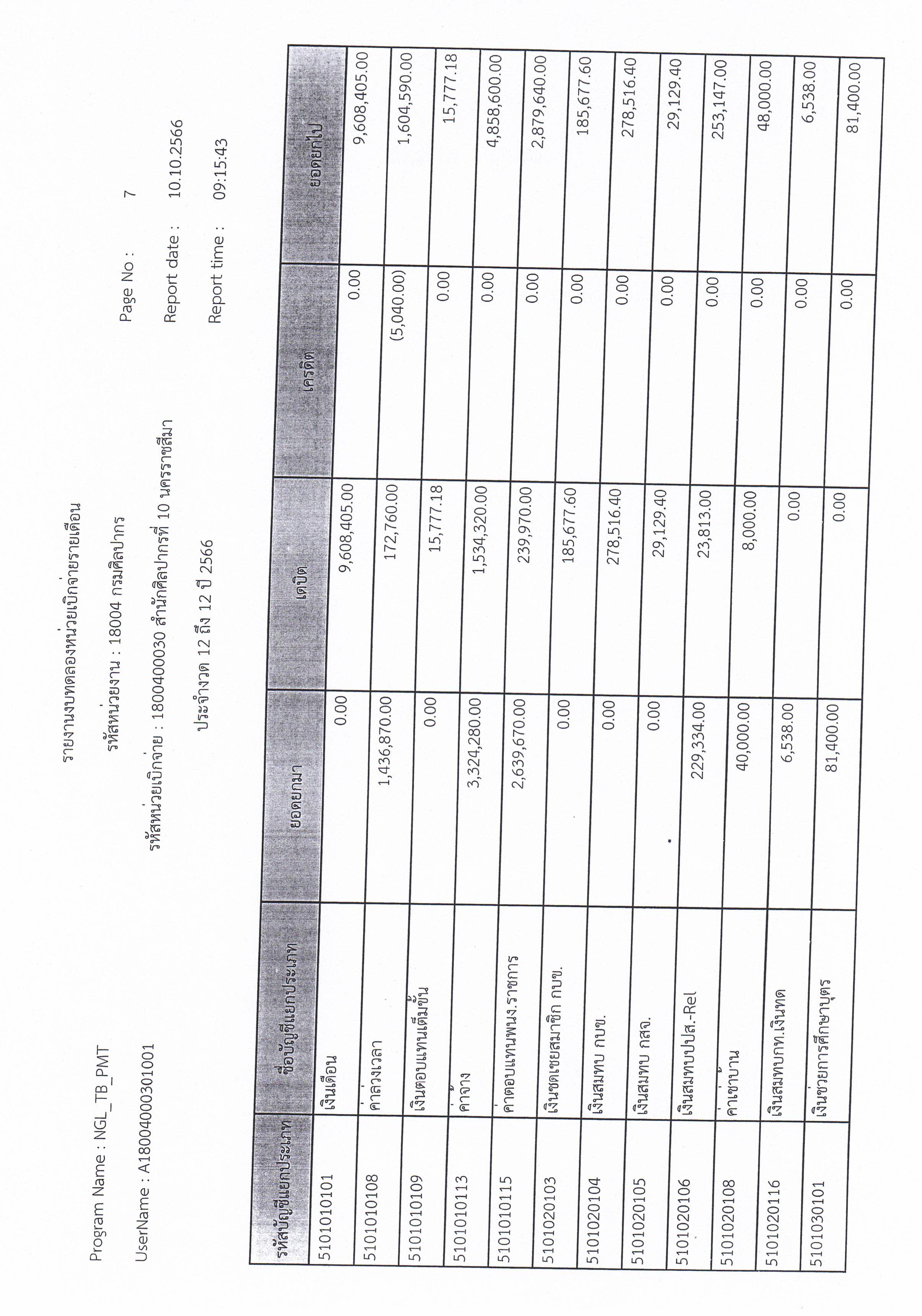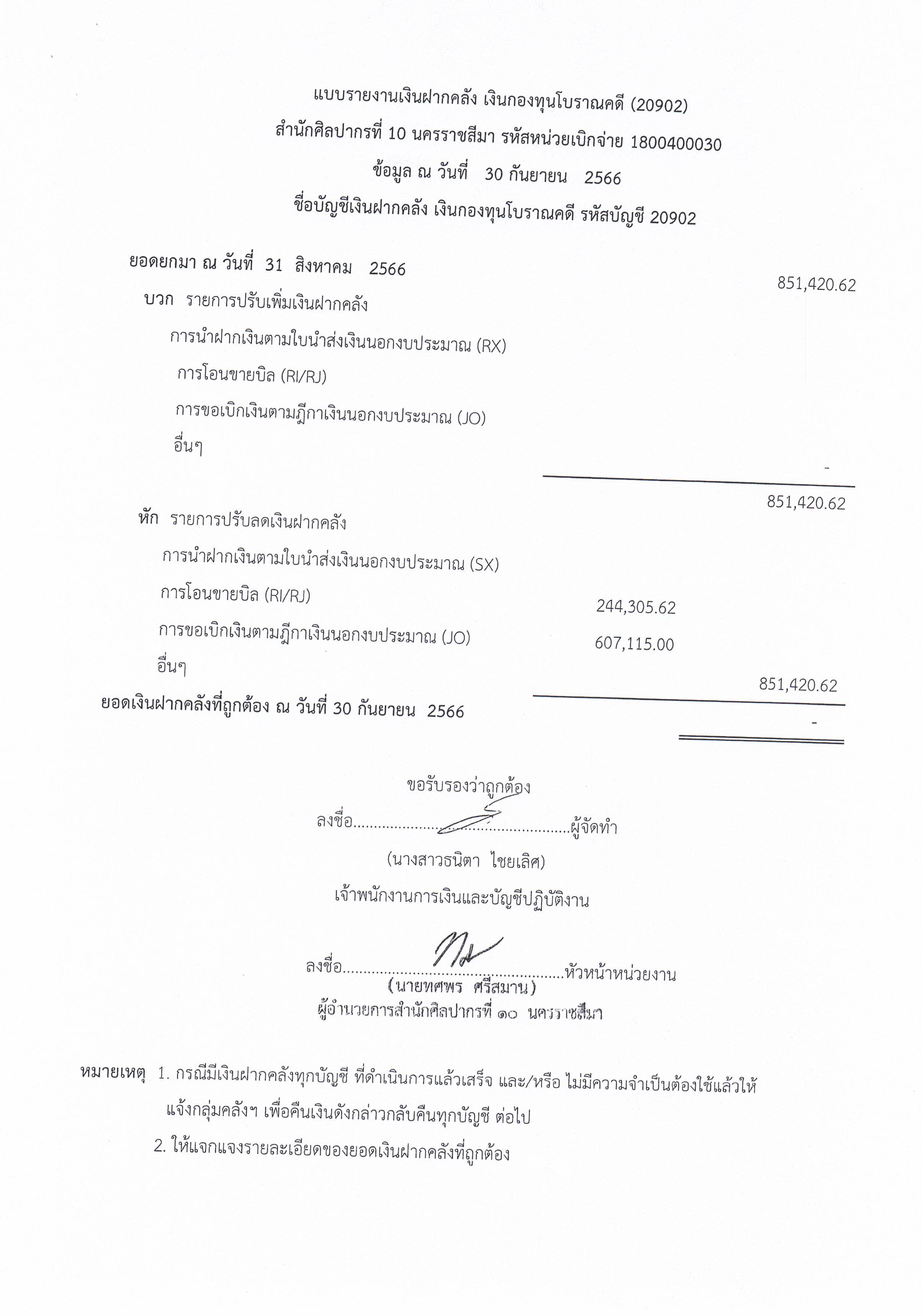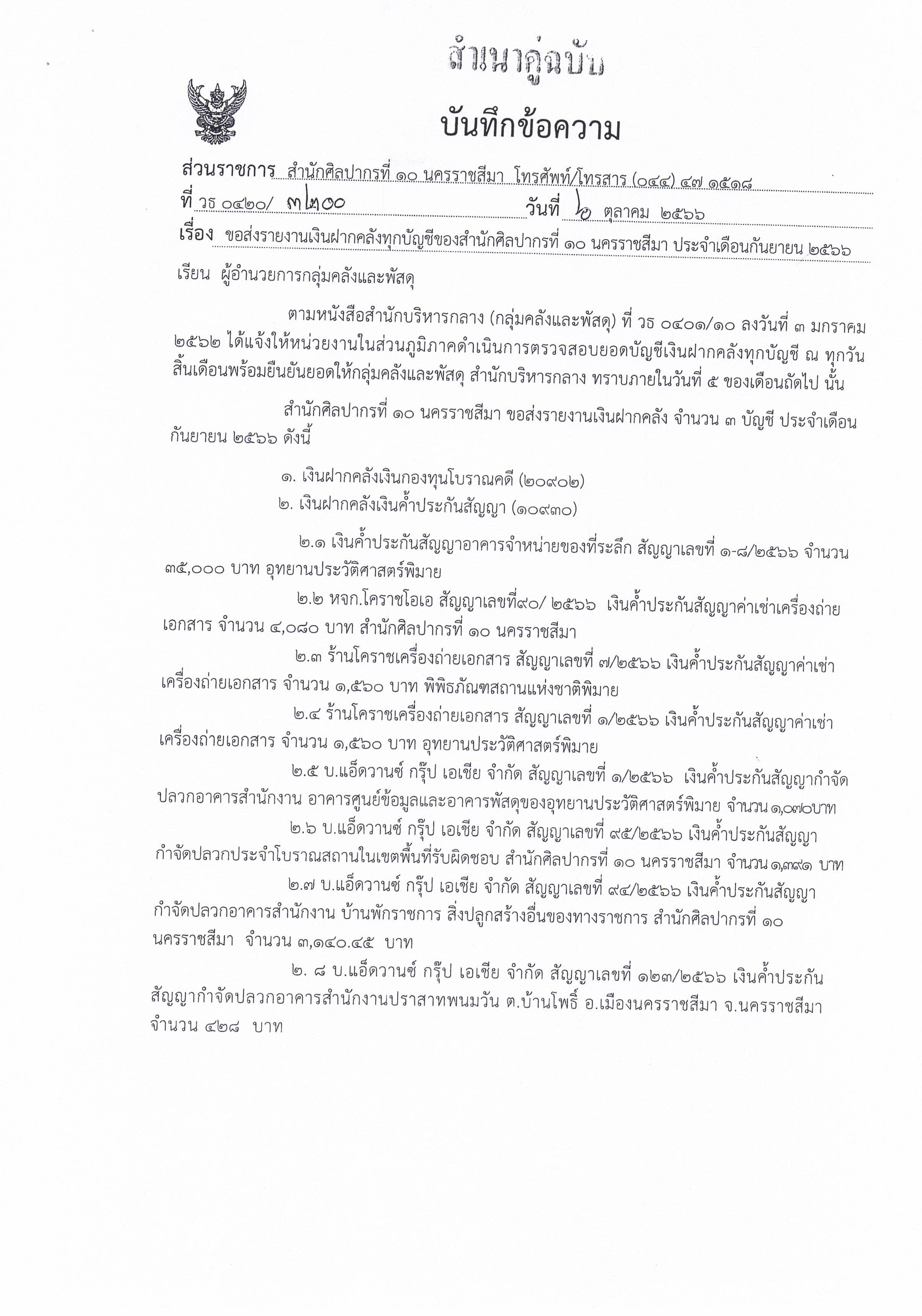 รายงานบัญชีงบทดลองและเอกสารประกอบงบทดลอง สำนักศิลปากรที่ ๑๐ นครราชสีมา (เดือนกันยายน ๒๕๖๖)