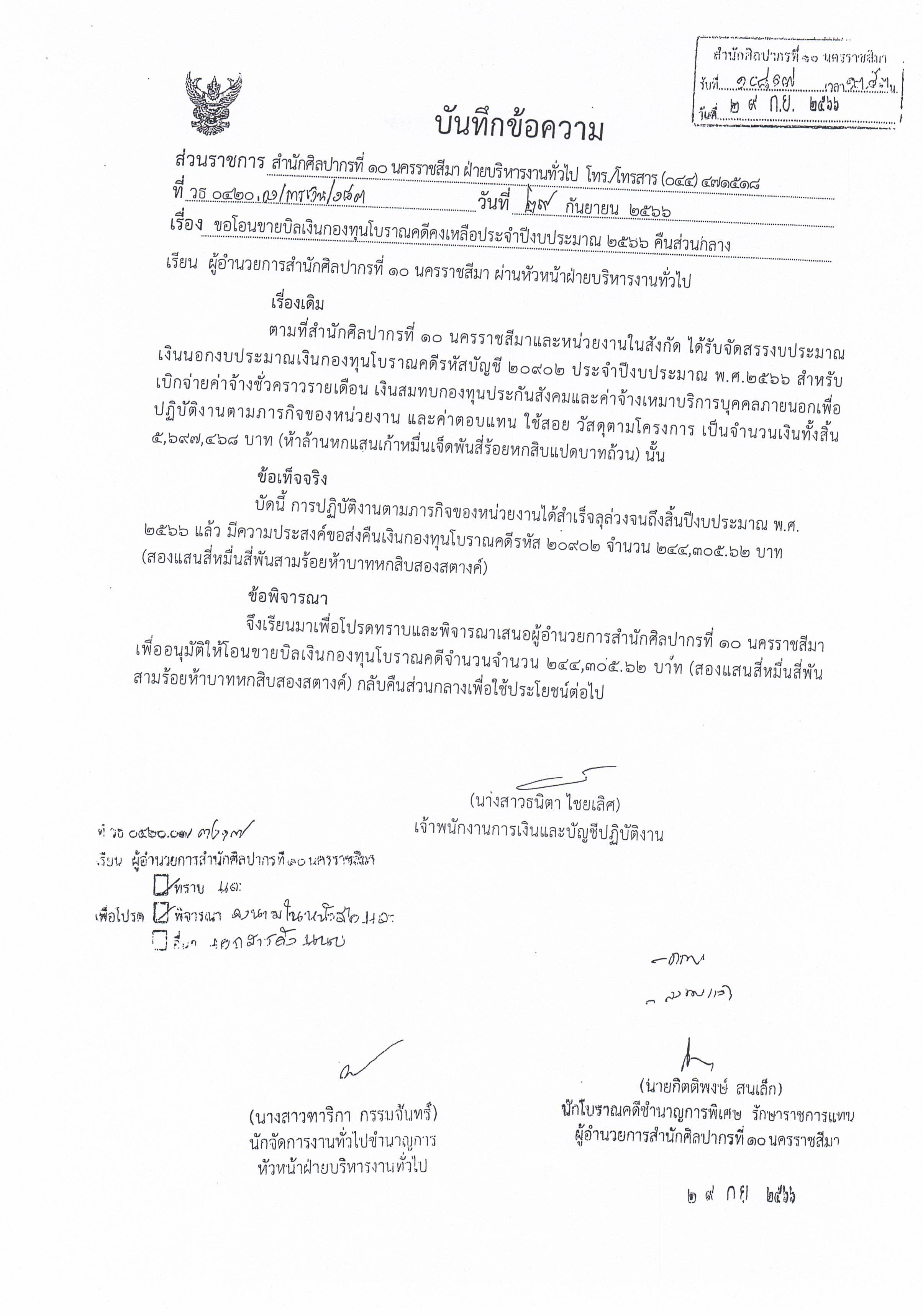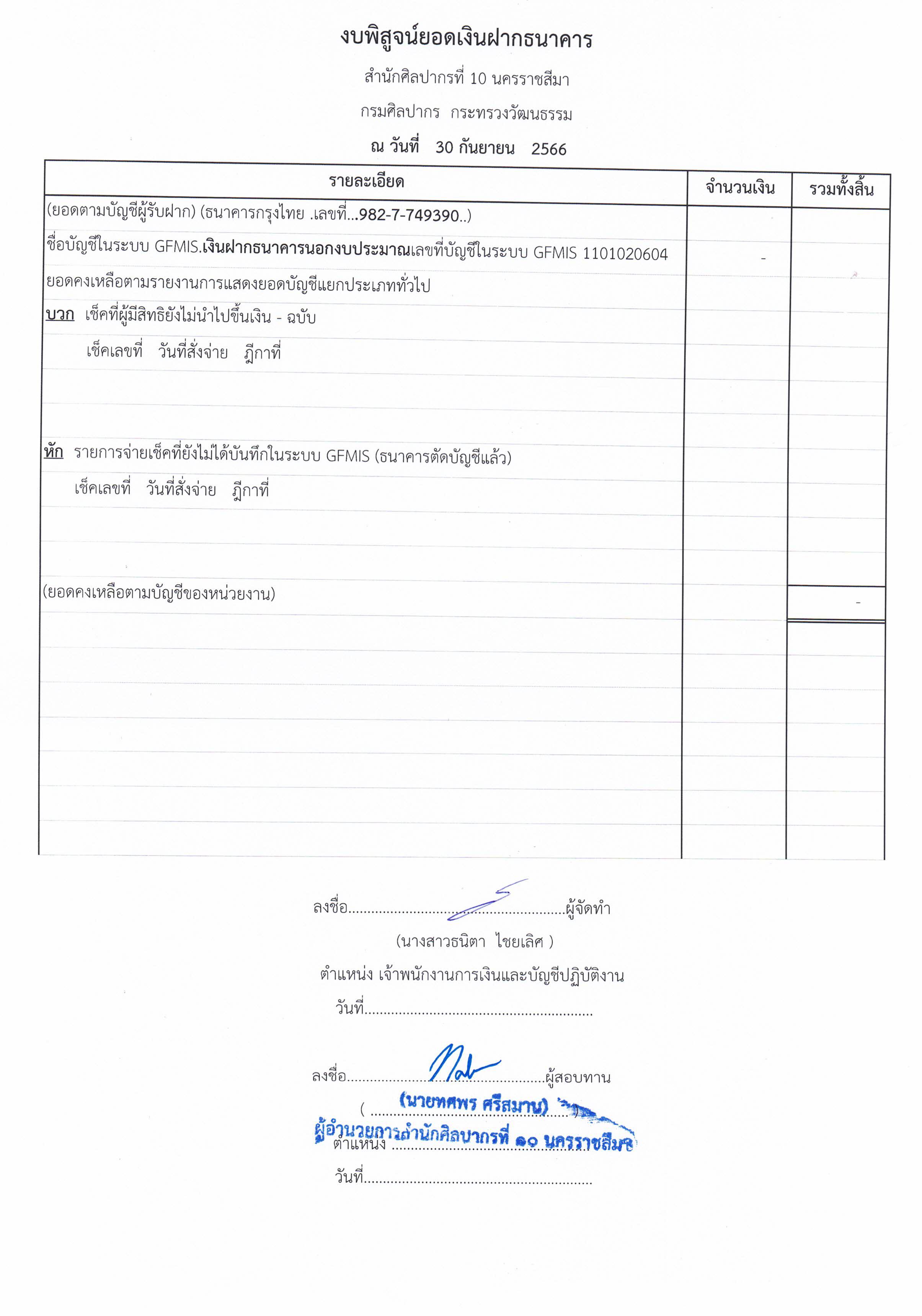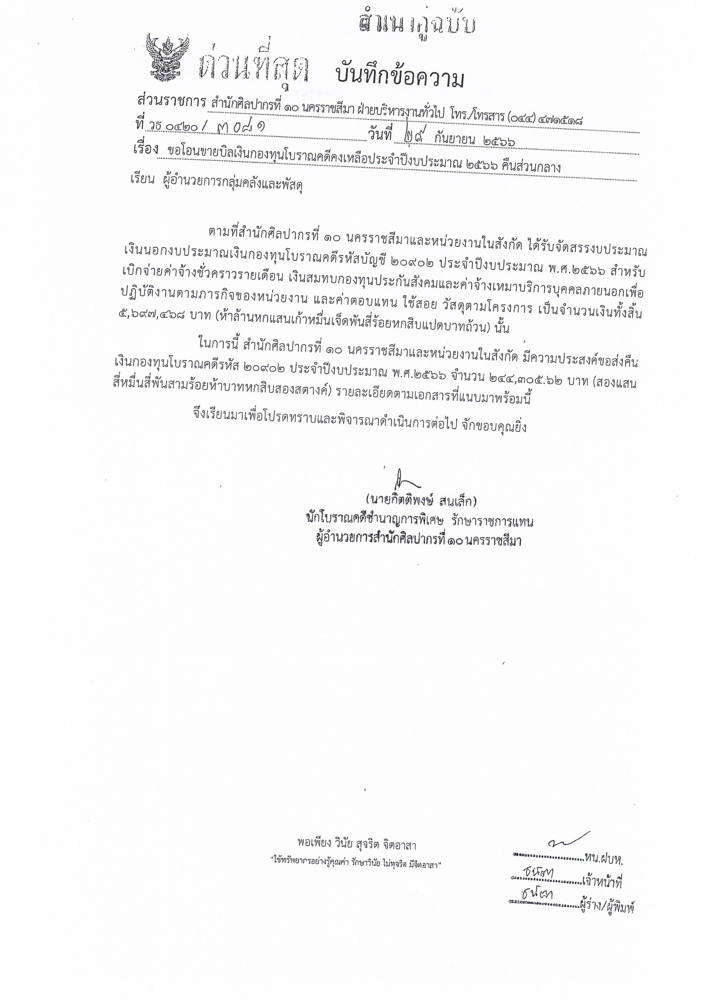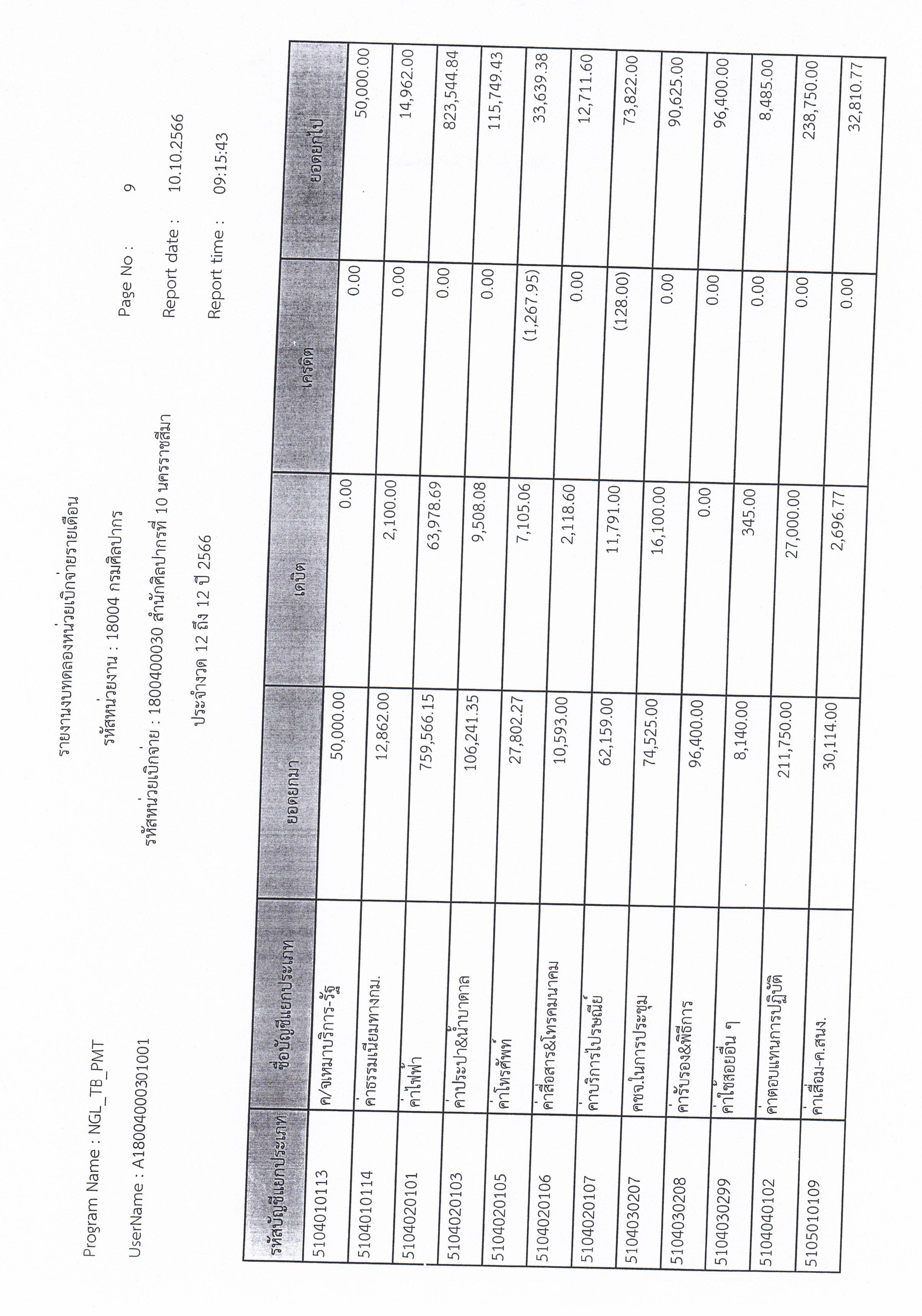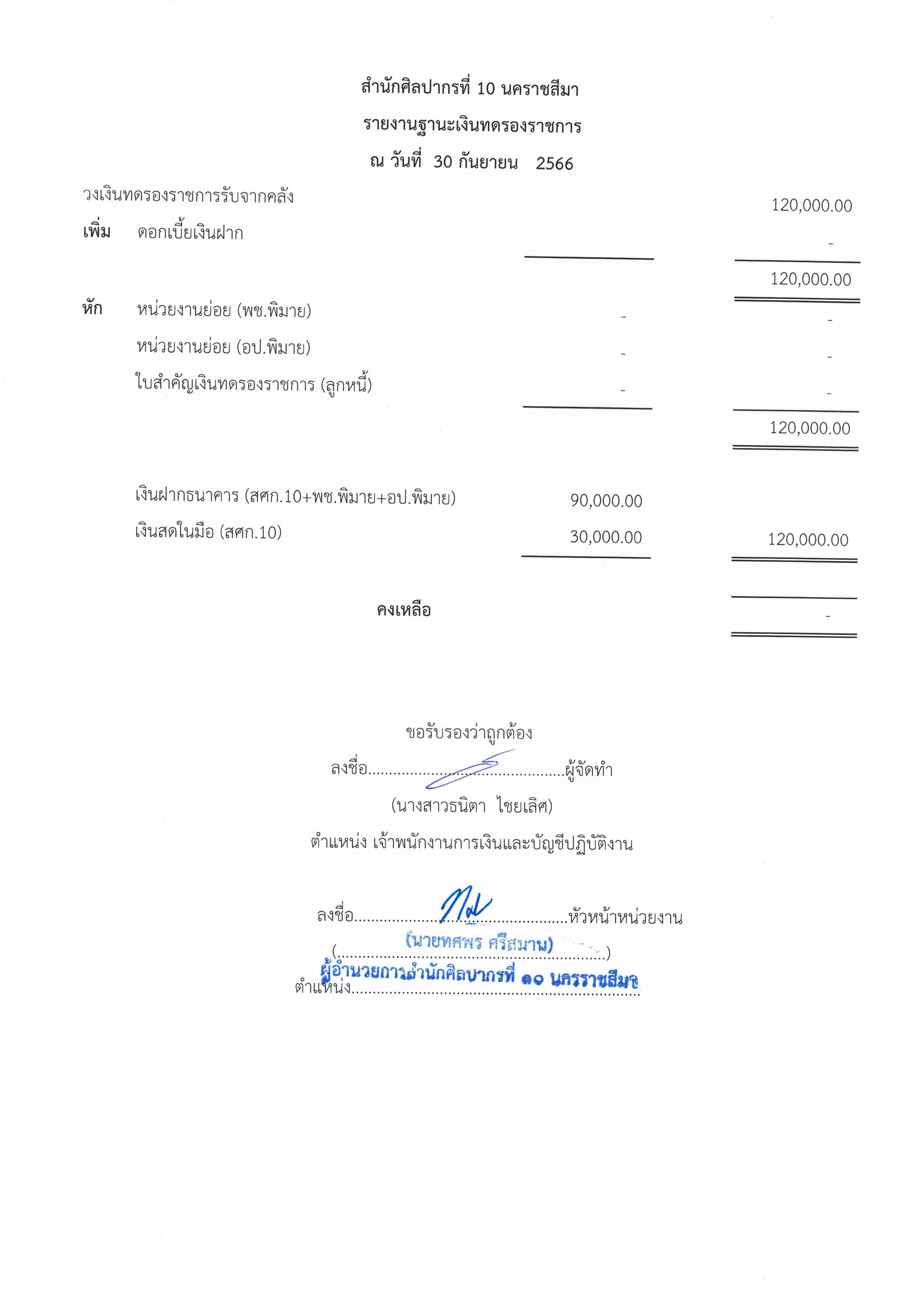 รายงานบัญชีงบทดลองและเอกสารประกอบงบทดลอง สำนักศิลปากรที่ ๑๐ นครราชสีมา (เดือนกันยายน ๒๕๖๖)