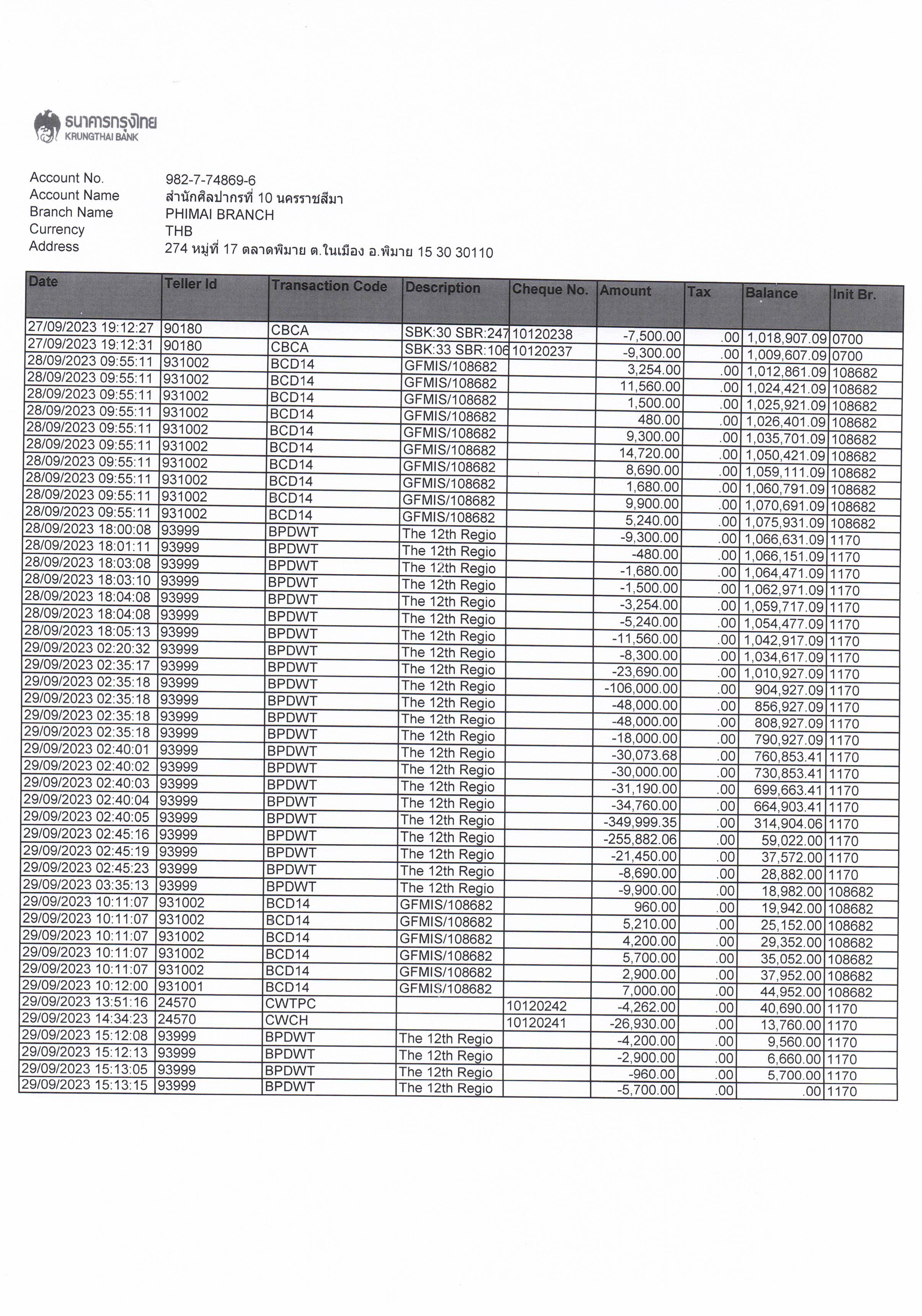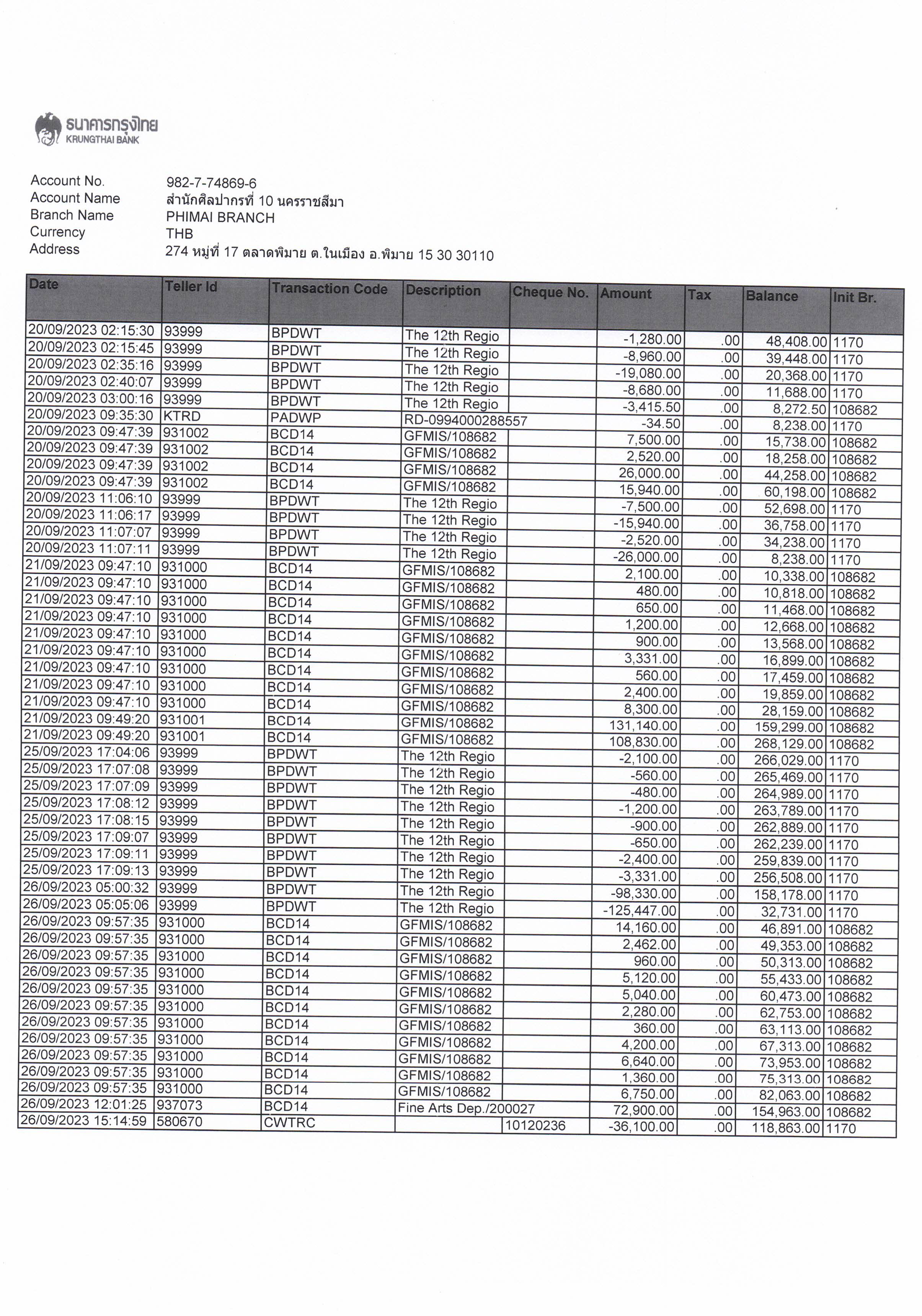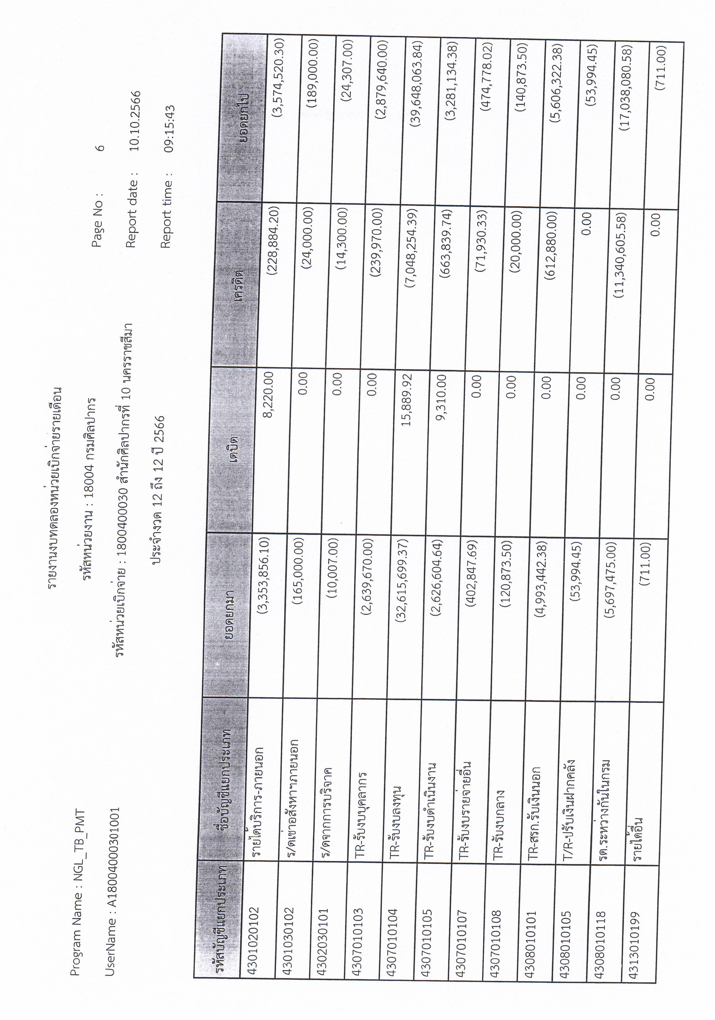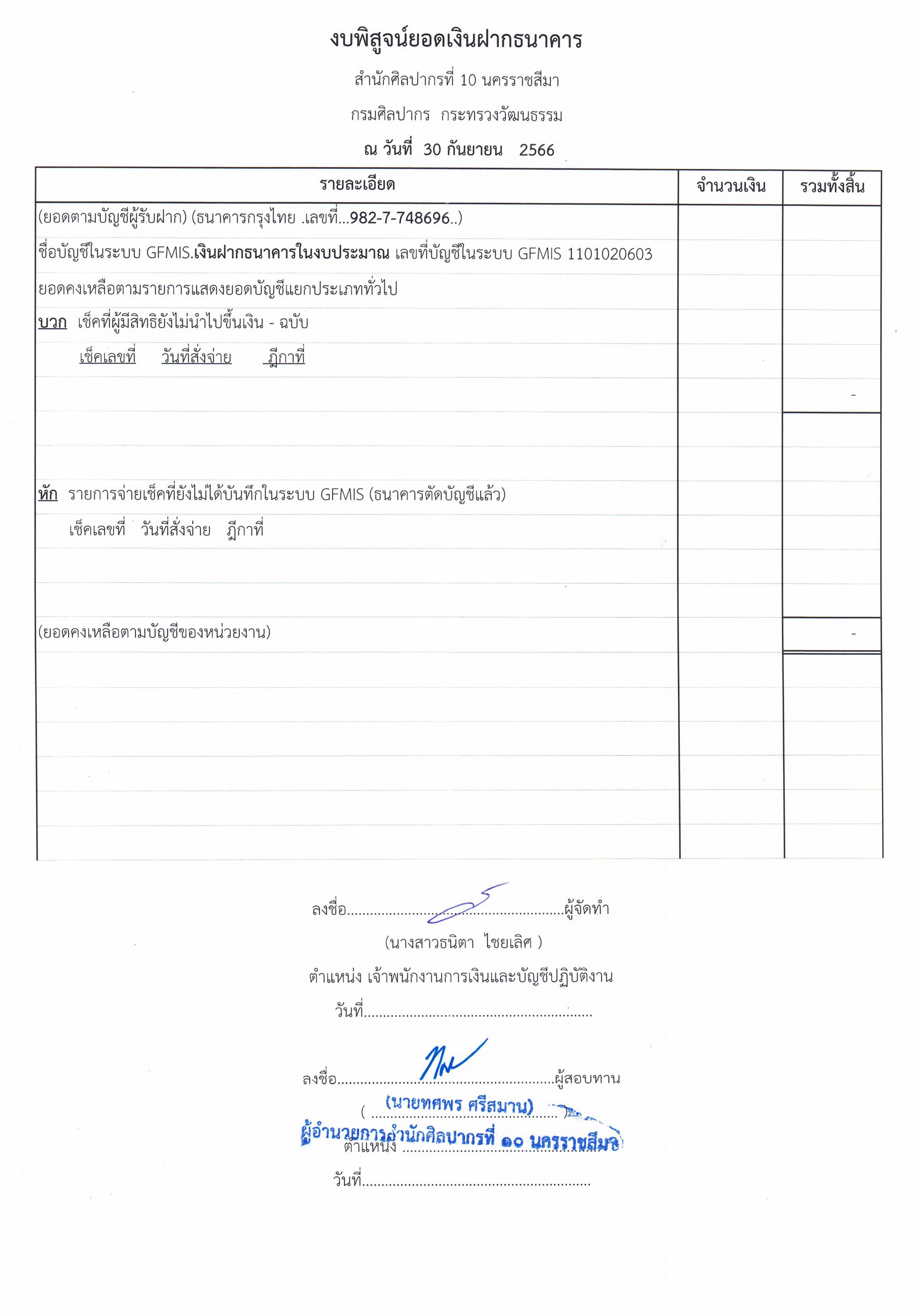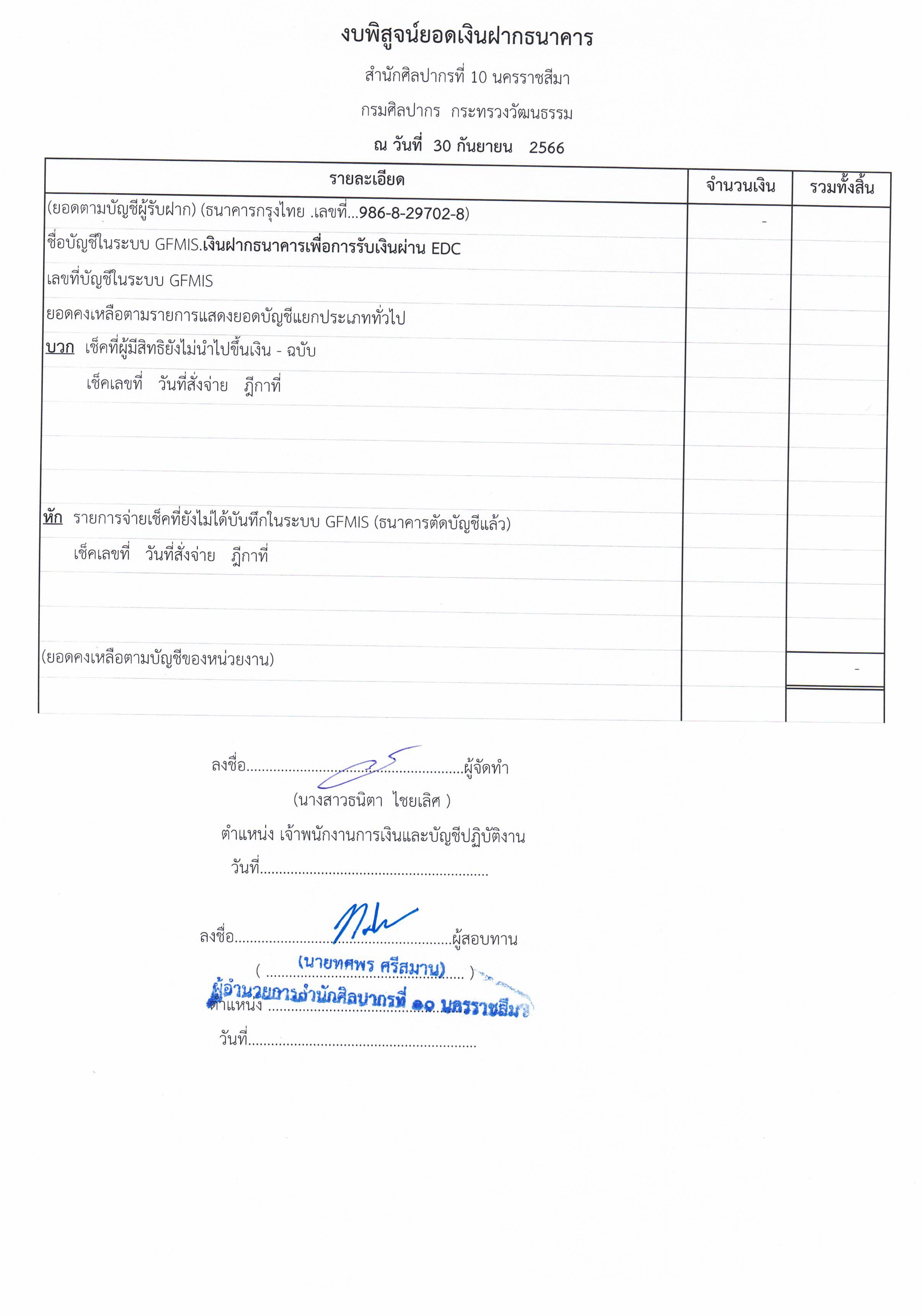 รายงานบัญชีงบทดลองและเอกสารประกอบงบทดลอง สำนักศิลปากรที่ ๑๐ นครราชสีมา (เดือนกันยายน ๒๕๖๖)