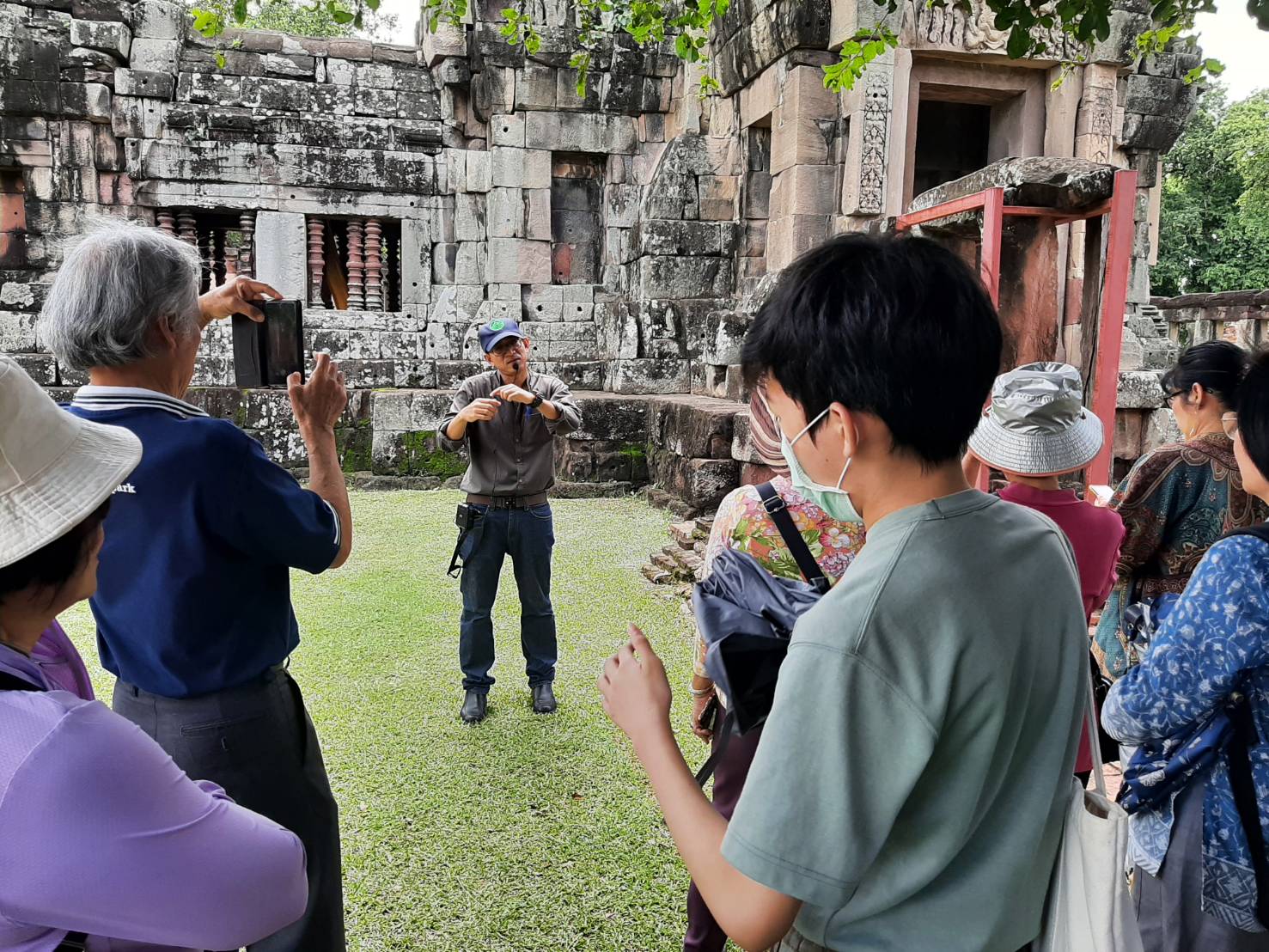 นายวีระชาติ พงค์ชนะ นักโบราณคดีชำนาญการ สำนักศิลปากรที่ ๑๐ นครราชสีมา เป็นวิทยากรนำชมโบราณสถานปราสาทพนมวัน ด้วยการท่องเที่ยวแห่งประเทศไทย (ททท.) ได้จัดกิจกรรม อ.ส.ท. ชวนเที่ยว “ขุนเขาโครงราช เมือง ๓ มรดกโลกยูเนสโก” (UNESCO Triple Heritage City) จังหวัดนครราชสีมา ระหว่างวันที่ ๑๓ - ๑๕ ตุลาคม ๒๕๖๖ ให้กับสมาชิกอนุสาร อ.ส.ท. ณ ปราสาทหินพนมวัน ตำบลบ้านโพธิ์ อำเภอเมืองนครราชสีมา จังหวัดนครราชสีมา โดยบรรยายให้กับคณะนักท่องเที่ยว จำนวน ๕๐ คน ในวันเสาร์ที่ ๑๔ ตุลาคม ๒๕๖๖