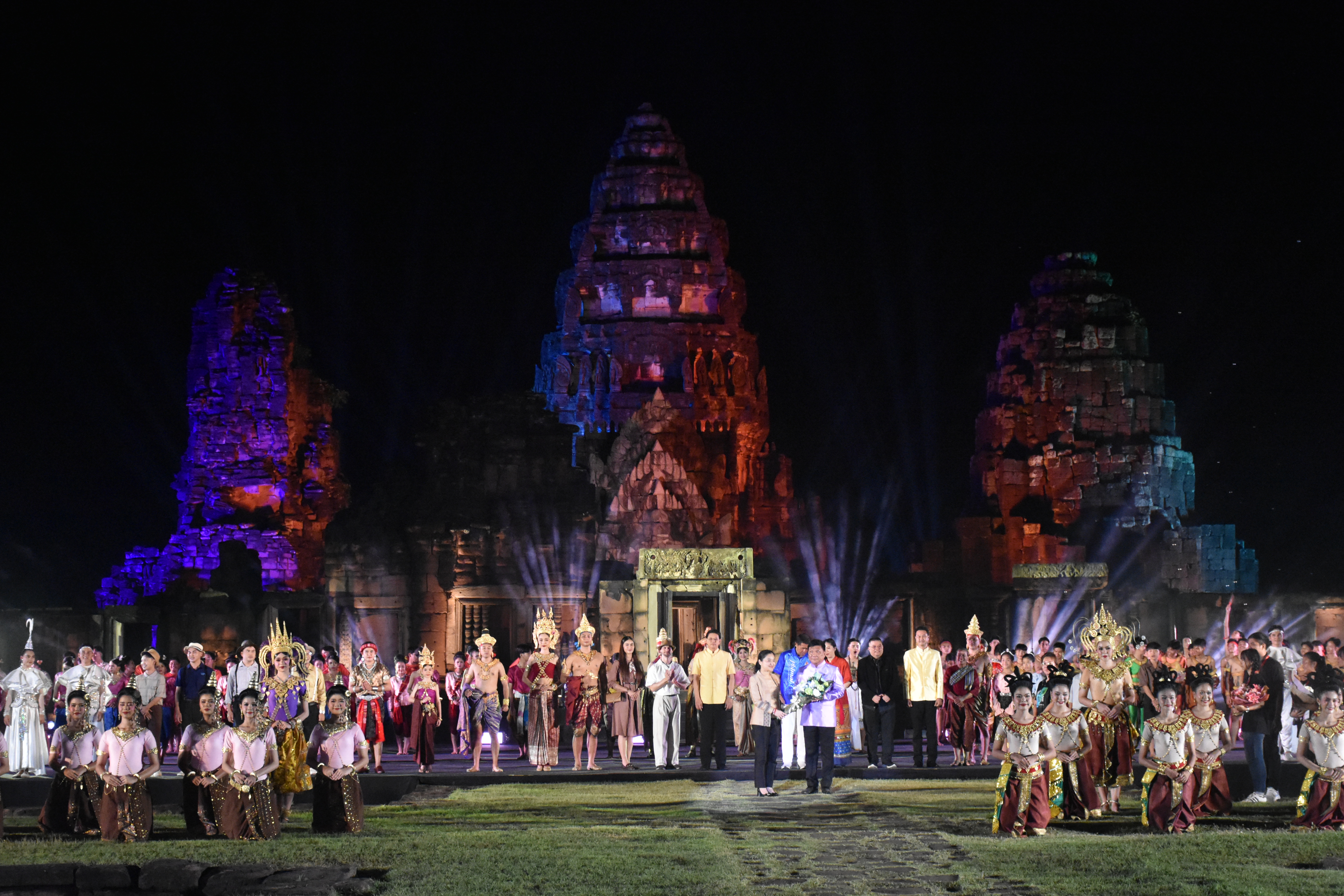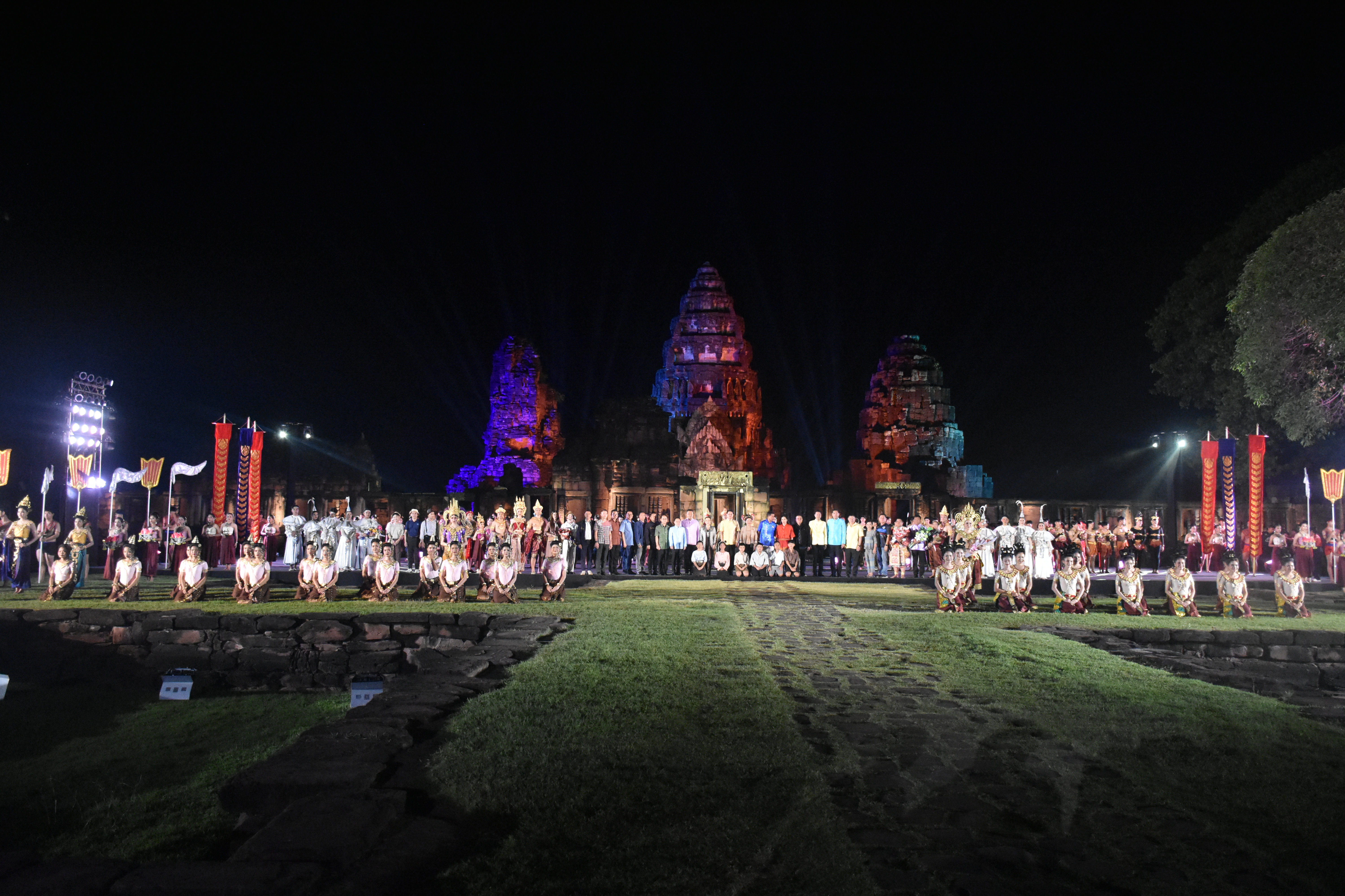 างสาวสุดาวรรณ หวังศุภกิจโกศล รัฐมนตรีว่าการกระทรวงการท่องเที่ยวและกีฬา เข้าชมการแสดงแสง สี เสียง "ศรัทธาเมืองพิมาย" งานเทศกาลเที่ยวพิมาย นครราชสีมา ประจำปี 2566