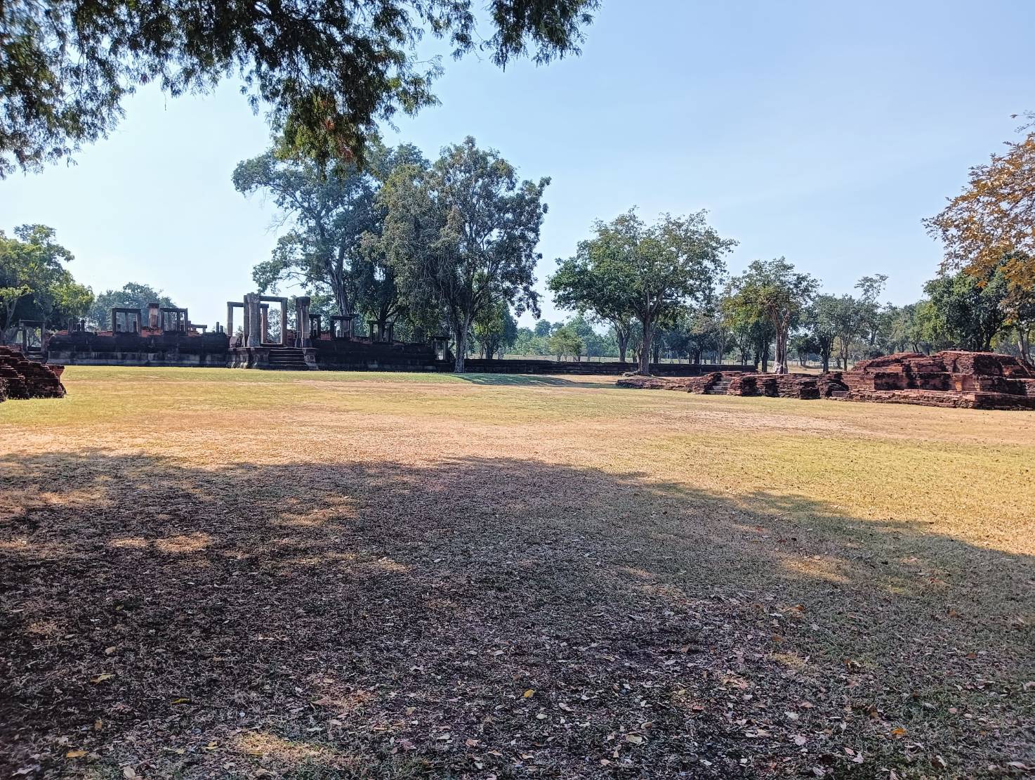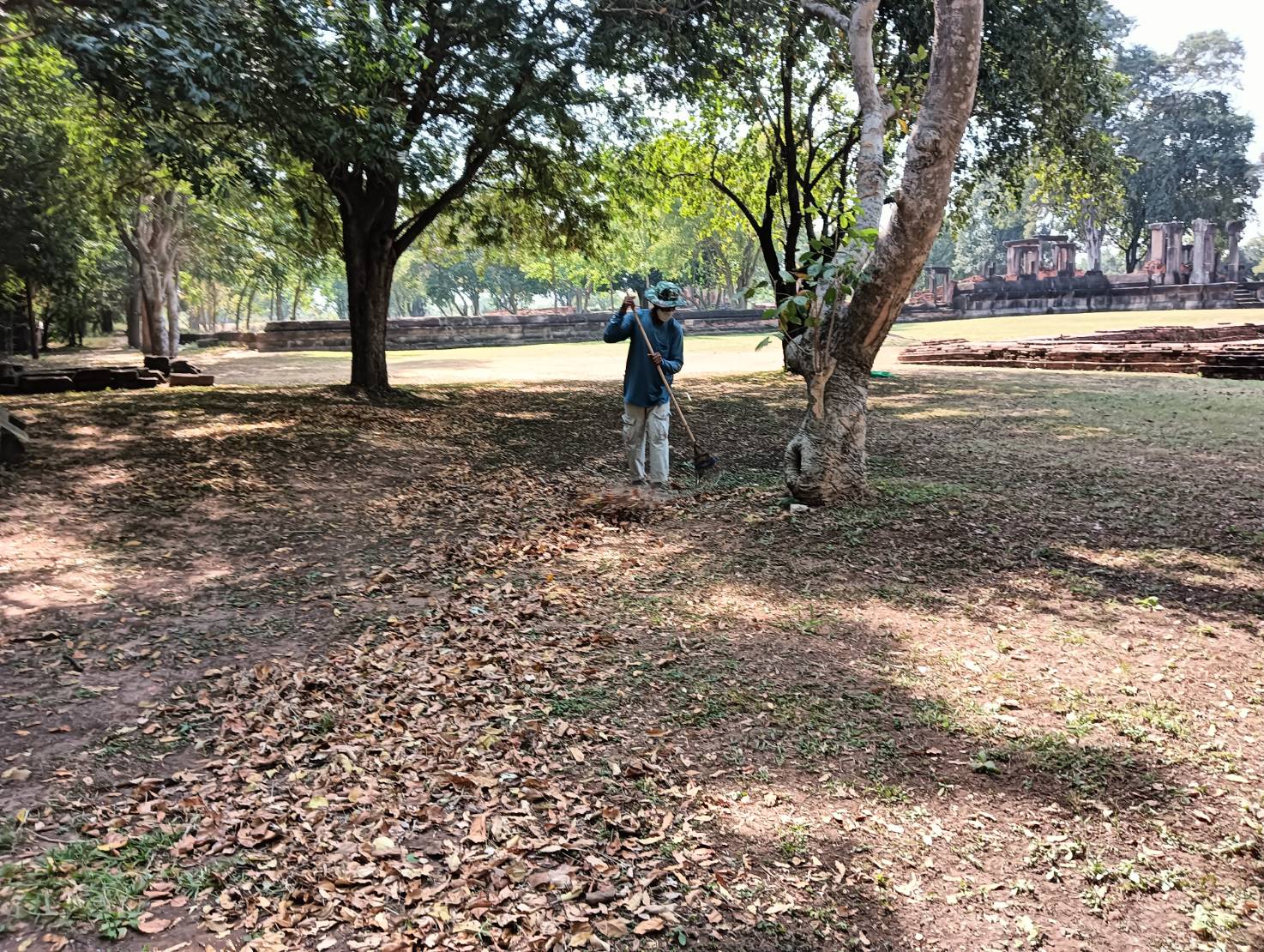 การดำเนินงานถากถางกำจัดวัชพืชบริเวณโดยรอบโบราณสถานปราสาทเมืองแขก ตำบลโคราช อำเภอสูงเนิน จังหวัดนครราชสีมา ในวันอังคารที่ ๑๒ ธันวาคม ๒๕๖๖