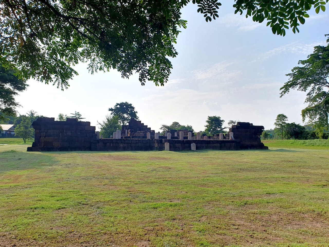 กำแพงแก้ว ก่อด้วยศิลาแลง สร้างต่อเนื่องจากโคปุระด้านทิศตะวันออก และทิศตะวันตก ล้อมรอบศาสนสถาน