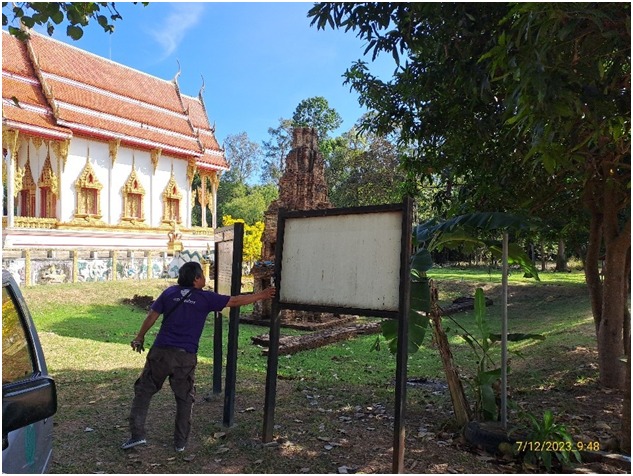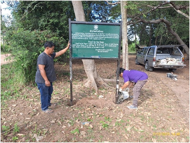 กลุ่มอนุรักษ์โบราณสถาน สำนักศิลปากรที่ ๑๐ นครราชสีมา ลงพื้นที่ดำเนินงานติดตั้งป้ายประวัติโบราณสถาน (ที่เก็บมาแก้ไข)