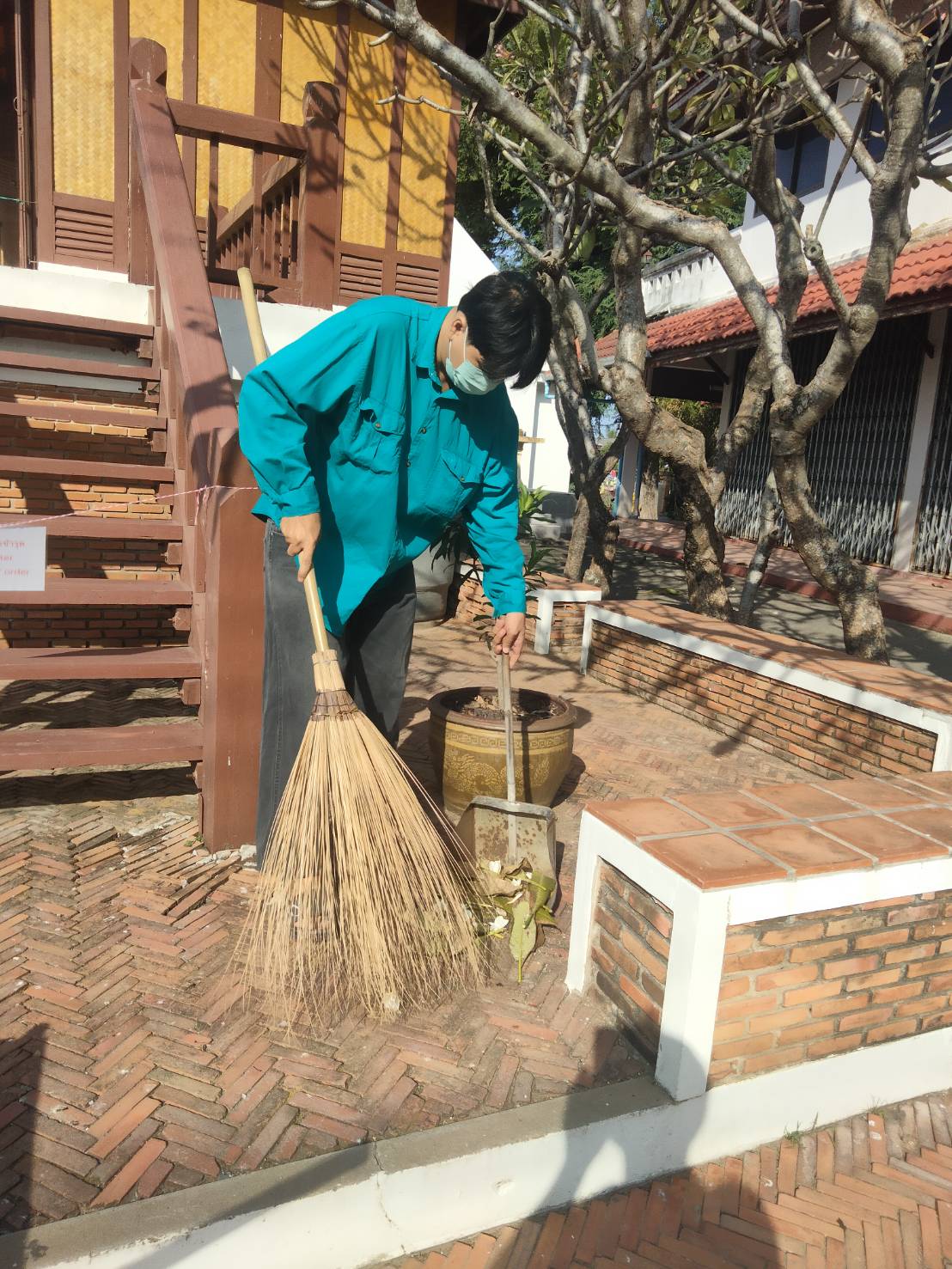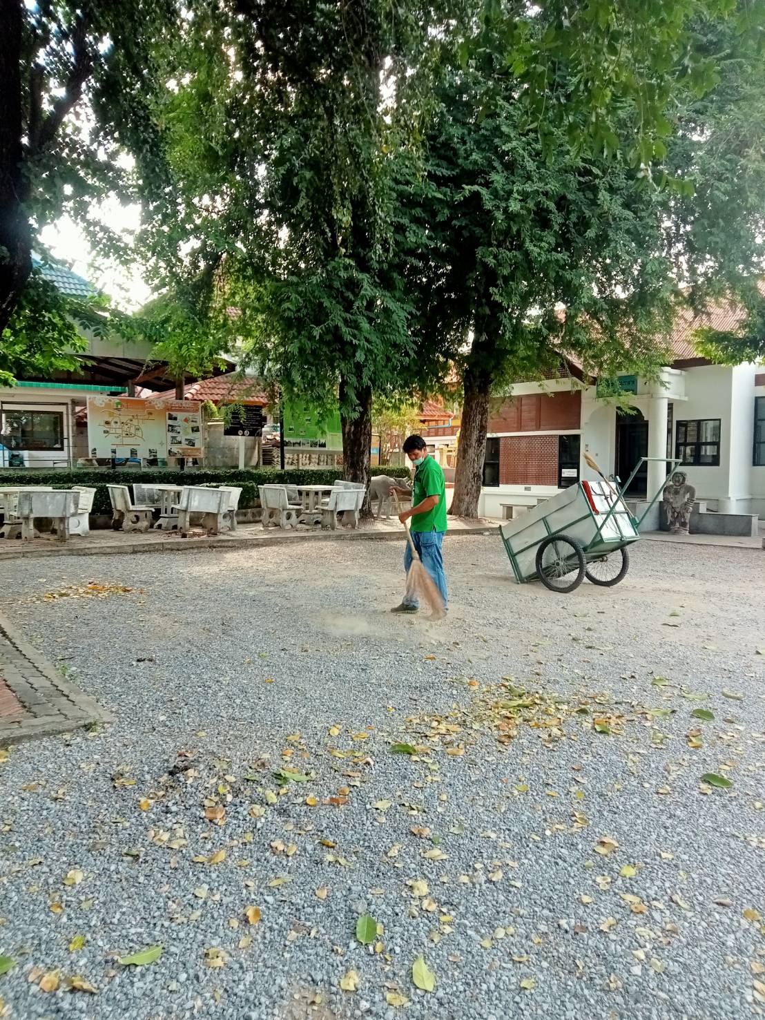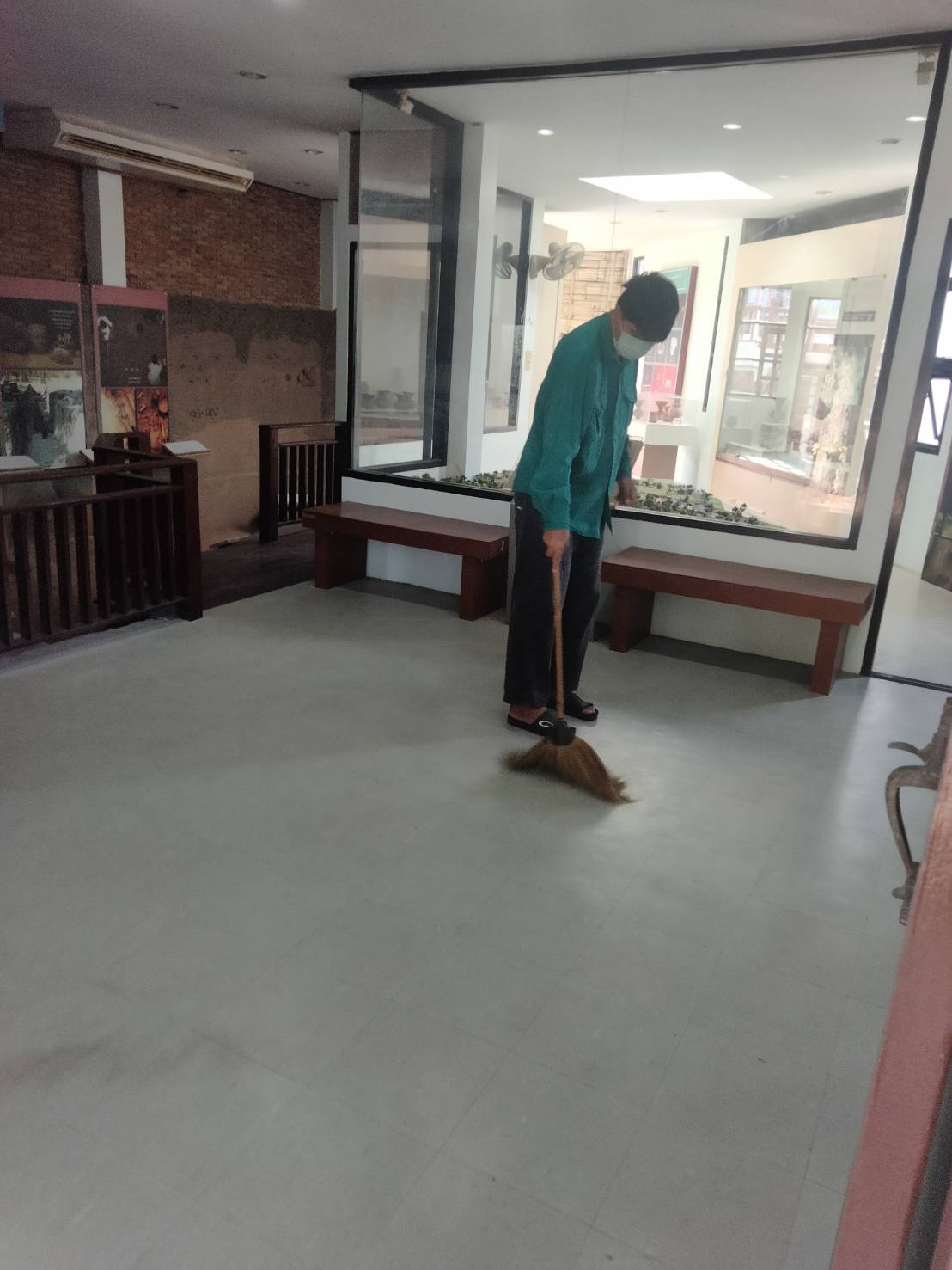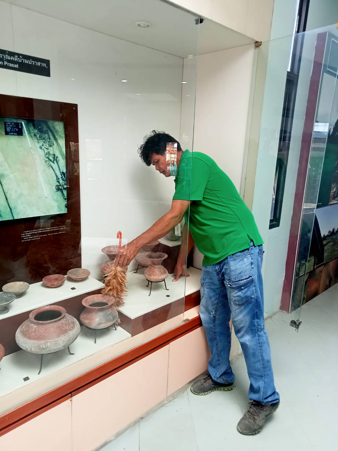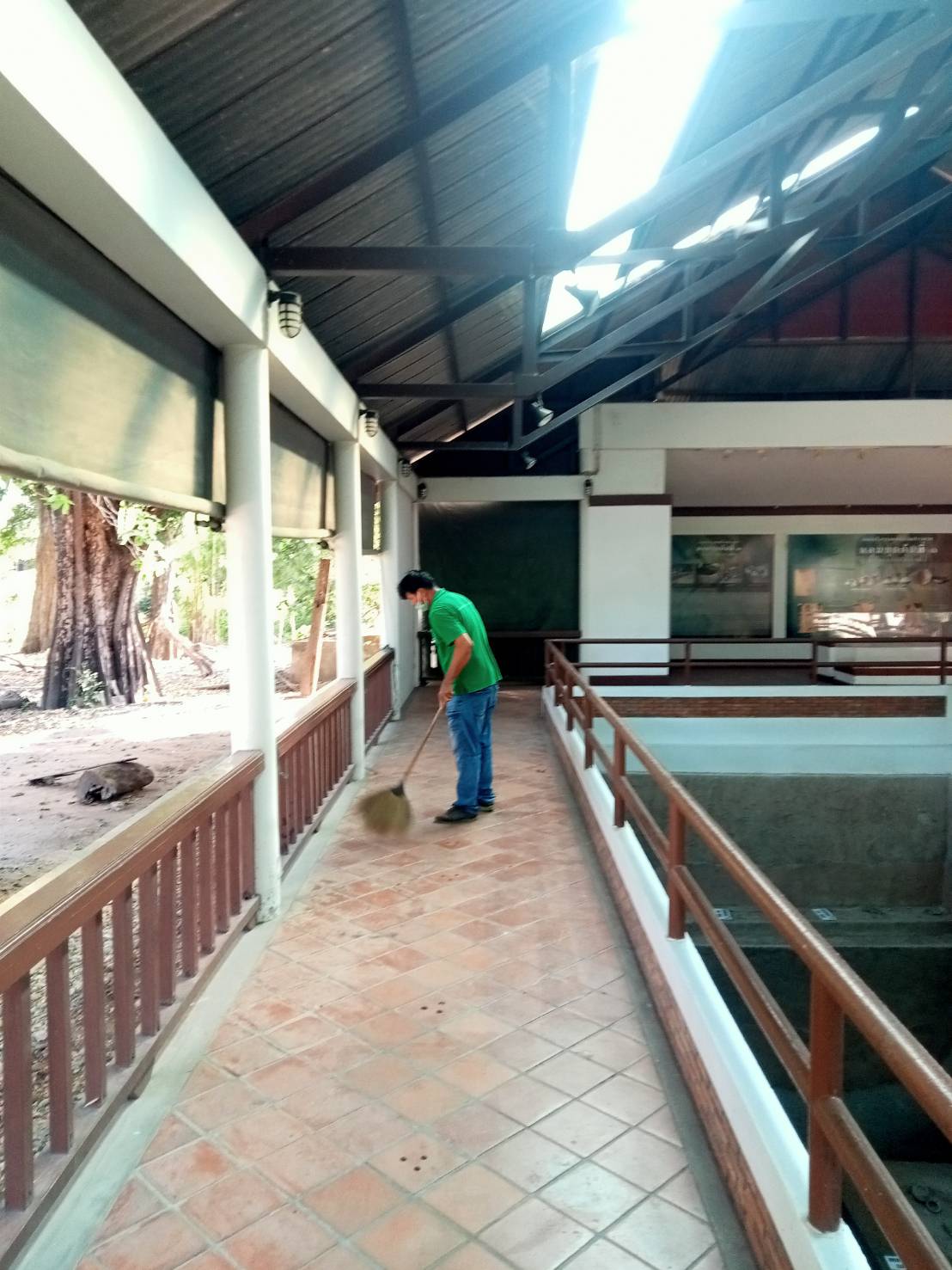 การดำเนินงานทำความสะอาดและดูแลความเรียบร้อยบริเวณพื้นที่อาคารจัดแสดงและหลุมขุดค้นทางโบราณคดี แหล่งโบราณคดีบ้านปราสาท ตำบลธารปราสาท อำเภอโนนสูง จังหวัดนครราชสีมา ในวันพฤหัสบดีที่ ๑๔ ธันวาคม ๒๕๖๖