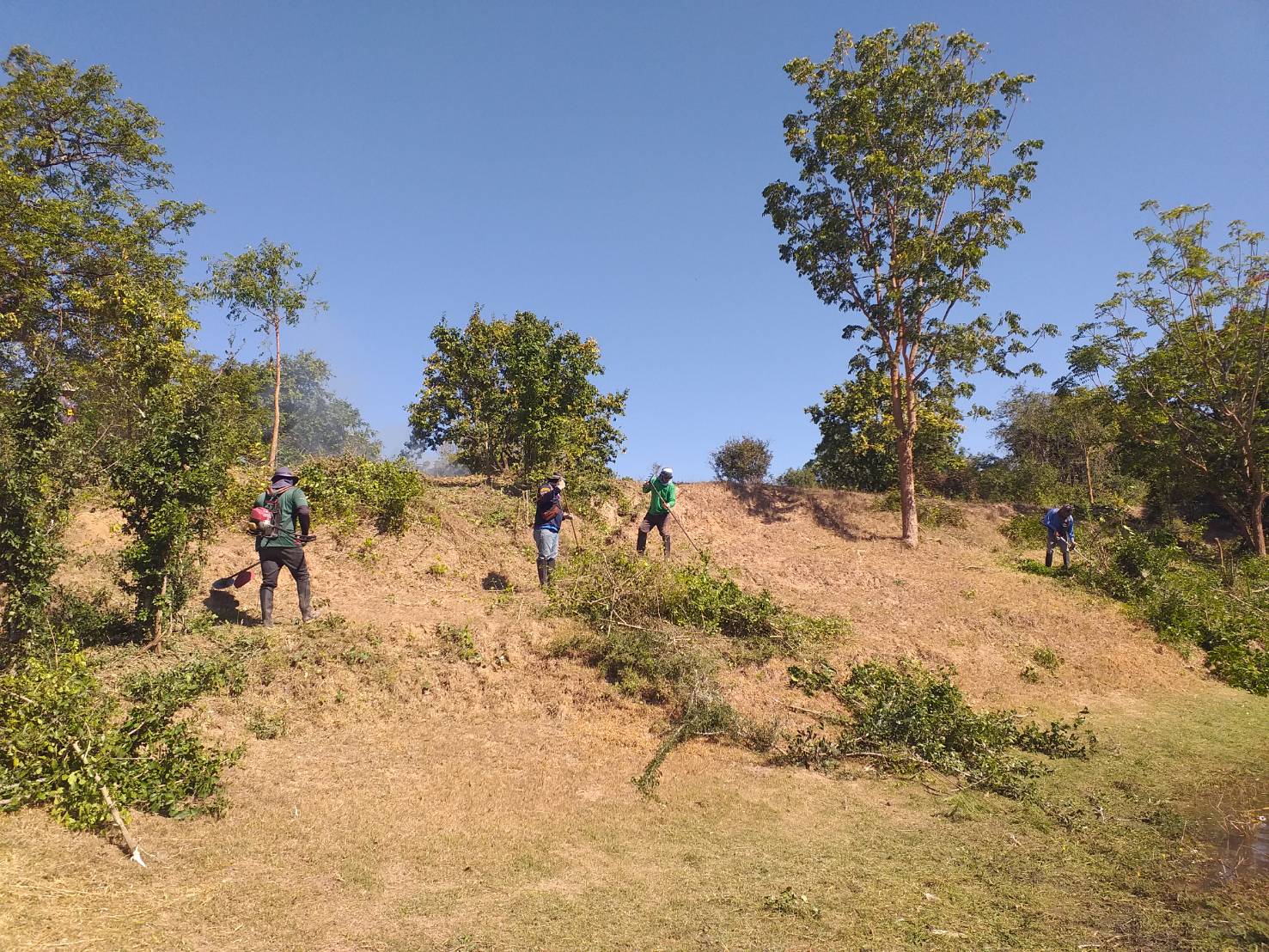 เจ้าหน้าที่สำนักศิลปากรที่ ๑๐ นครราชสีมา ลงพื้นที่ดำเนินงานถากถางกำจัดวัชพืช ทำความสะอาดบริเวณโดยรอบคูน้ำคันดินโบราณสถานเมืองเสมา ตำบลเสมา อำเภอสูงเนิน จังหวัดนครราชสีมา