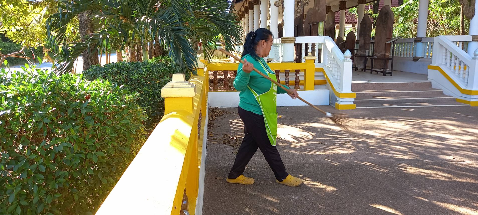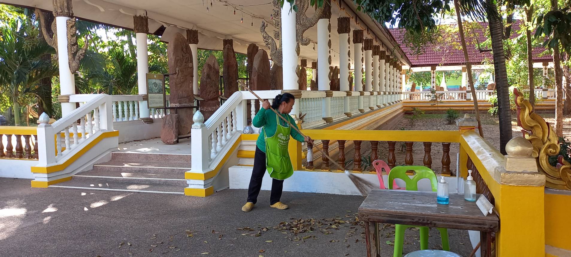 การดำเนินงานทำความสะอาดและดูแลความเรียบร้อยอาคารคลุมใบเสมาคอนสวรรค์ ตำบลคอนสวรรค์ อำเภอคอนสวรรค์ จังหวัดชัยภูมิ ในวันพุธที่ ๒๐ ธันวาคม ๒๕๖๖