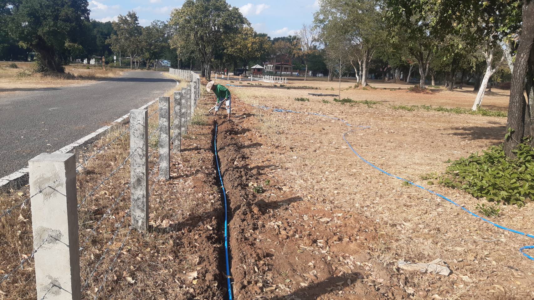 การดำเนินงานติดตั้งระบบท่อประปาภายในเขตโบราณสถานปราสาทเมืองแขก ตำบลโคราช อำเภอสูงเนิน จังหวัดนครราชสีมา เมื่อวันที่ ๒-๕ มกราคม ๒๕๖๗