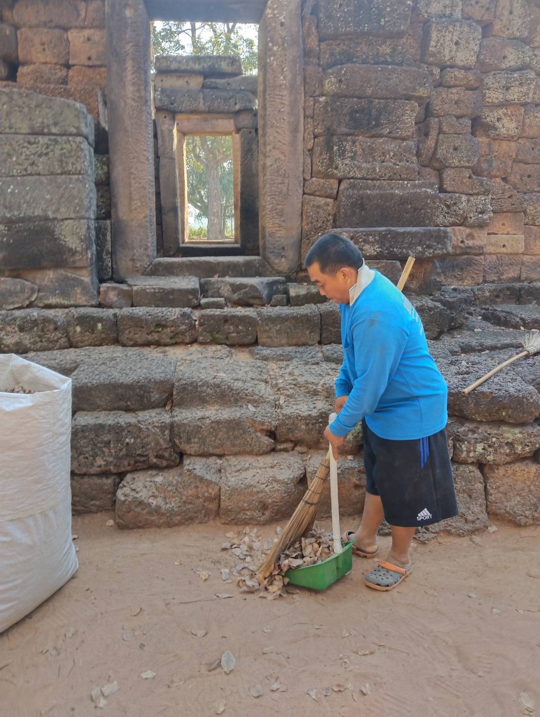 การดำเนินงานทำความสะอาดและดูแลความเรียบร้อยบริเวณพื้นที่โบราณสถานปรางค์ครบุรี อำเภอครบุรี จังหวัดนครราชสีมา ในวันพฤหัสบดีที่ ๑๑ มกราคม ๒๕๖๗