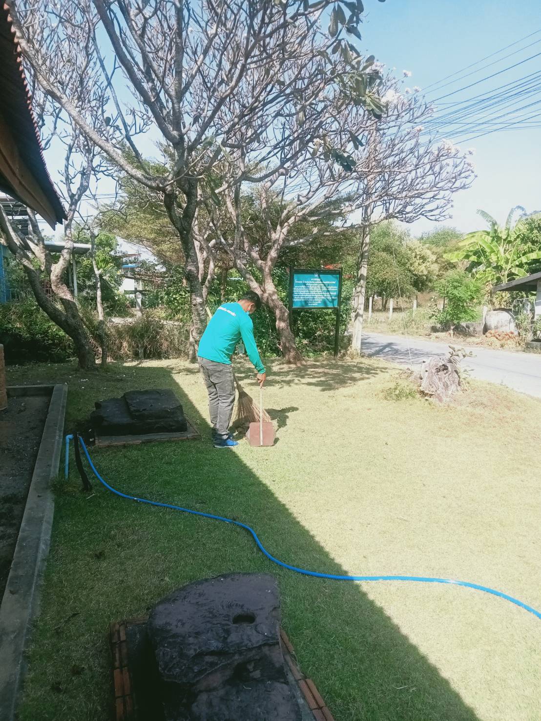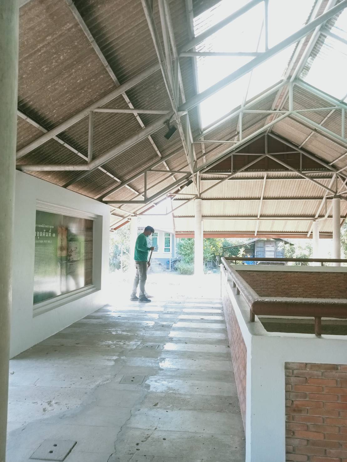 การดำเนินงานทำความสะอาดและดูแลความเรียบร้อยบริเวณพื้นที่อาคารจัดแสดงและหลุมขุดค้นทางโบราณคดี แหล่งโบราณคดีบ้านปราสาท ตำบลธารปราสาท อำเภอโนนสูง จังหวัดนครราชสีมา ในวันพฤหัสบดีที่ ๑๑ มกราคม ๒๕๖๗