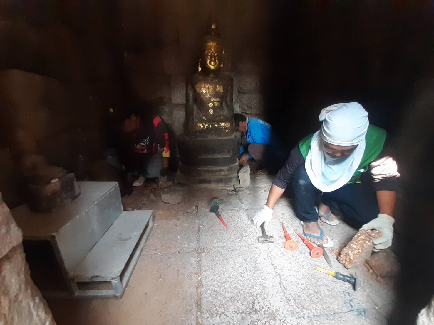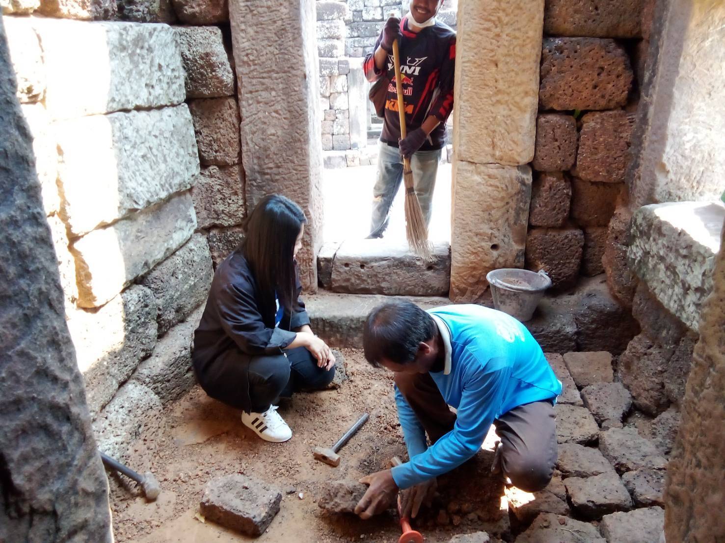 - ดำเนินการวัดขนาดพื้นที่ ช่องว่างที่จะดำเนินการเสริมศิลาแลง
