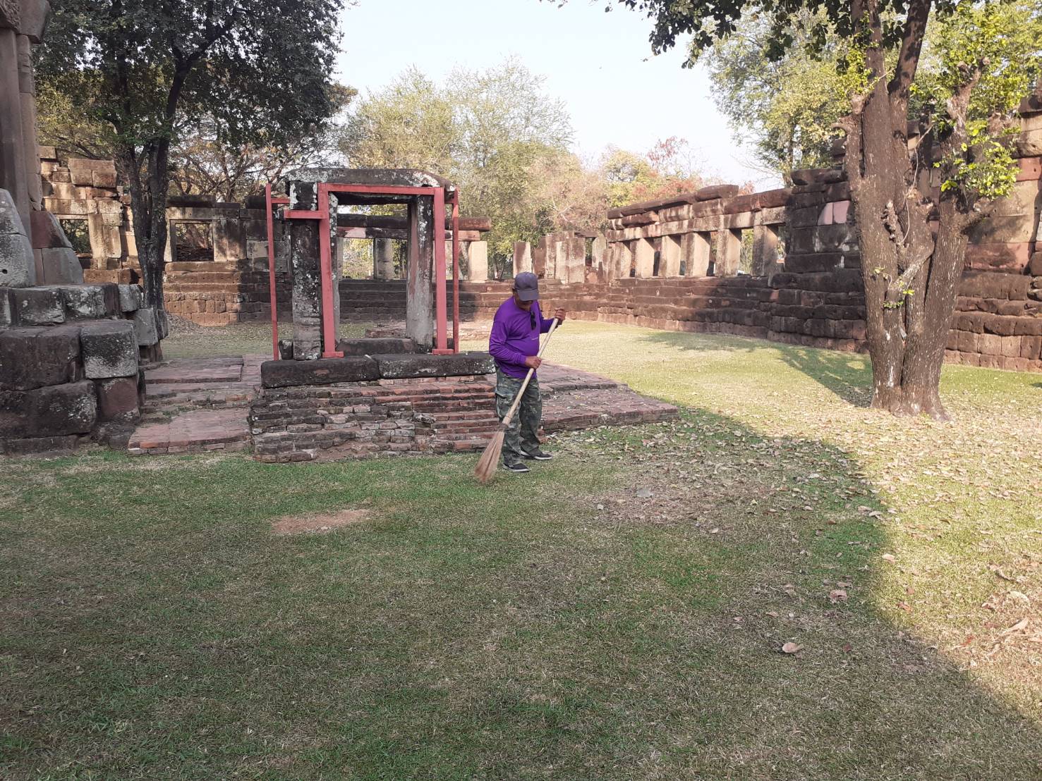 การดำเนินงานถากถางกำจัดวัชพืช ดูแลความเรียบร้อยโบราณสถานปราสาทพนมวัน และสระน้ำโบราณ(สระเพลง) อำเภอเมืองนครราชสีมา จังหวัดนครราชสีมา วันพุธที่ ๗ กุมภาพันธ์ ๒๕๖๗