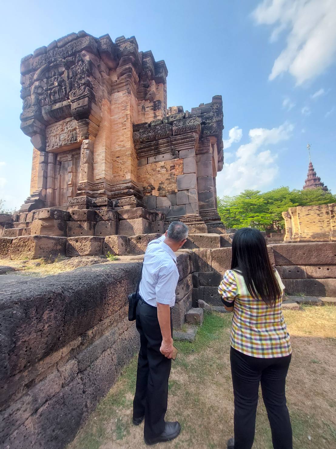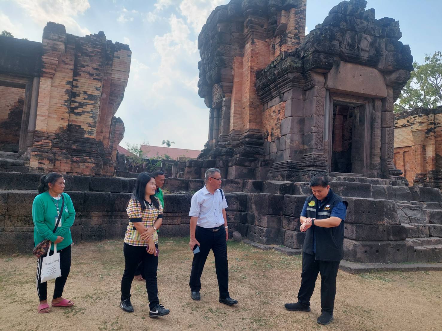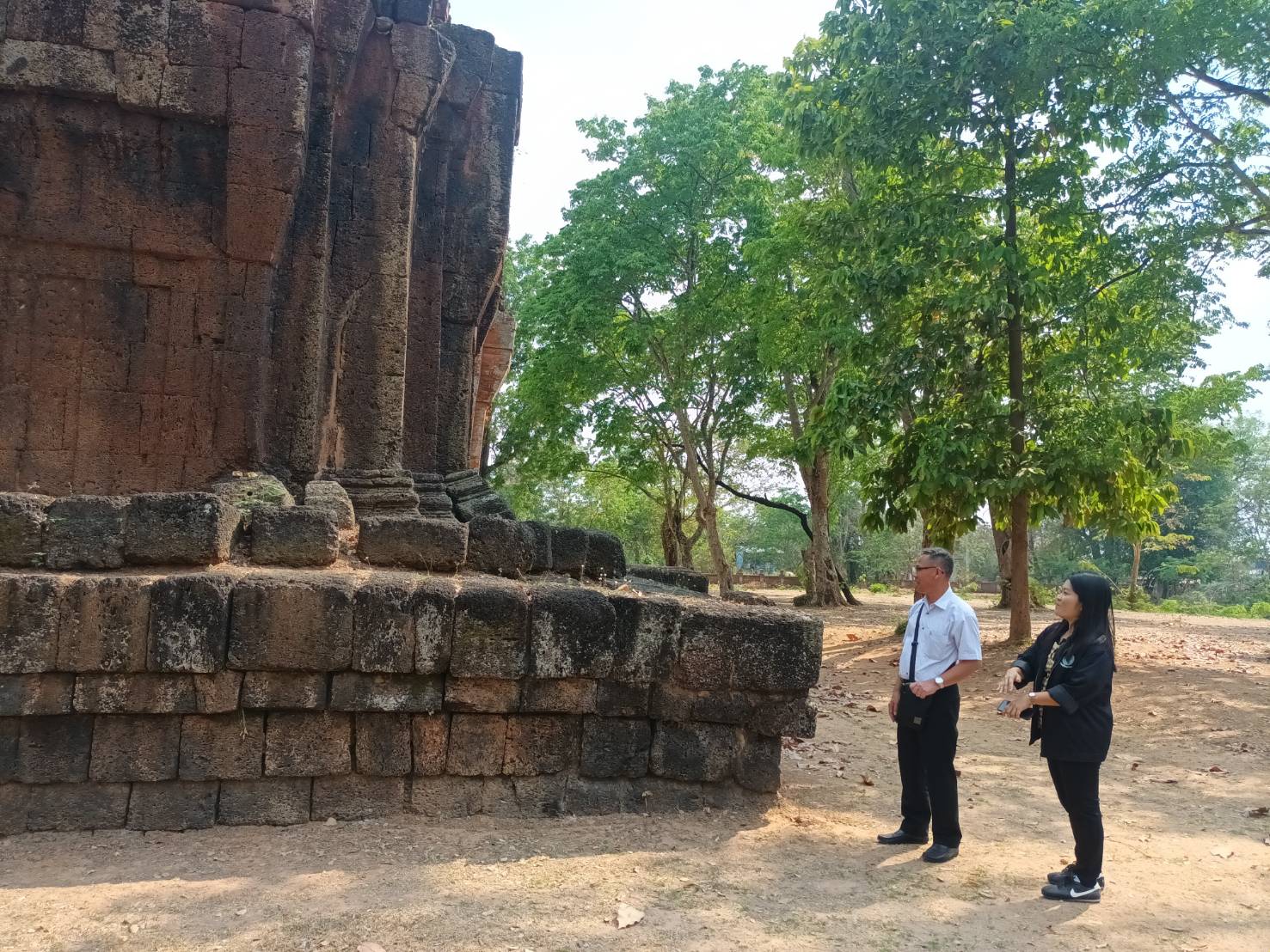 วันจันทร์ที่ ๔ มีนาคม ๒๕๖๗ นายกิตติพันธ์ พานสุวรรณ (อดีตอธิบดีกรมศิลปากร) ที่ปรึกษาอธิบดีกรมศิลปากร พร้อมด้วยนายทศพร ศรีสมาน ผู้อำนวยการสำนักศิลปากรที่ ๑๐ นครราชสีมา และนางสาวนิตยา สาระรัตน์ นายช่างศิลปกรรมอาวุโส รักษาการในตำแหน่งผู้อำนวยการกลุ่มอนุรักษ์โบราณสถาน ลงพื้นที่ชี้แจงการขออนุญาตก่อสร้างสิ่งปลูกสร้างในเขตโบราณสถานปราสาทภูฝ้าย ตำบลภูฝ้าย อำเภอขุนหาญ จังหวัดศรีสะเกษ พร้อมทั้งตรวจเยี่ยมโบราณสถานปรางค์กู่ อำเภอปรางค์กู่ และปราสาทสระกำแพงใหญ่ อำเภออุทุมพรพิสัย จังหวัดศรีสะเกษ