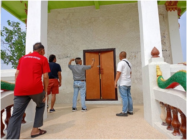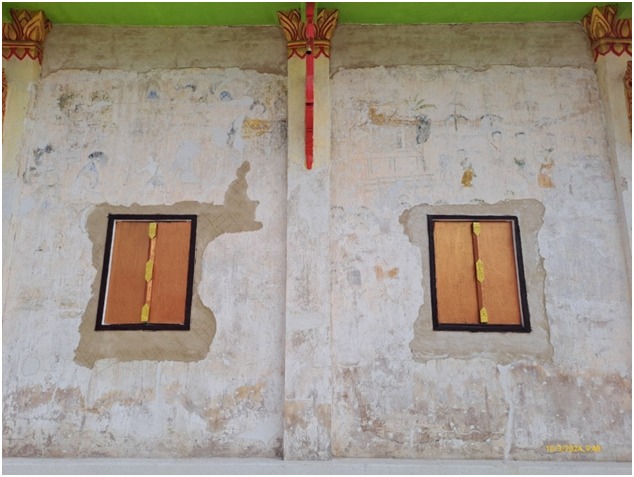 กลุ่มอนุรักษ์โบราณสถาน ลงพื้นที่เพื่อทำความเข้าใจกับวัดและชุมชน ในการอนุรักษ์จิตรกรรมฝาผนังอุโบสถวัดสุทธิวนาราม(หนองฉิม) ตำบลหนองฉิม อำเภอเนินสง่า จังหวัดชัยภูมิ ระยะที่ ๒