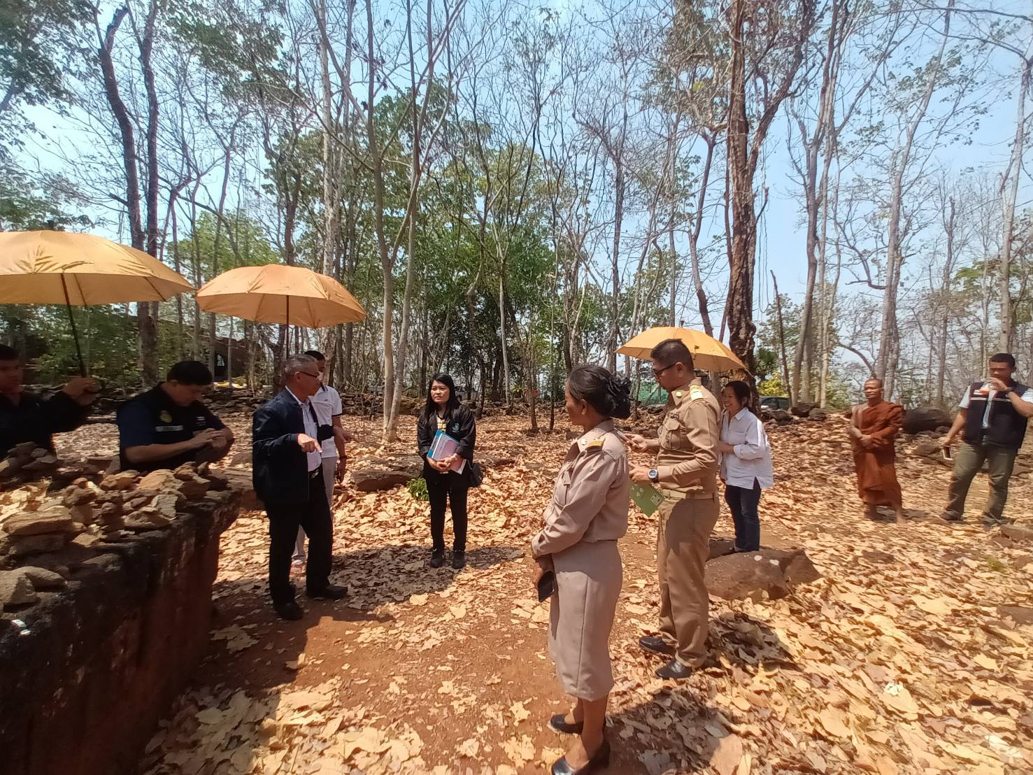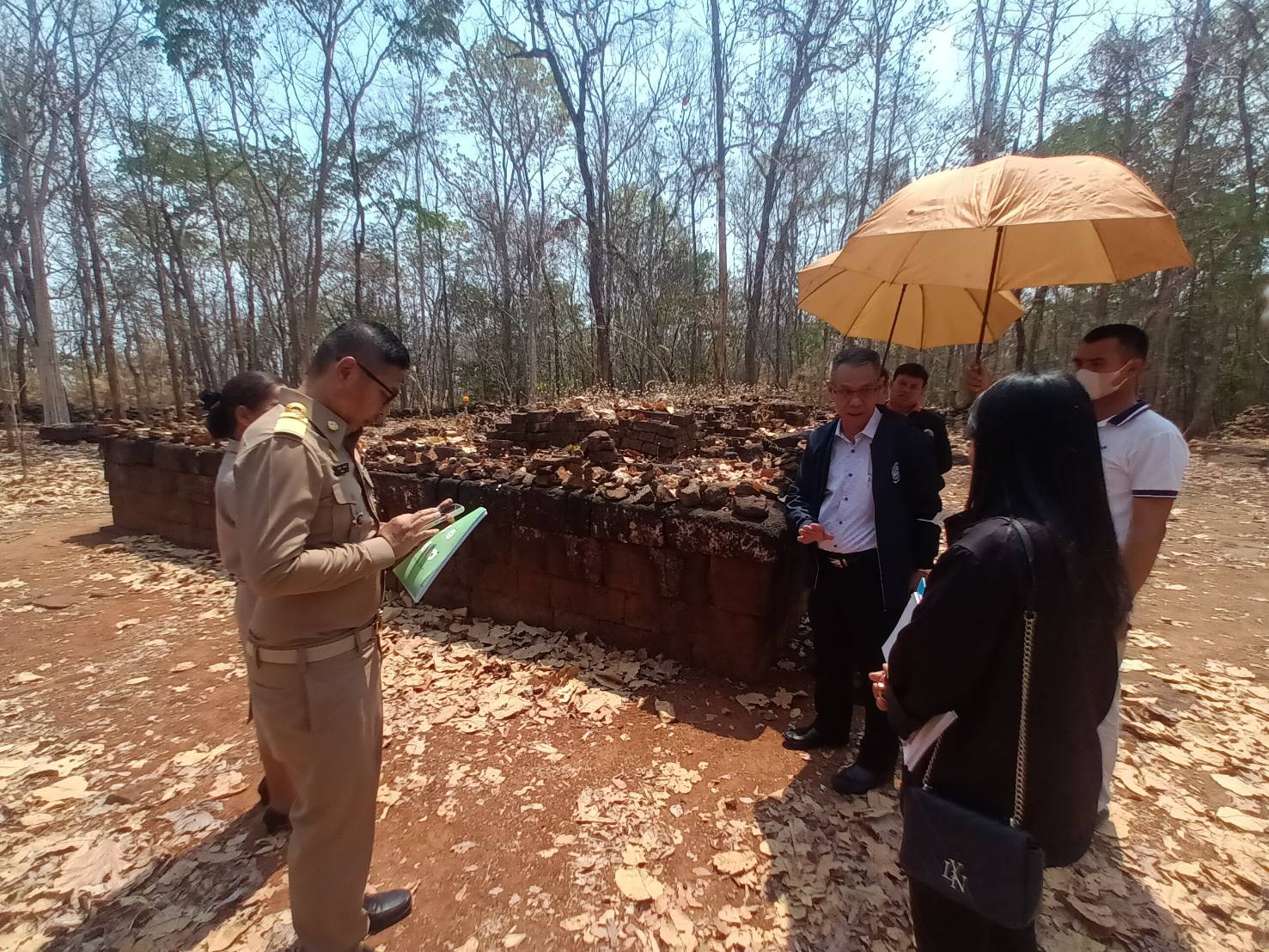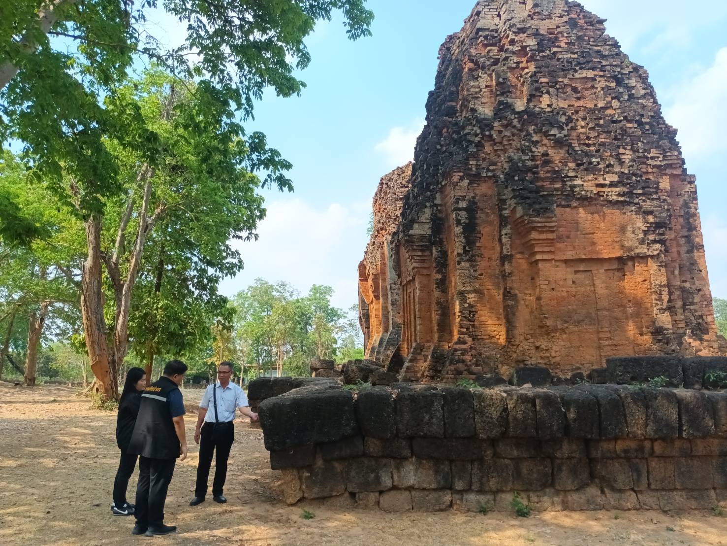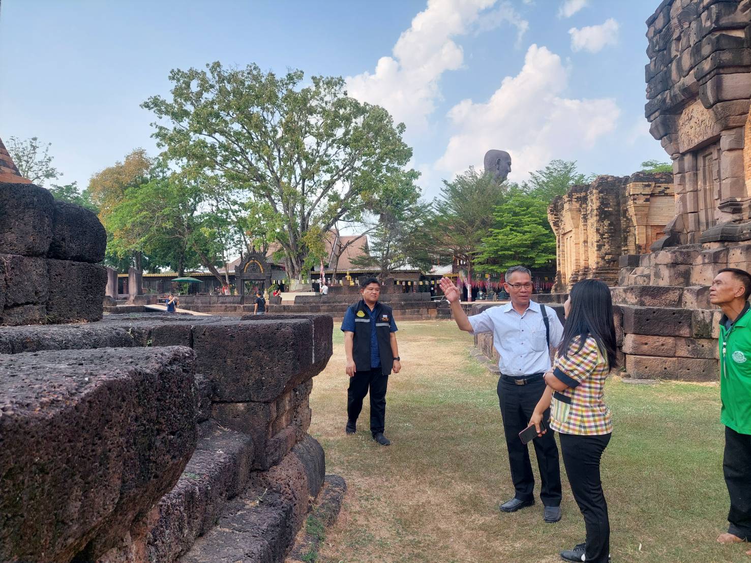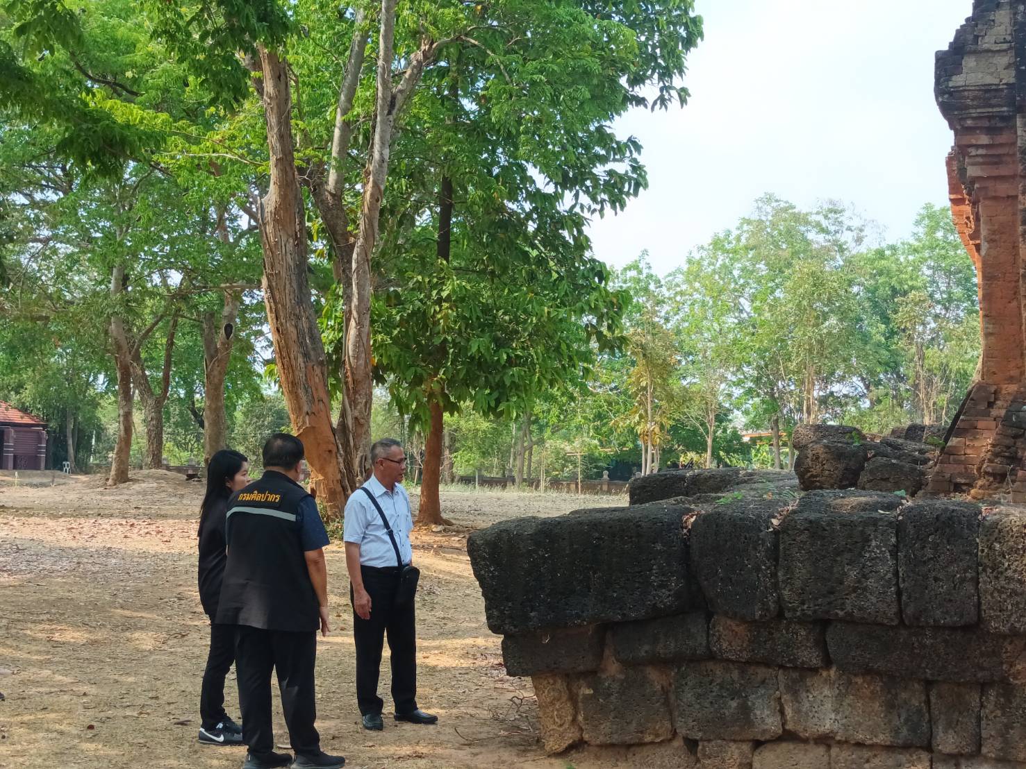 วันจันทร์ที่ ๔ มีนาคม ๒๕๖๗ นายกิตติพันธ์ พานสุวรรณ (อดีตอธิบดีกรมศิลปากร) พร้อมด้วยนายทศพร ศรีสมาน ผู้อำนวยการสำนักศิลปากรที่ ๑๐ นครราชสีมา และนางสาวนิตยา สาระรัตน์ นายช่างศิลปกรรมอาวุโสลงพื้นที่ชี้แจงการขออนุญาตก่อสร้างสิ่งปลูกสร้างในเขตโบราณสถานปราสาทภูฝ้าย
