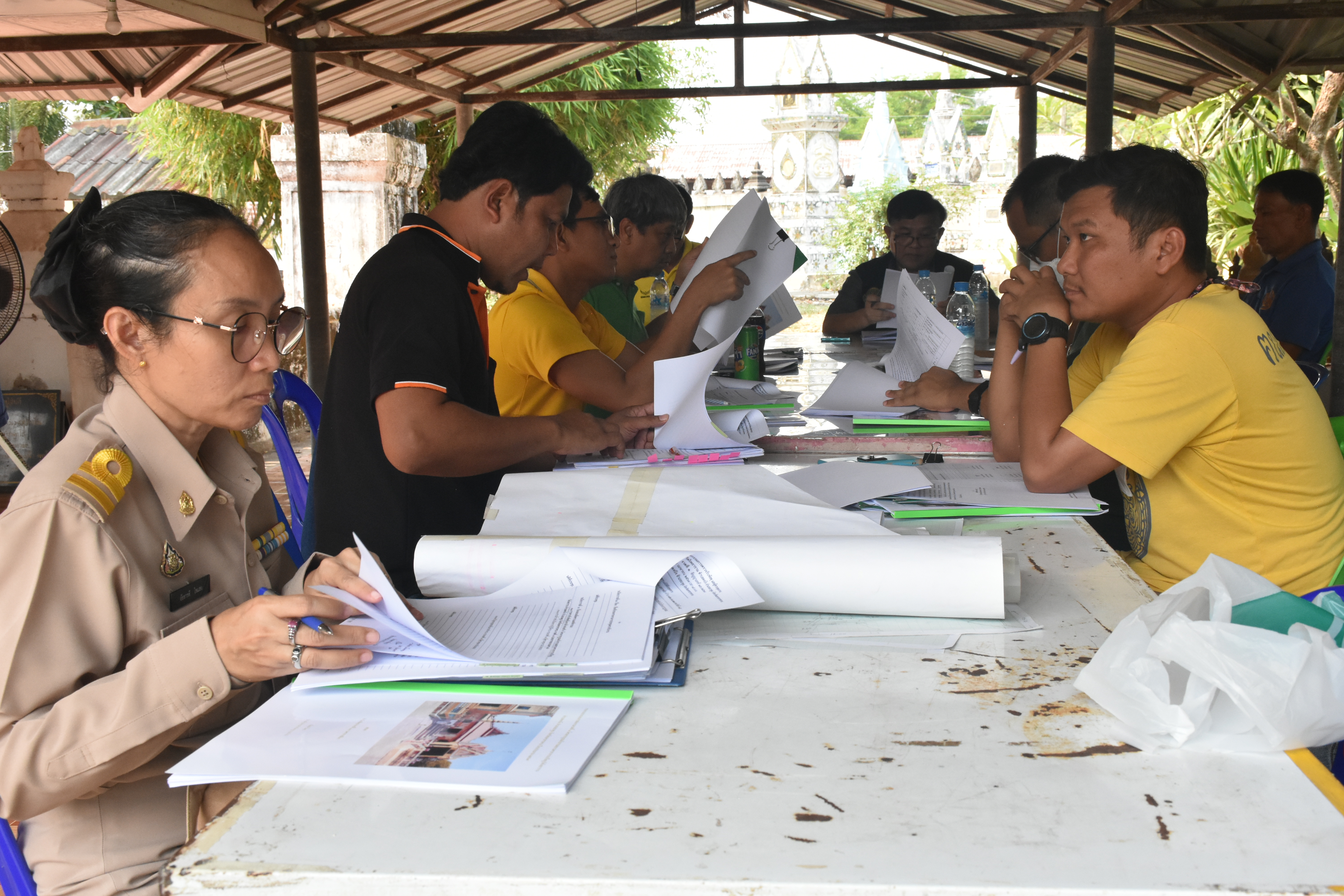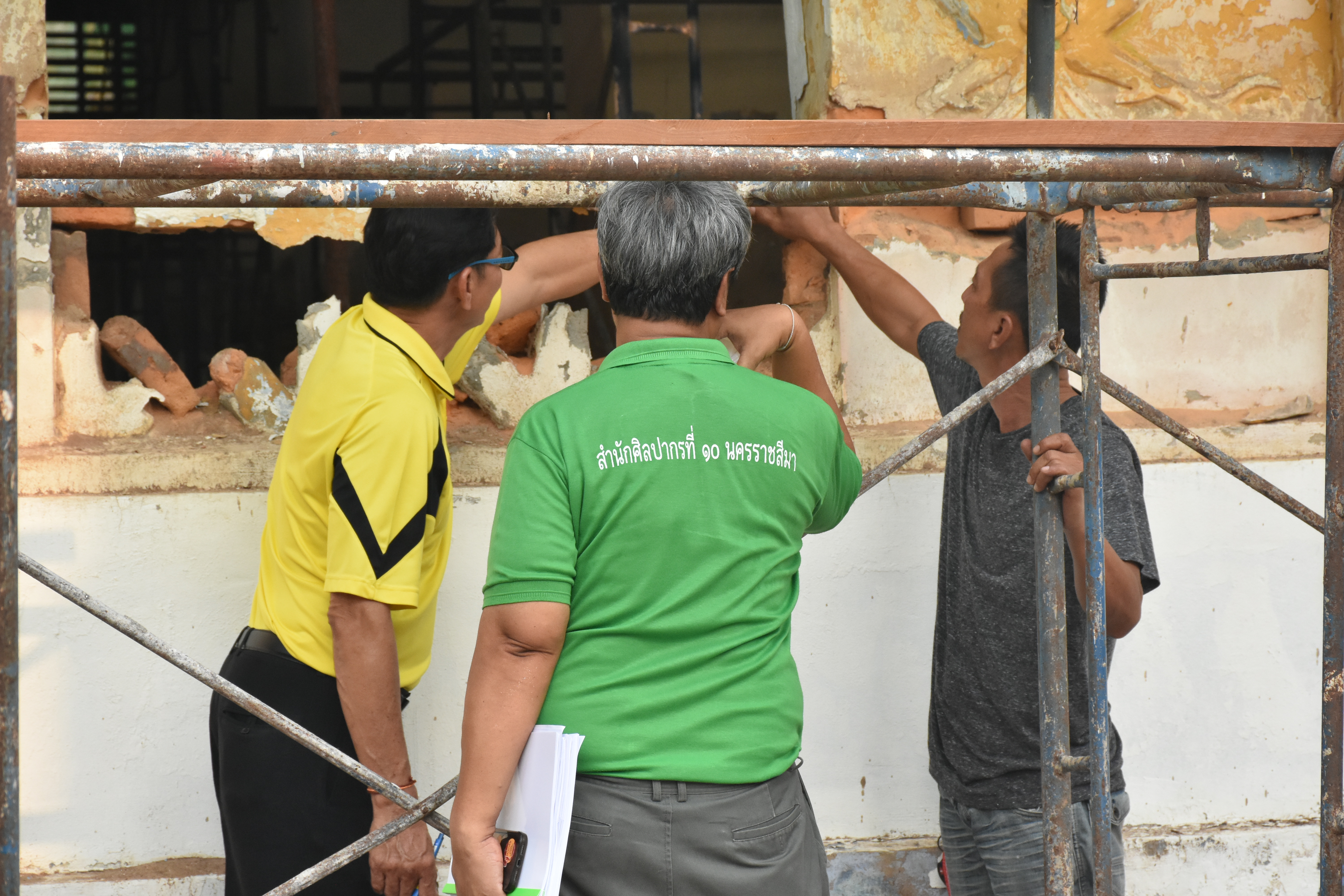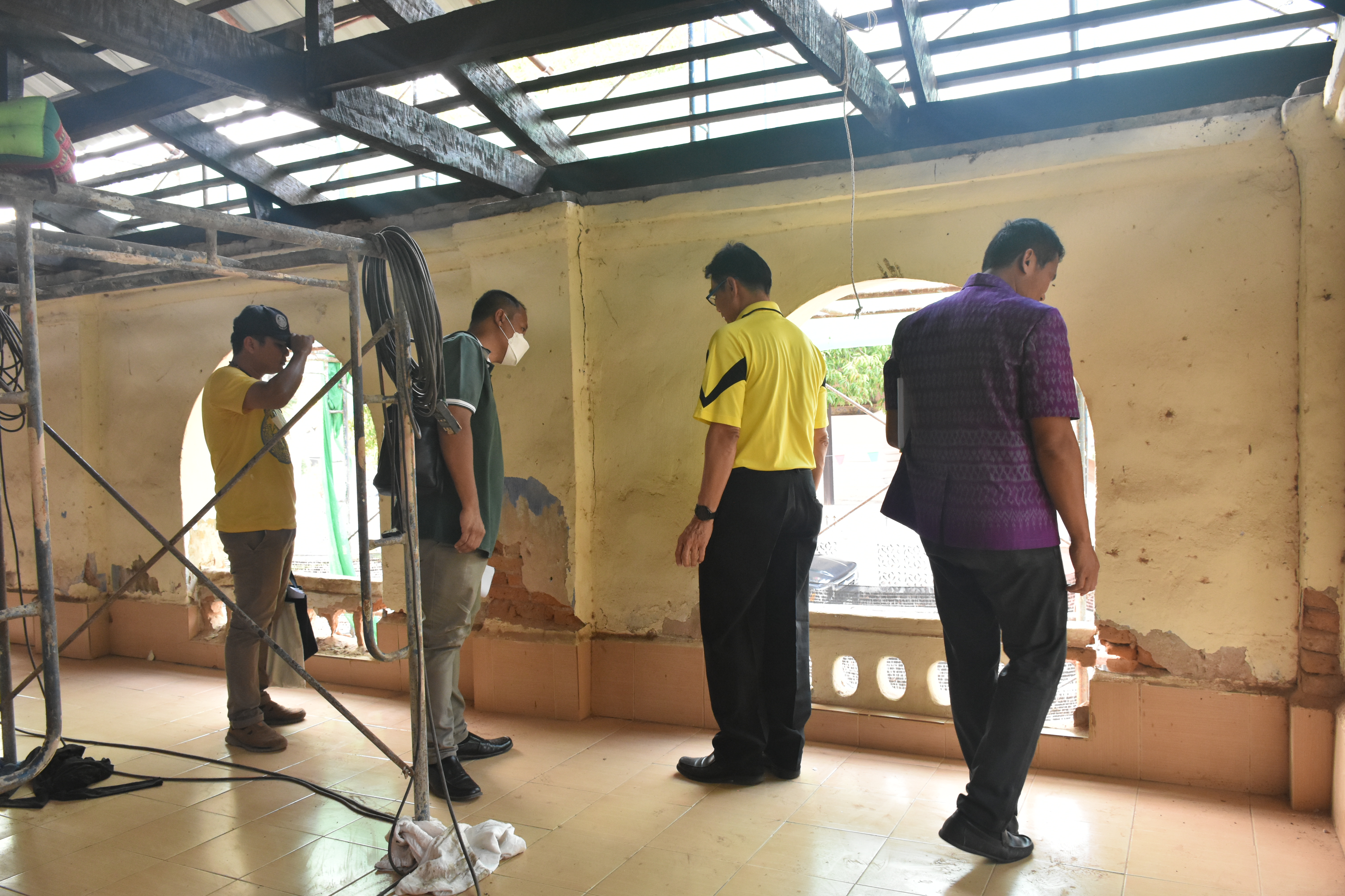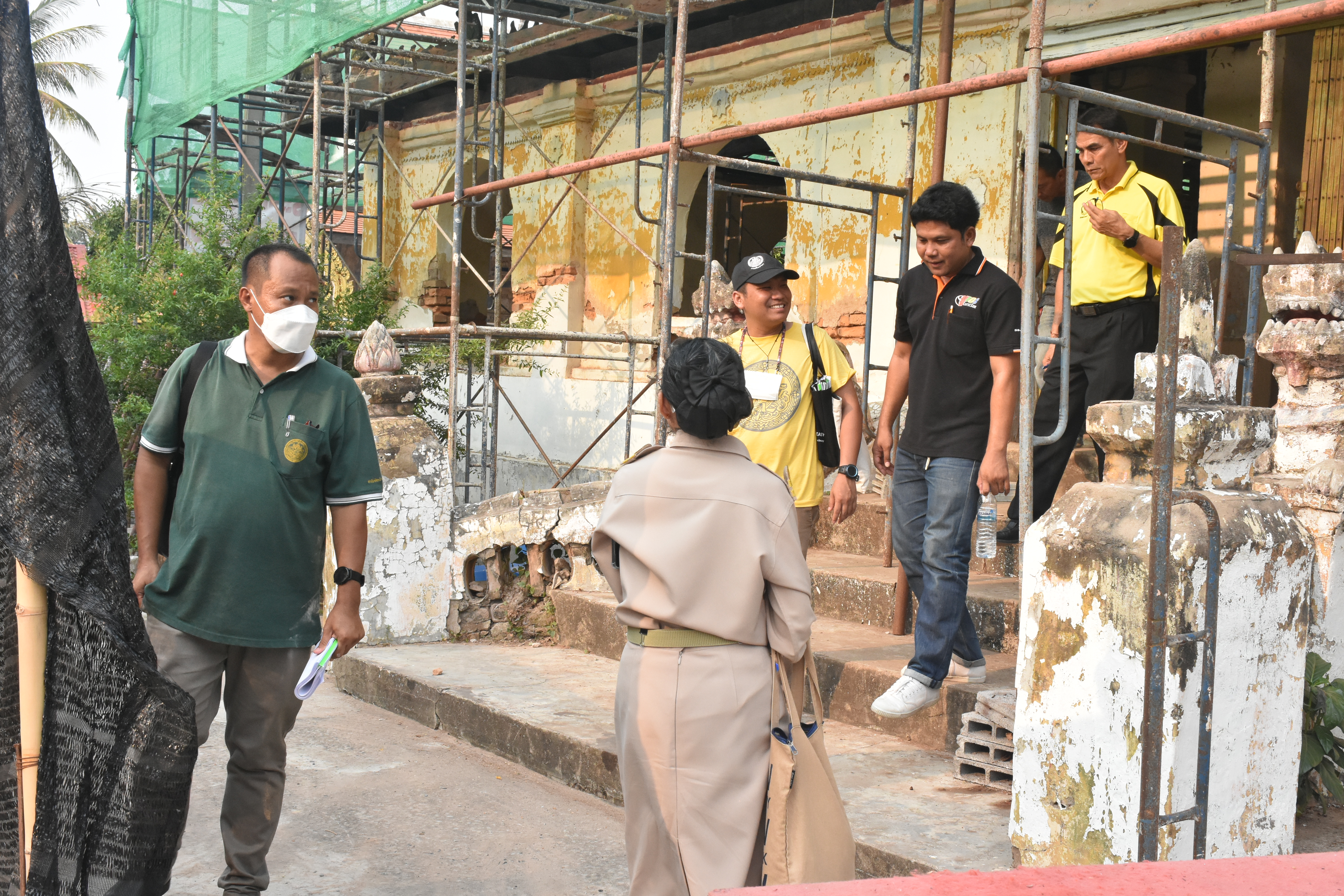 วันอังคารที่ ๙ เมษายน ๒๕๖๗ นายทศพร ศรีสมาน ผู้อำนวยการสำนักศิลปากรที่ ๑๐ นครราชสีมา (ประธานตรวจการจ้าง) พร้อมด้วยคณะกรรมการตรวจการจ้างและผู้ควบคุมงาน ตรวจรับงานจ้าง (งวดที่๑) โครงการบูรณะโบราณสถานศาลาการเปรียญวัดโพธาราม ตำบลดงบัง อำเภอนาดูน จังหวัดมหาสารคาม