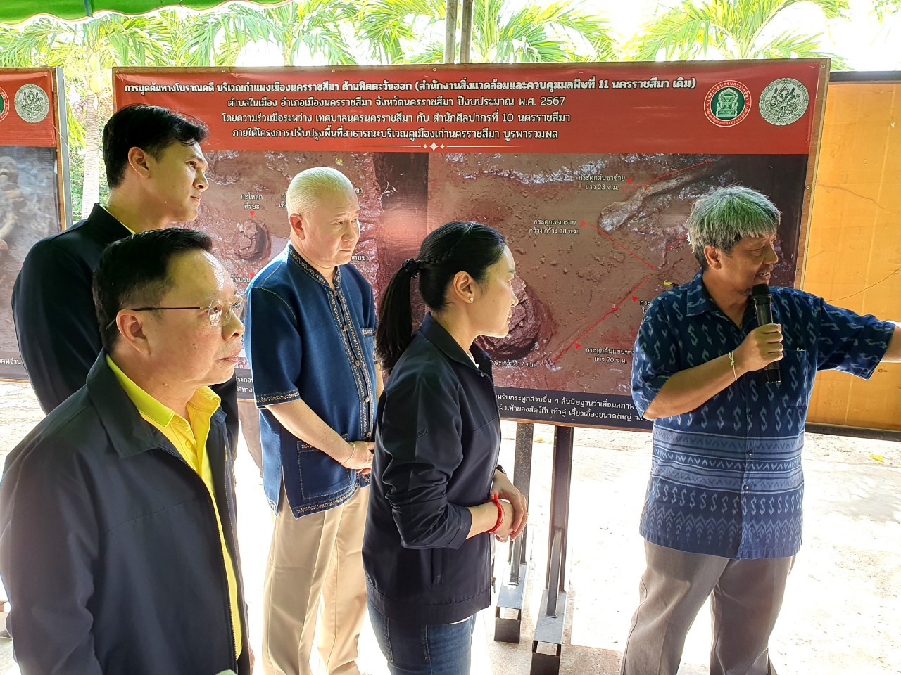โดยนายกิติพงษ์ สนเล็ก ผู้อำนวยการกลุ่มโบราณคดี สำนักศิลปากรที่ 10 นครราชสีมา ได้รายงานข้อมูลการขุดตรวจทางโบราณคดีซึ่งเป็นความร่วมมือกันระหว่าง เทศบาลนครนครราชสีมา กับ สำนักศิลปากรที่ 10 นครราชสีมา โดยดำเนินการขุดตรวจบริเวณกำแพงเมืองนครราชสีมา ด้านทิศตะวันออก เพื่อตรวจสอบร่องรอยแนวกำแพงเมืองนครราชสีมา ก่อนดำเนินโครงการปรับปรุงภูมิทัศน์พื้นที่ จากการขุดตรวจทางโบราณคดีในครั้งนี้ ขุดพบโบราณวัตถุ อาทิเช่น โครงกระดูกมนุษย์ ชามสัมฤทธิ์ เครื่องมือเหล็ก ต่างหูทองคำ แหวนทองคำ ลูกปัดแก้ว ภาชนะดินพิมายดำ เป็นต้น