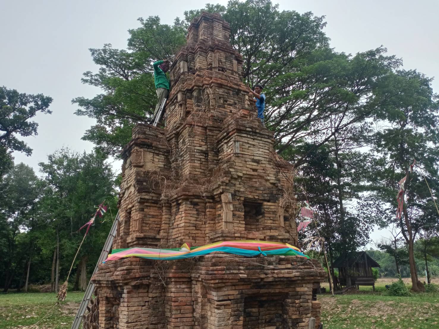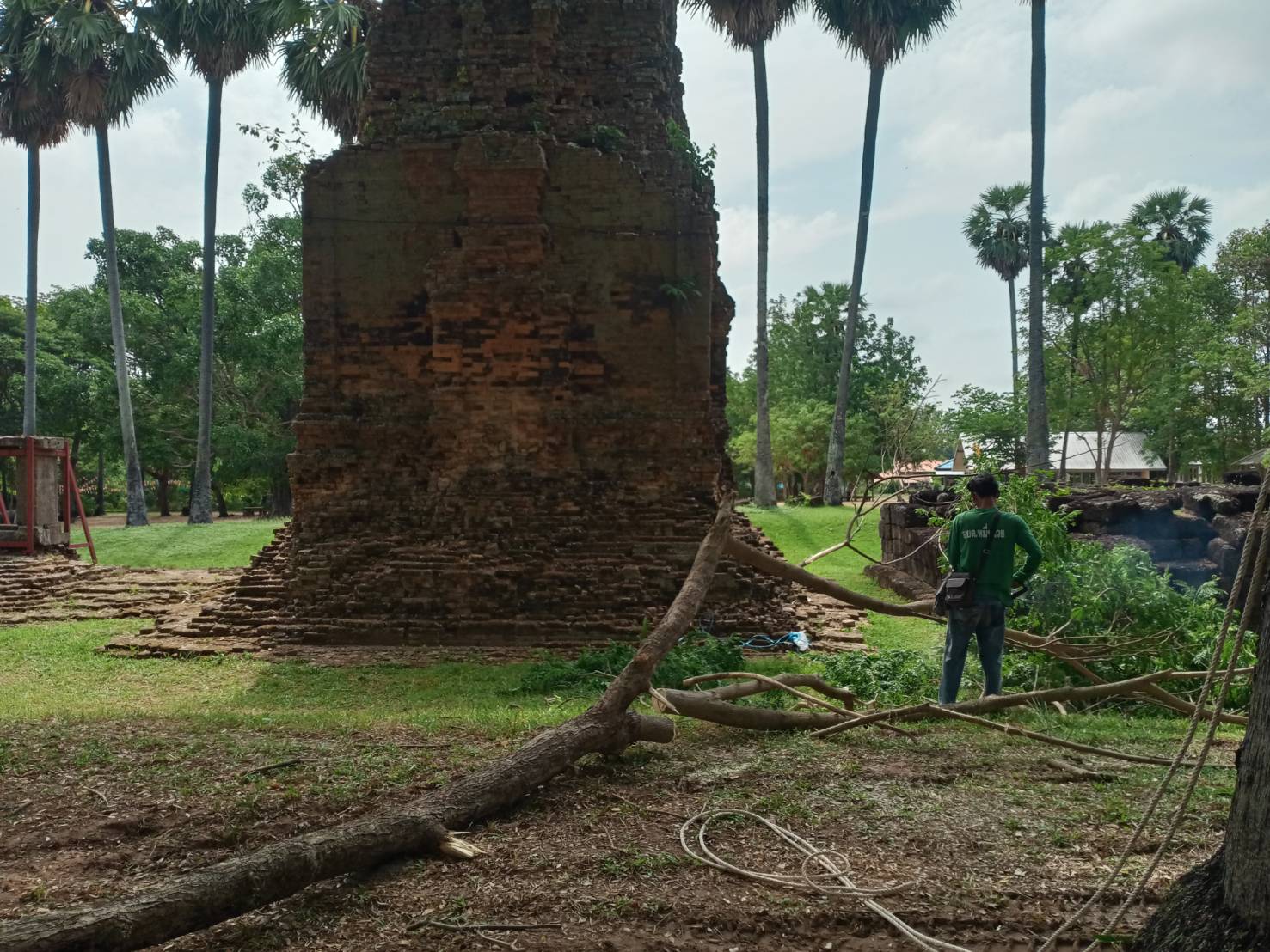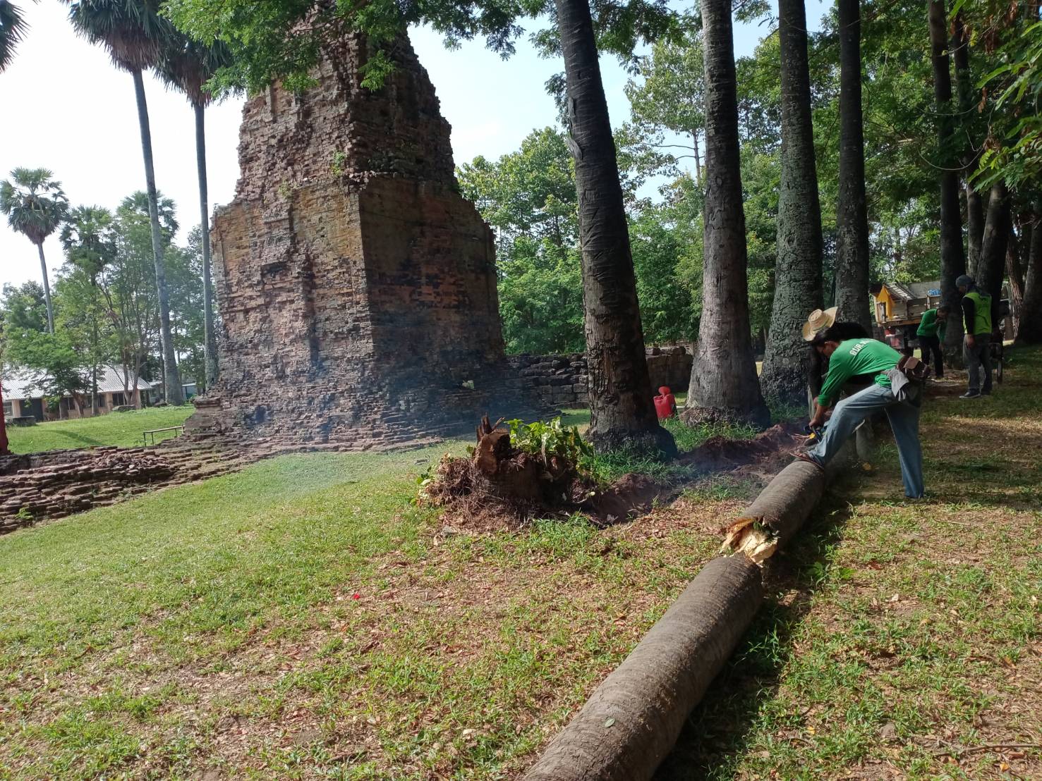 ลงพื้นที่ดำเนินงานเปลี่ยนวัสดุค้ำยันเสริมความมั่นคงโบราณสถาน พร้อมทั้งสำรวจแนวเขตรั้วโบราณสถาน เพื่อดำเนินการซ่อมแซม ระหว่างวันที่ ๑๓-๑๗ พฤษภาคม ๒๕๖๗