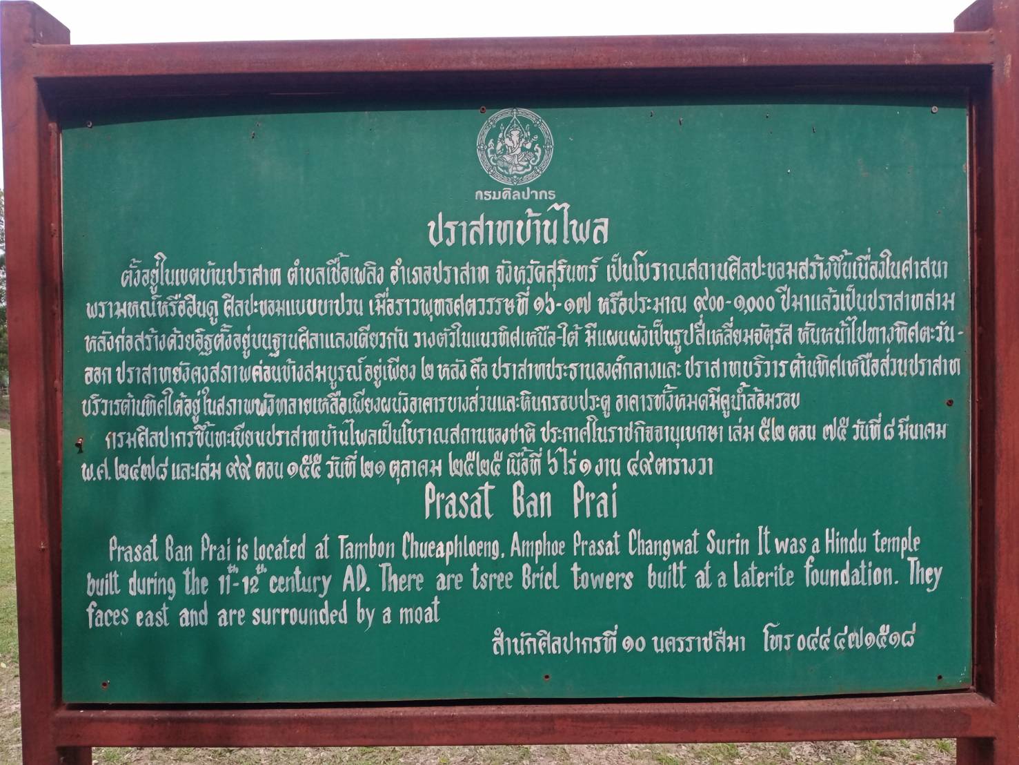 - ปราสาทบ้านไพล ตำบลเชื้อเพลิง อำเภอปราสาท จังหวัดสุรินทร์